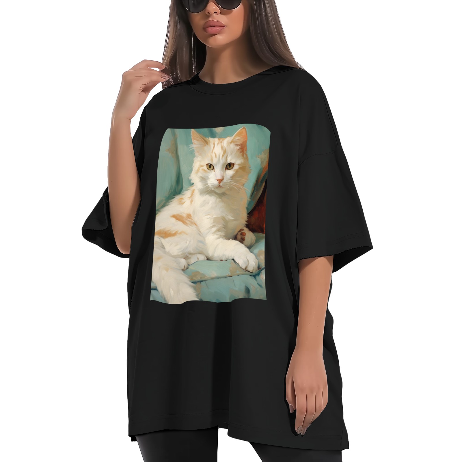 Plus Size Shirt for Women Black Tops for Women Short Sleeves Shirt for Women Cat (59) T Shirt Crewneck Shirt for Women XS