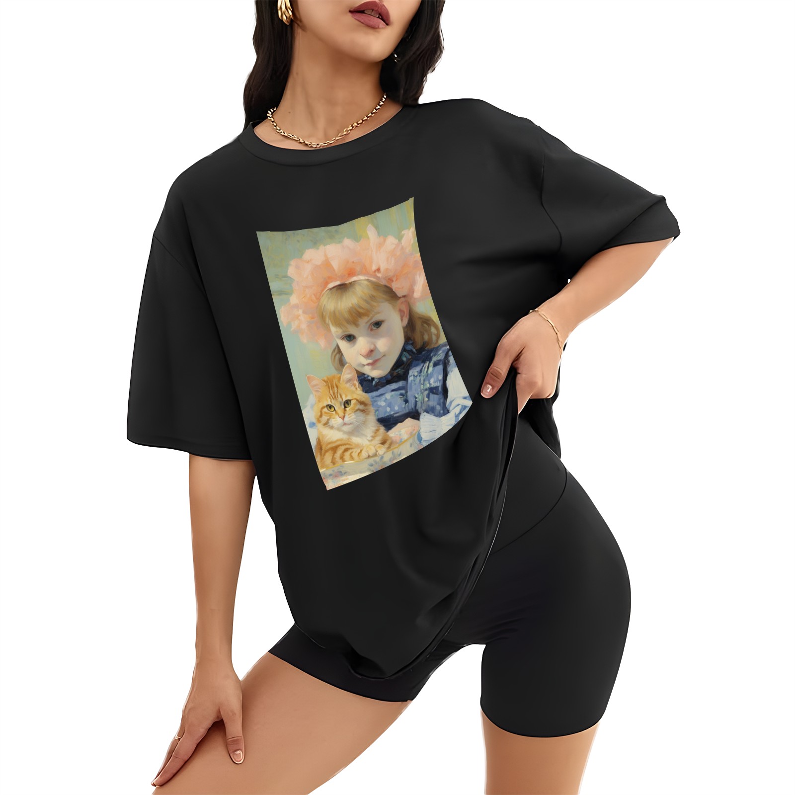 Plus Size Shirt for Women Black Tops for Women Short Sleeves Shirt for Women Cat (57) T Shirt Crewneck Shirt for Women XS