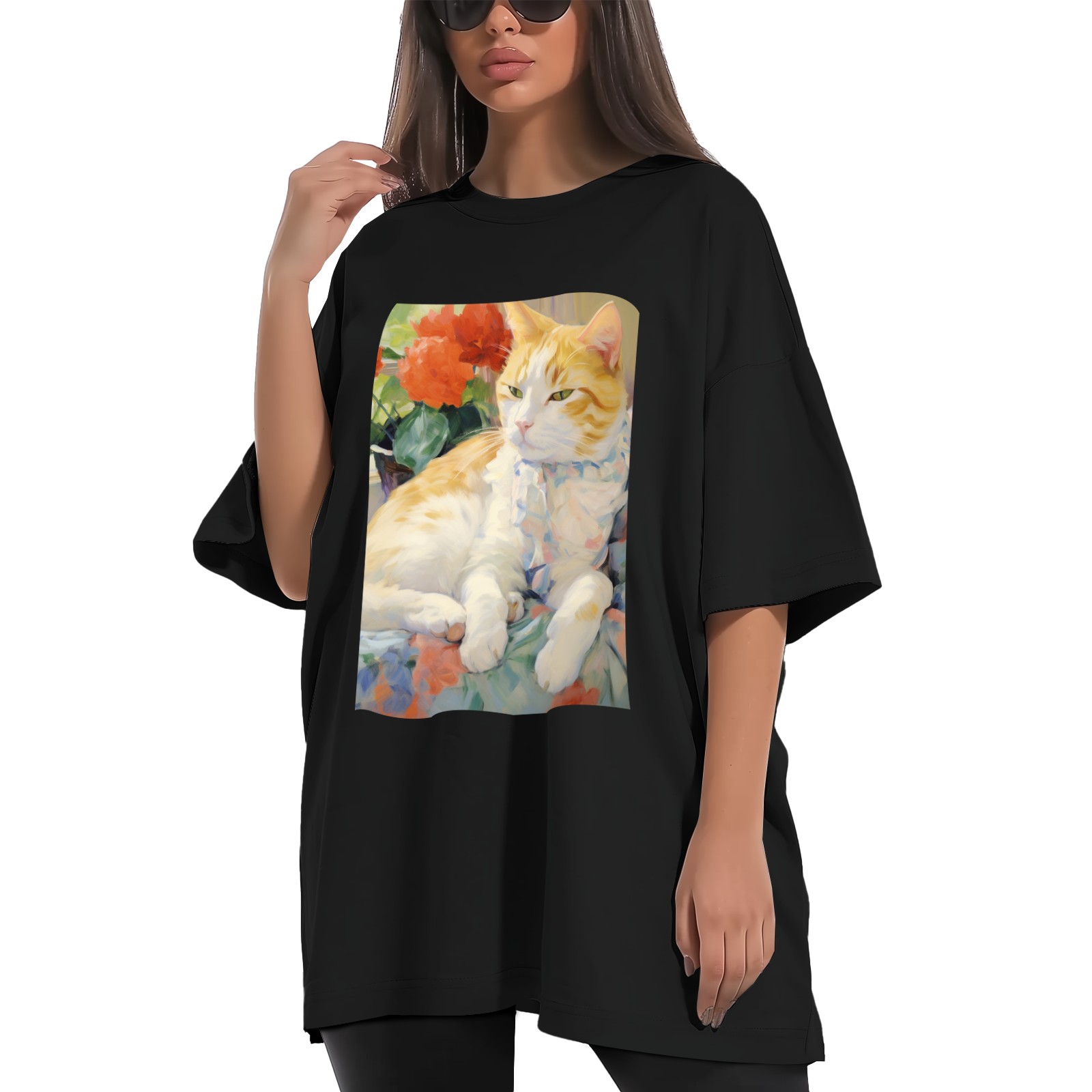 Plus Size Shirt for Women Black Tops for Women Short Sleeves Shirt for Women Cat (51) T Shirt Crewneck Shirt for Women XS