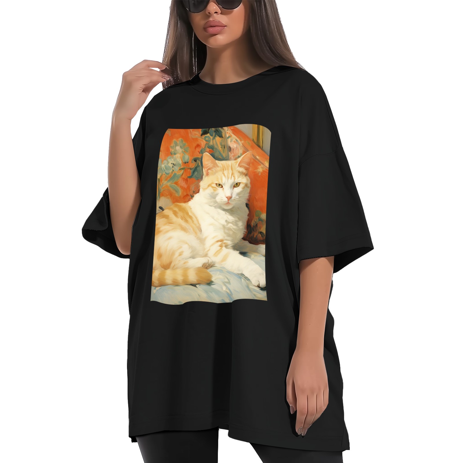 Plus Size Shirt for Women Black Tops for Women Short Sleeves Shirt for Women Cat (52) T Shirt Crewneck Shirt for Women XS