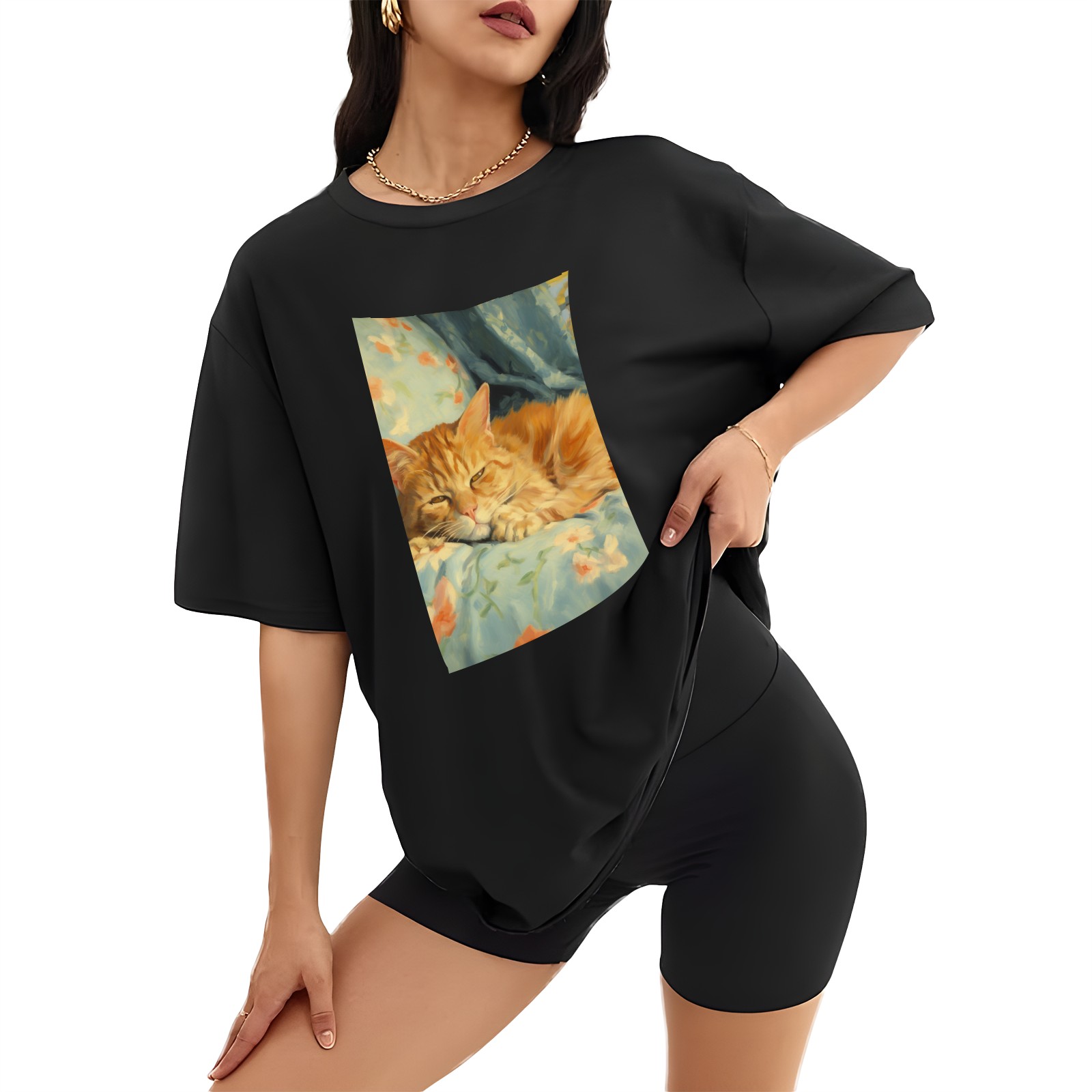 Plus Size Shirt for Women Black Tops for Women Short Sleeves Shirt for Women Cat (49) T Shirt Crewneck Shirt for Women XS