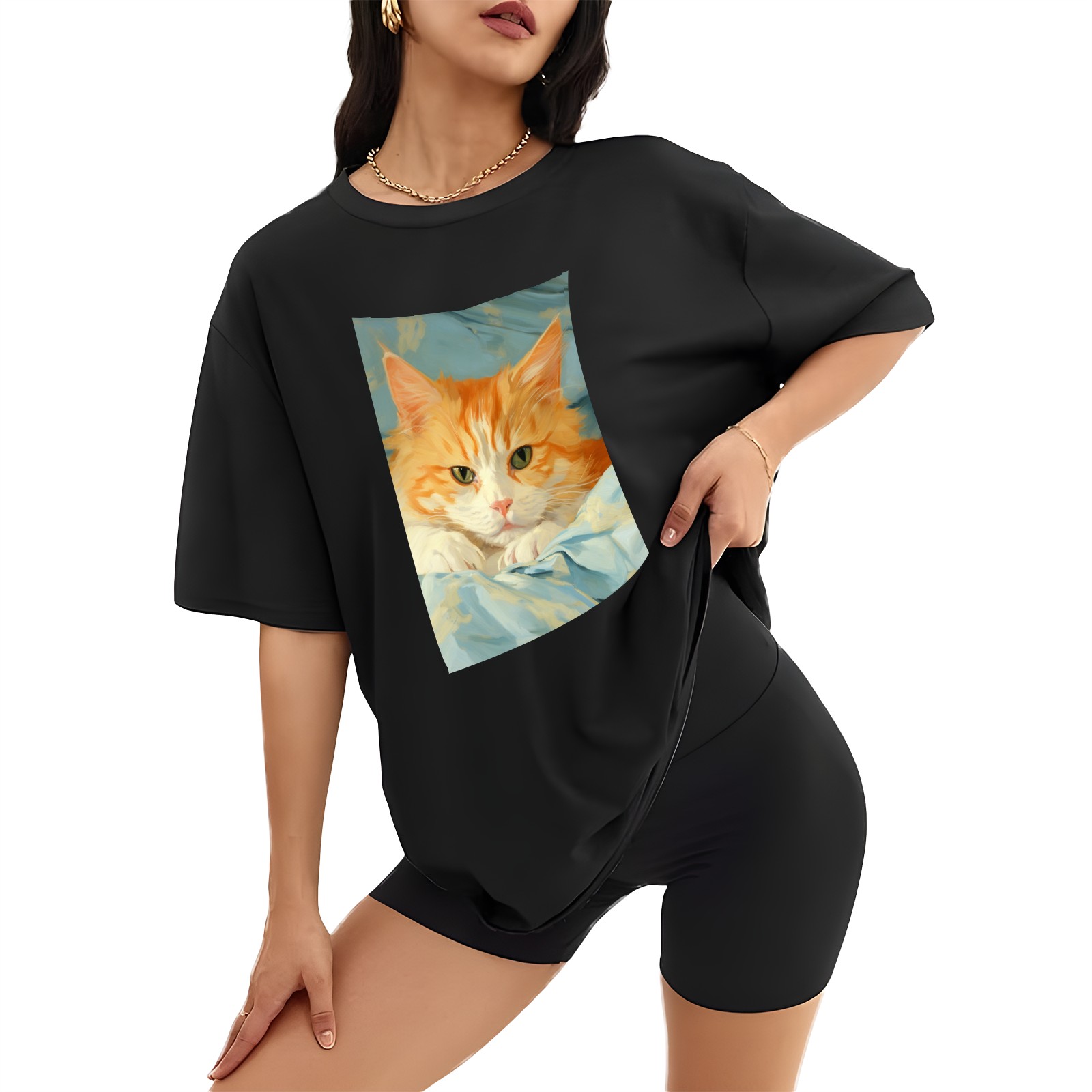 Plus Size Shirt for Women Black Tops for Women Short Sleeves Shirt for Women Cat (44) T Shirt Crewneck Shirt for Women XS