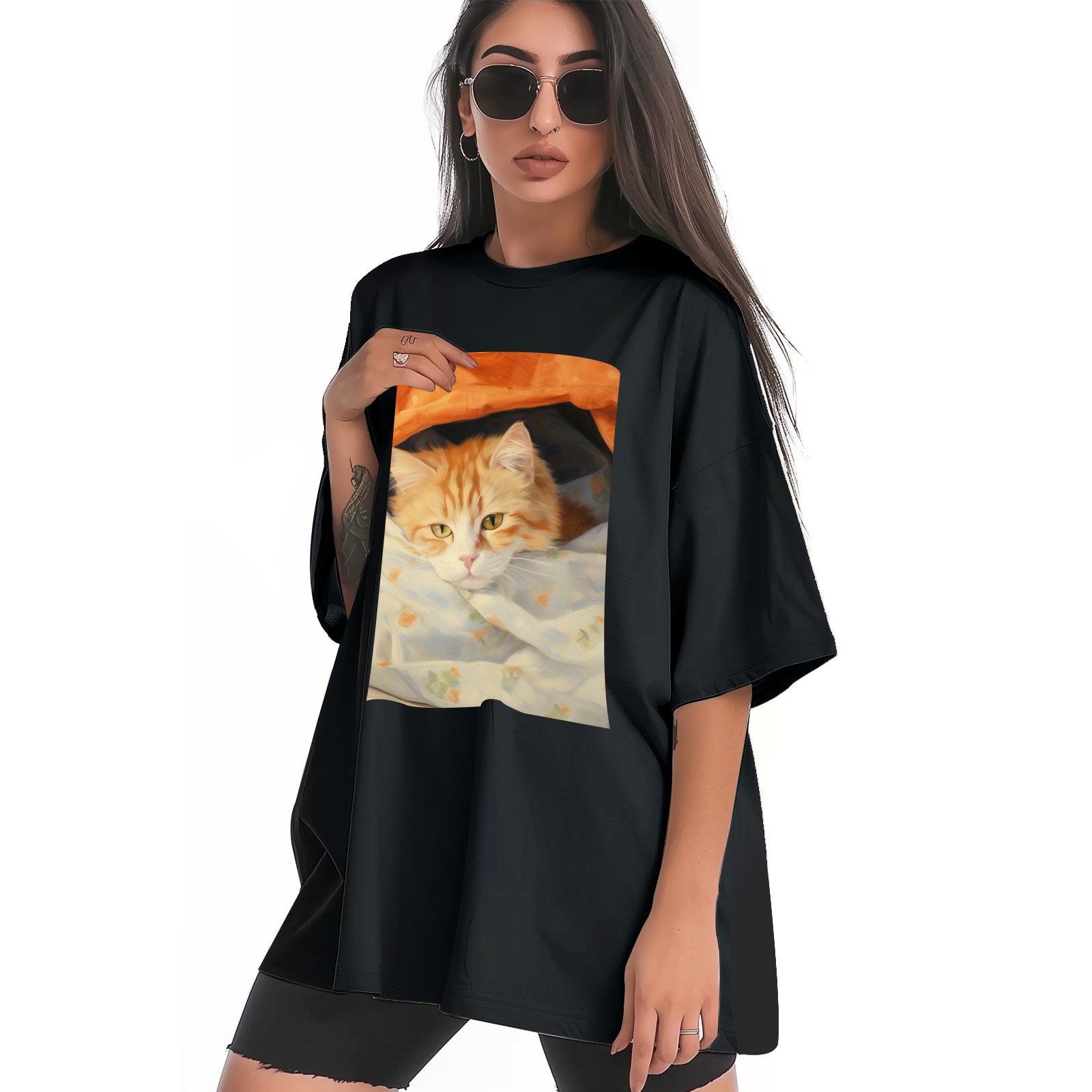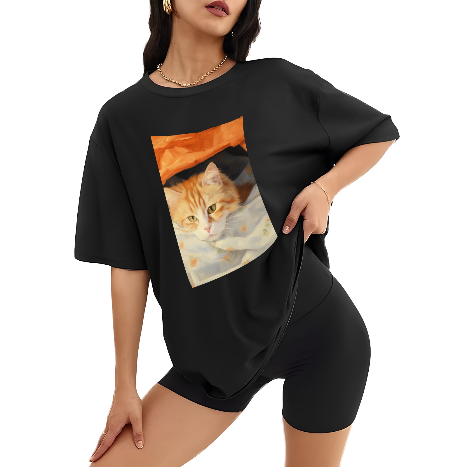 Plus Size Shirt for Women Black Tops for Women Short Sleeves Shirt for Women Cat (34) T Shirt Crewneck Shirt for Women XS
