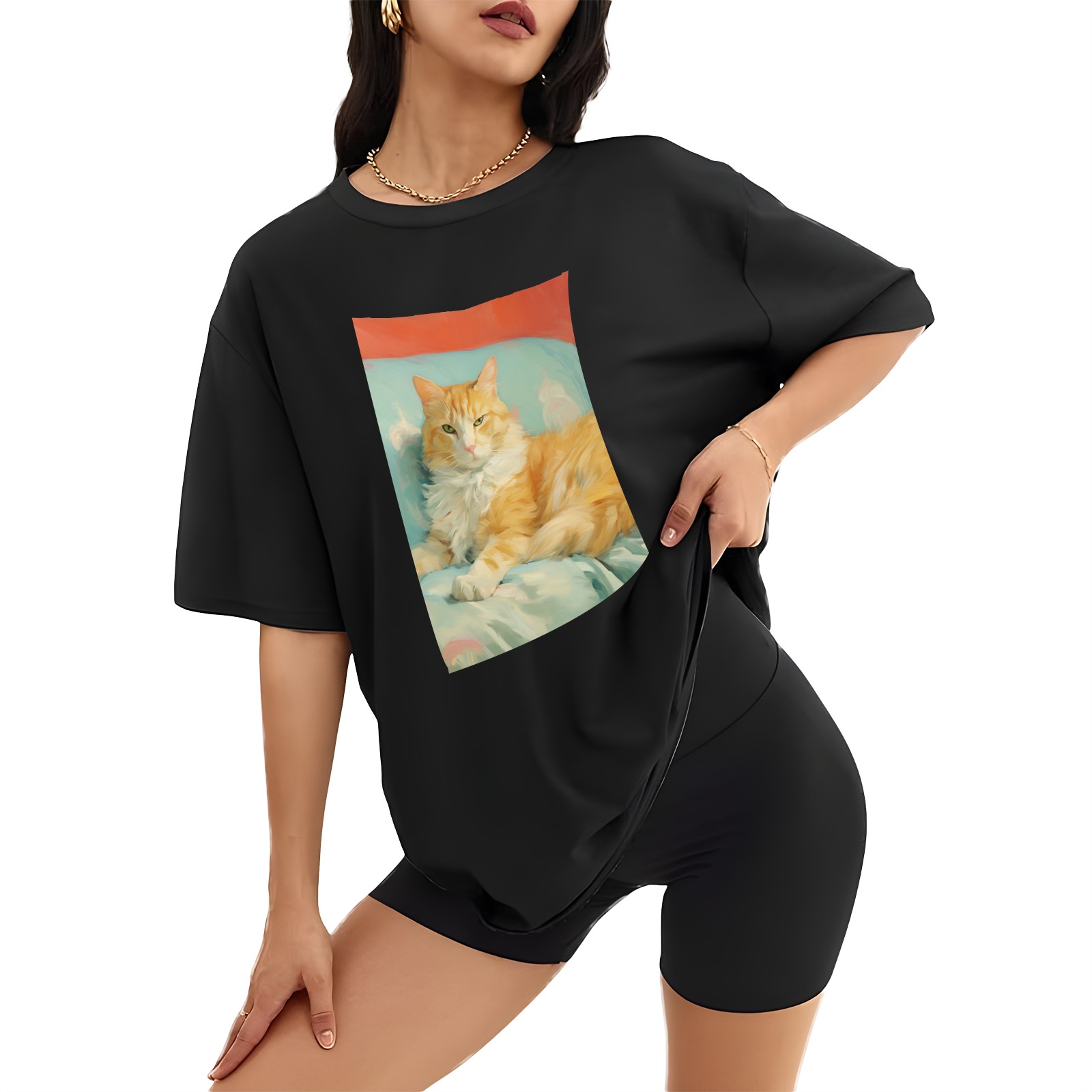 Plus Size Shirt for Women Black Tops for Women Short Sleeves Shirt for Women Cat (30) T Shirt Crewneck Shirt for Women XS