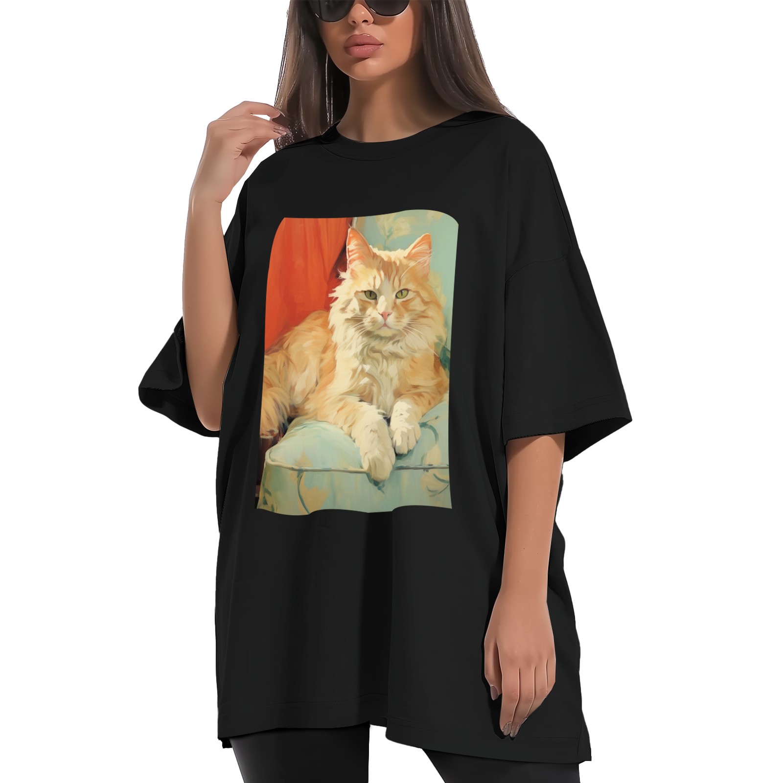 Plus Size Shirt for Women Black Tops for Women Short Sleeves Shirt for Women Cat (19) T Shirt Crewneck Shirt for Women XS