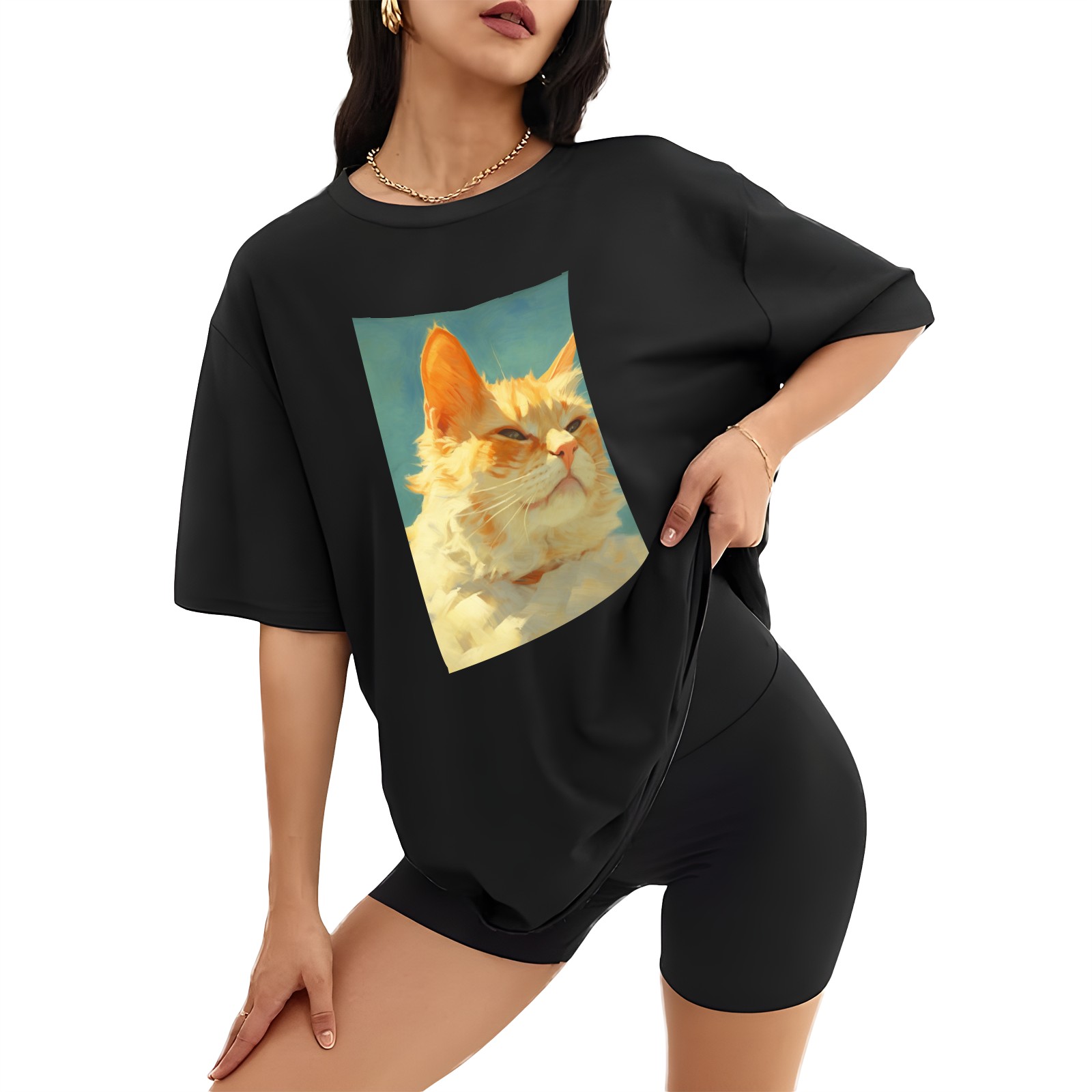 Plus Size Shirt for Women Black Tops for Women Short Sleeves Shirt for Women Cat (13) T Shirt Crewneck Shirt for Women XS