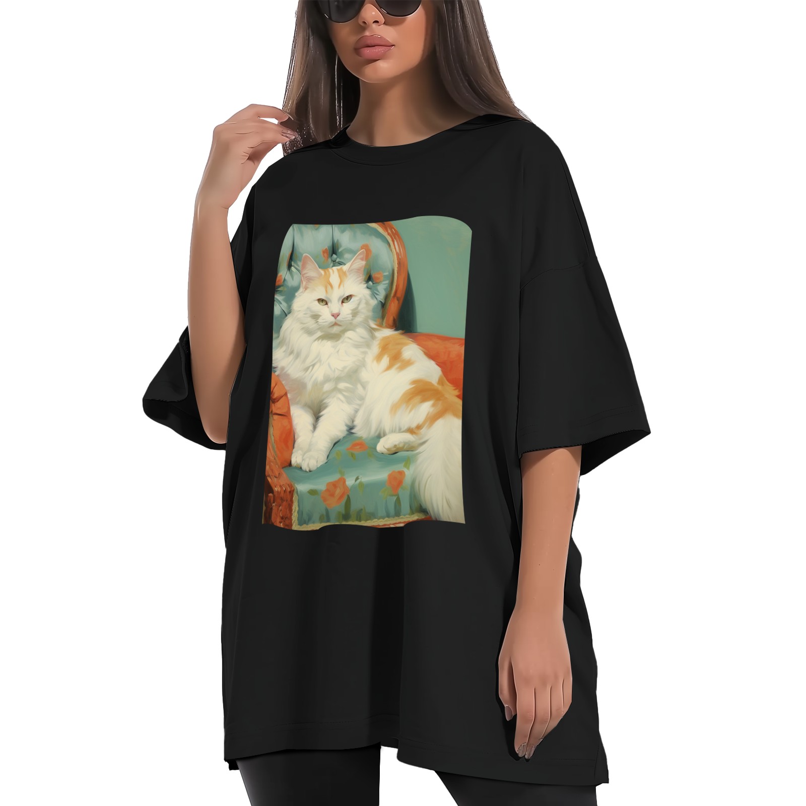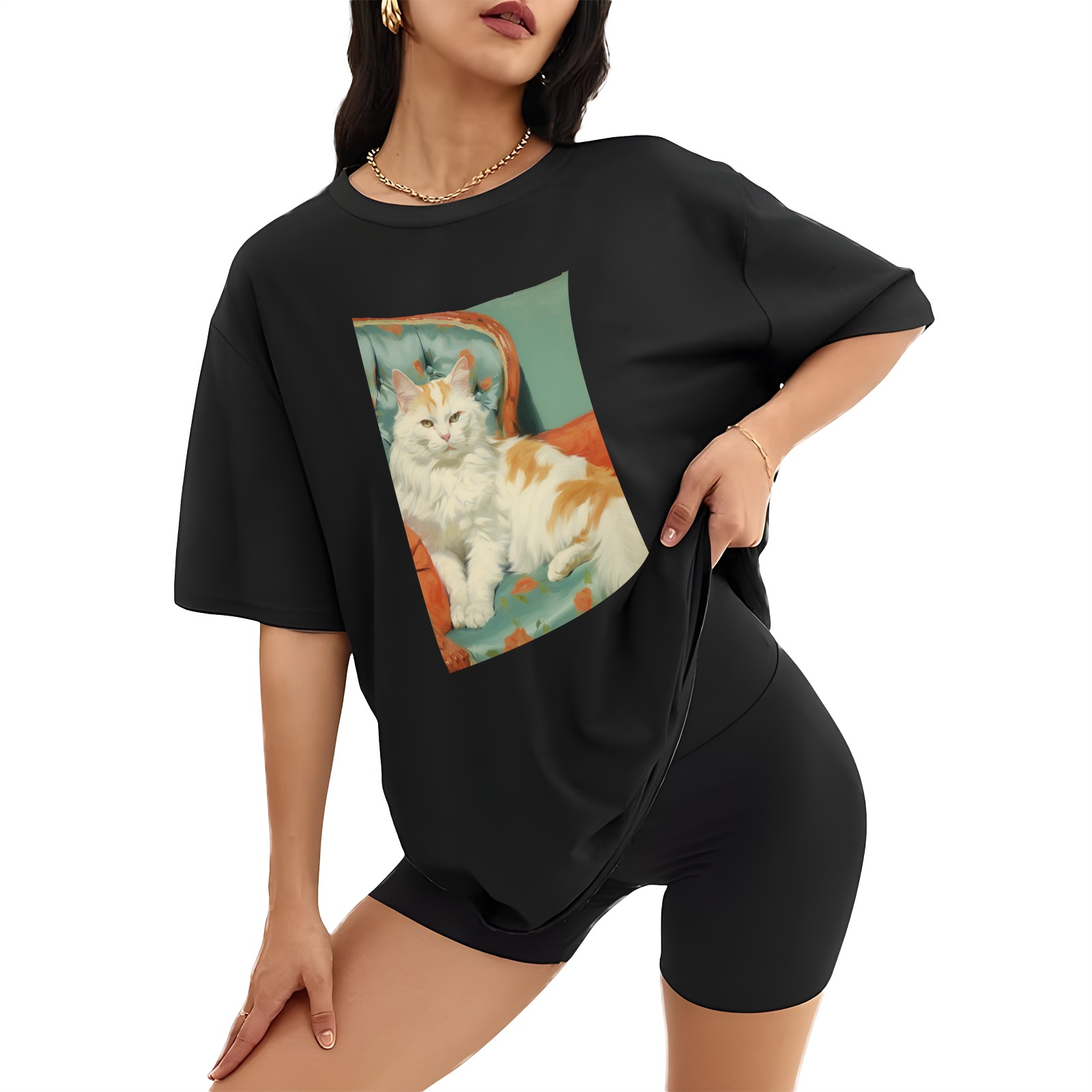 Plus Size Shirt for Women Black Tops for Women Short Sleeves Shirt for Women Cat (12) T Shirt Crewneck Shirt for Women XS