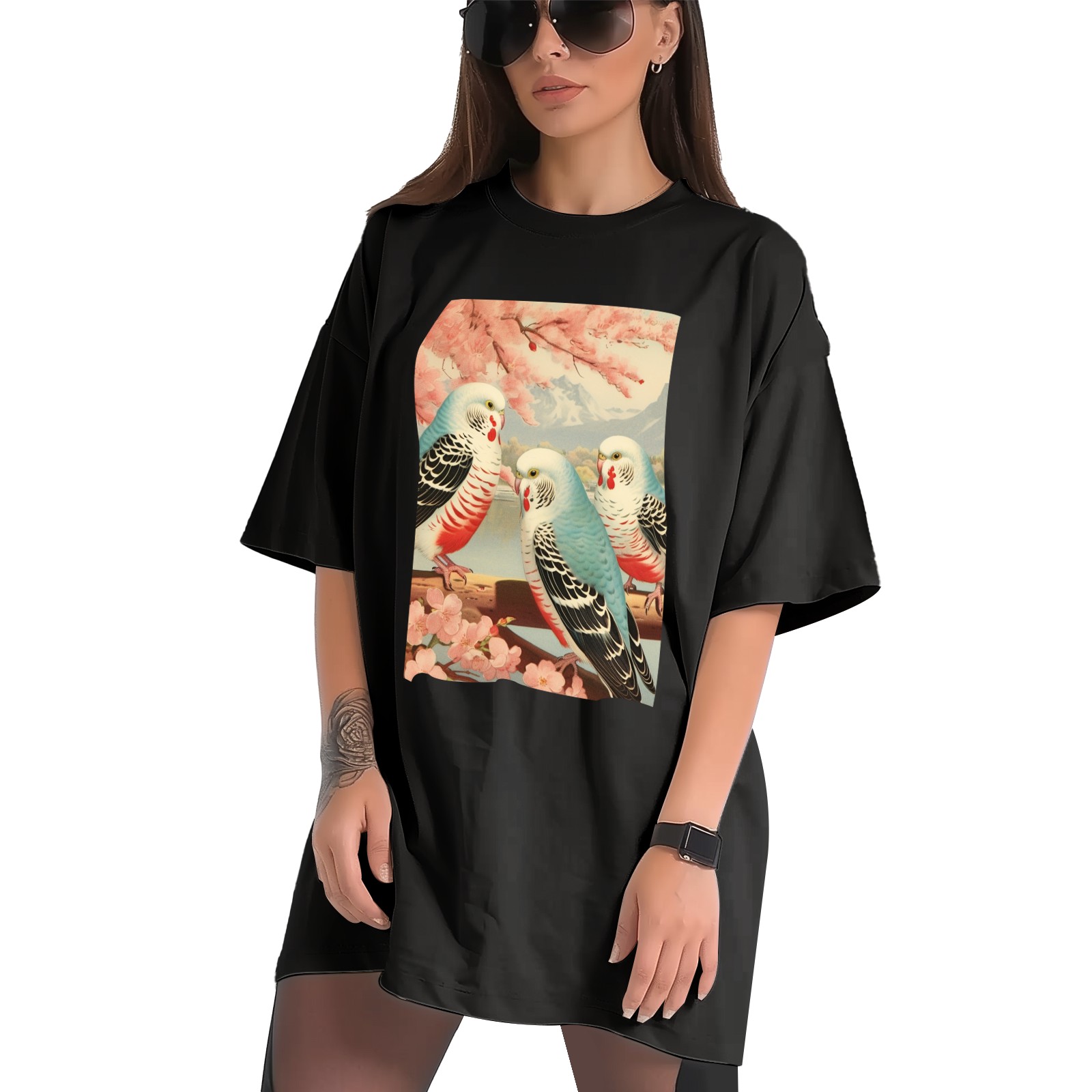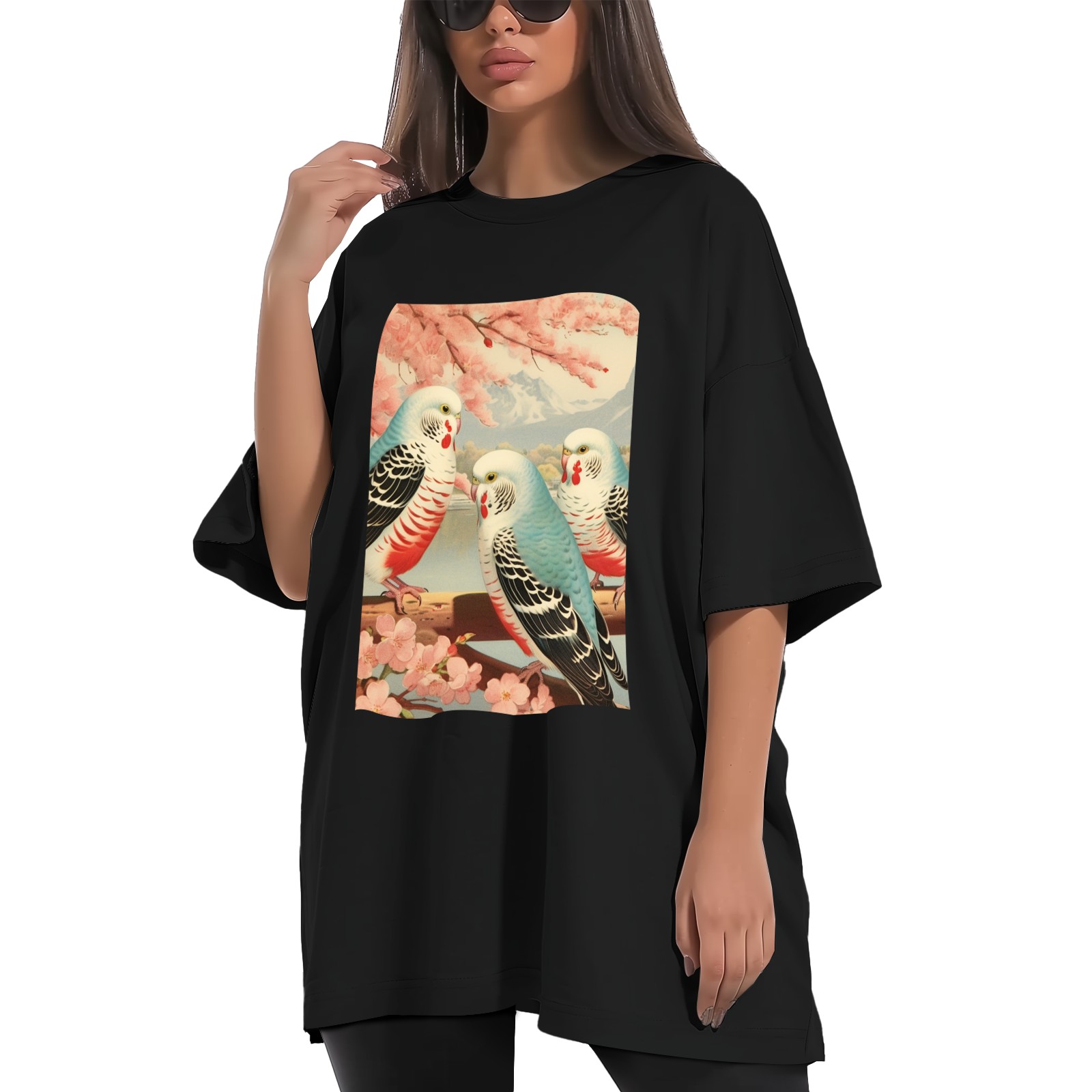 Plus Size Shirt for Women Black Tops for Women Short Sleeves Shirt for Women Budgies 5 T Shirt Crewneck Shirt for Women XS