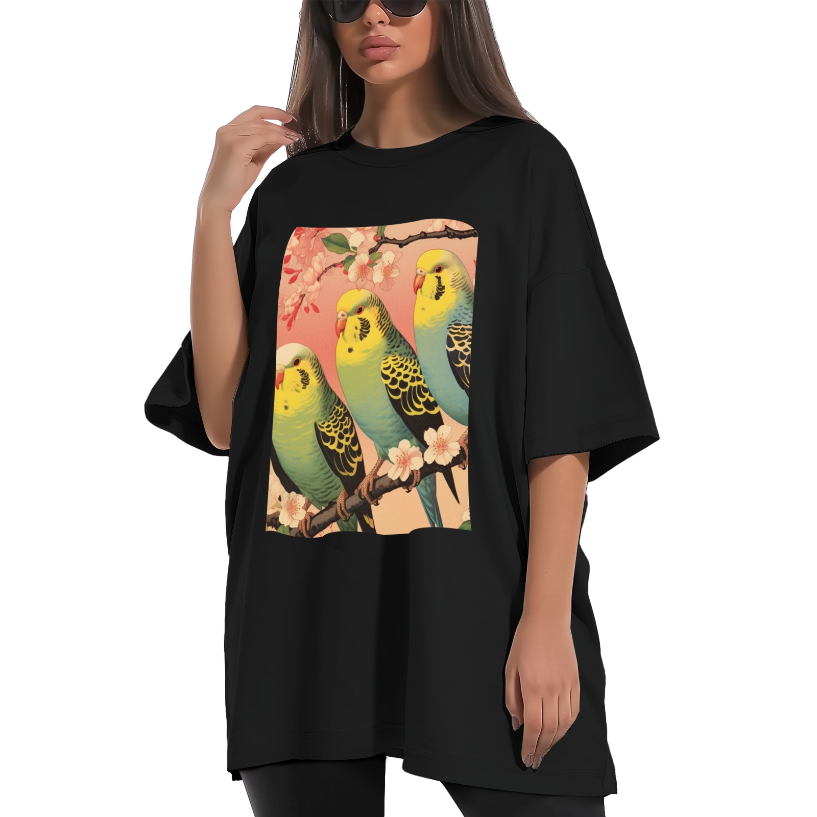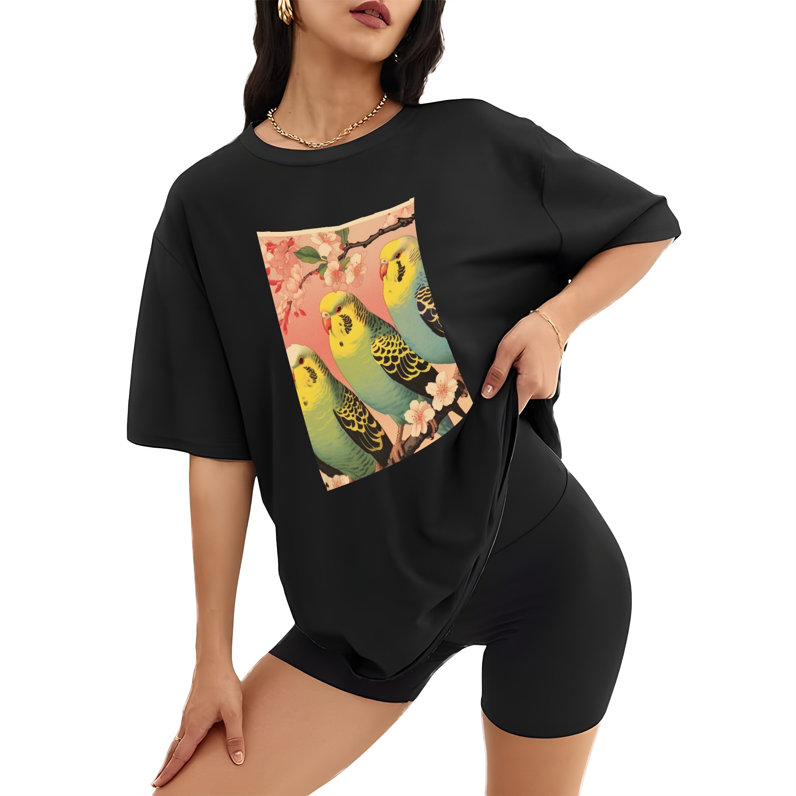 Plus Size Shirt for Women Black Tops for Women Short Sleeves Shirt for Women Budgies 4 T Shirt Crewneck Shirt for Women XS