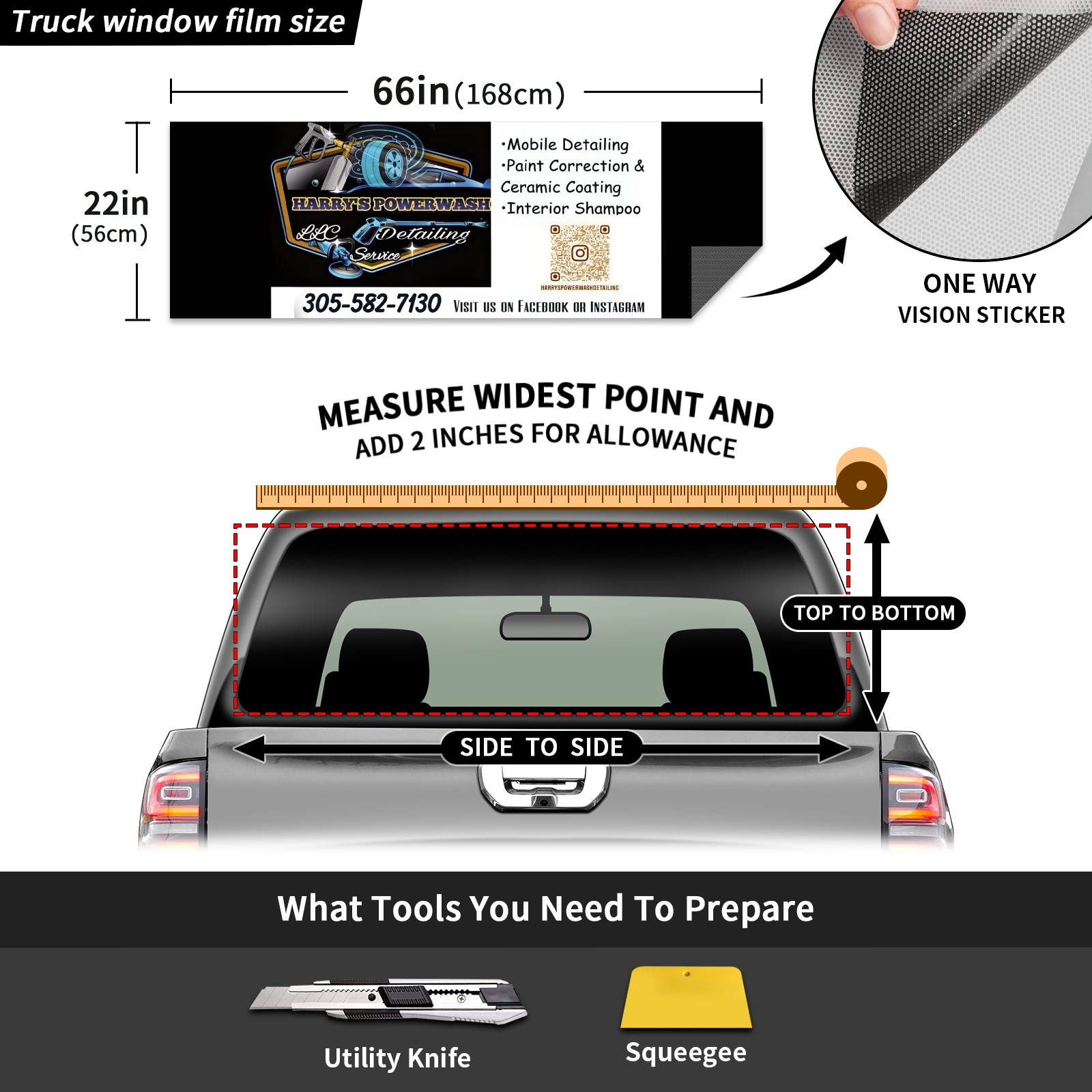 64x18 Custom Rear Window Graphic Decals for Trucks Personalized Pickup Car Window Stickers 66" x 22" Truck Back Window Perforated Vinyl Window Film Decal Design Your Own Back Window Graphic