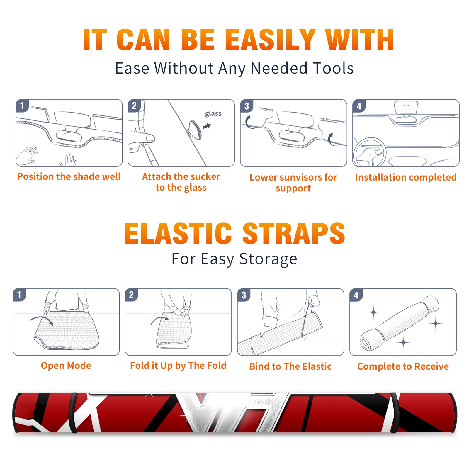 <p><b>An necessary automotive windows cover in hot summer. Protecting your beloved car and blocking the sun rays effects.</b></p><p></p><p><b>FEATURES:</b></p><ul> <li> Premium material quality.</li> <li> Great for car van truck suv.</li> <li> Effectively blocks uv, sun and summer heat, comfortable cool interior.</li> <li> Offers over 99% uv protection and sun reflection.</li> <li> Prevents dashboard fade and cracks.</li> <li> Compact folding design allows easy storage.</li> <li> Can be installed and removed within seconds.</li></ul><p> <b>Unique design makes your vehicle special under sunshine.If you have any problems with windshield sun shade, please feel free to contact us, we will provide the best service for you.</b></p>