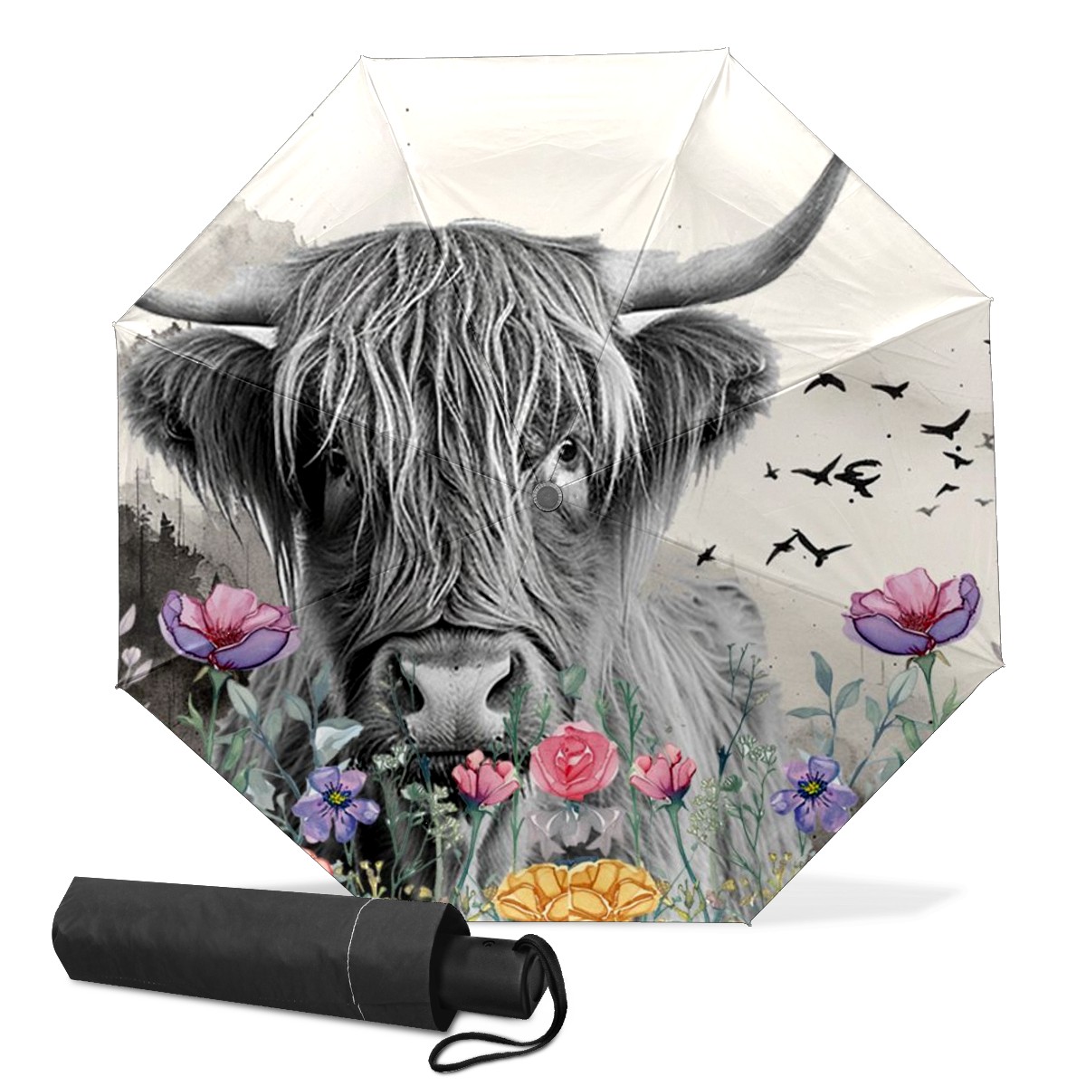 Grey Highland Cow Floral