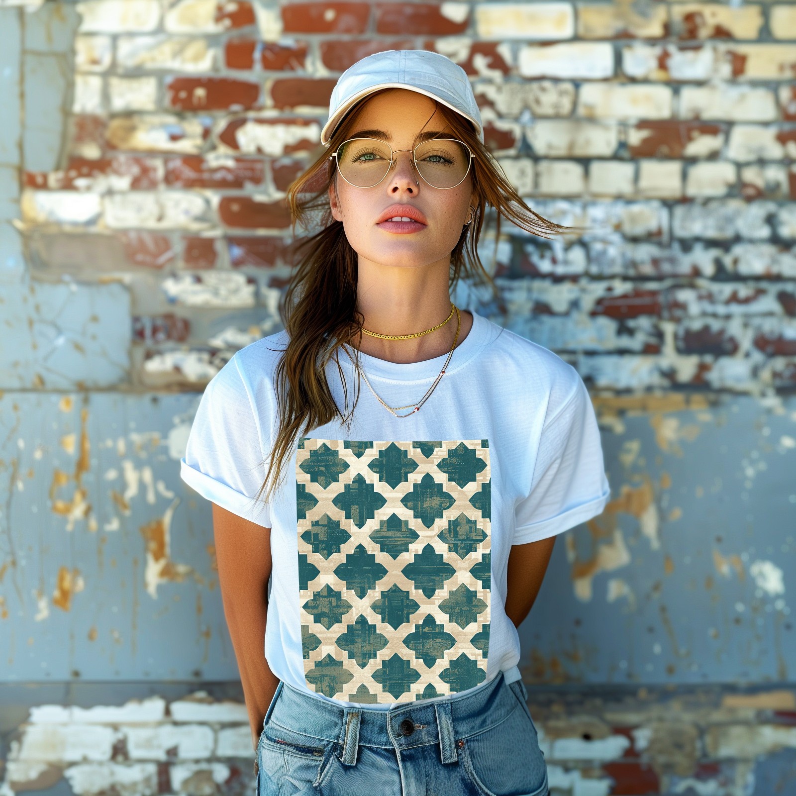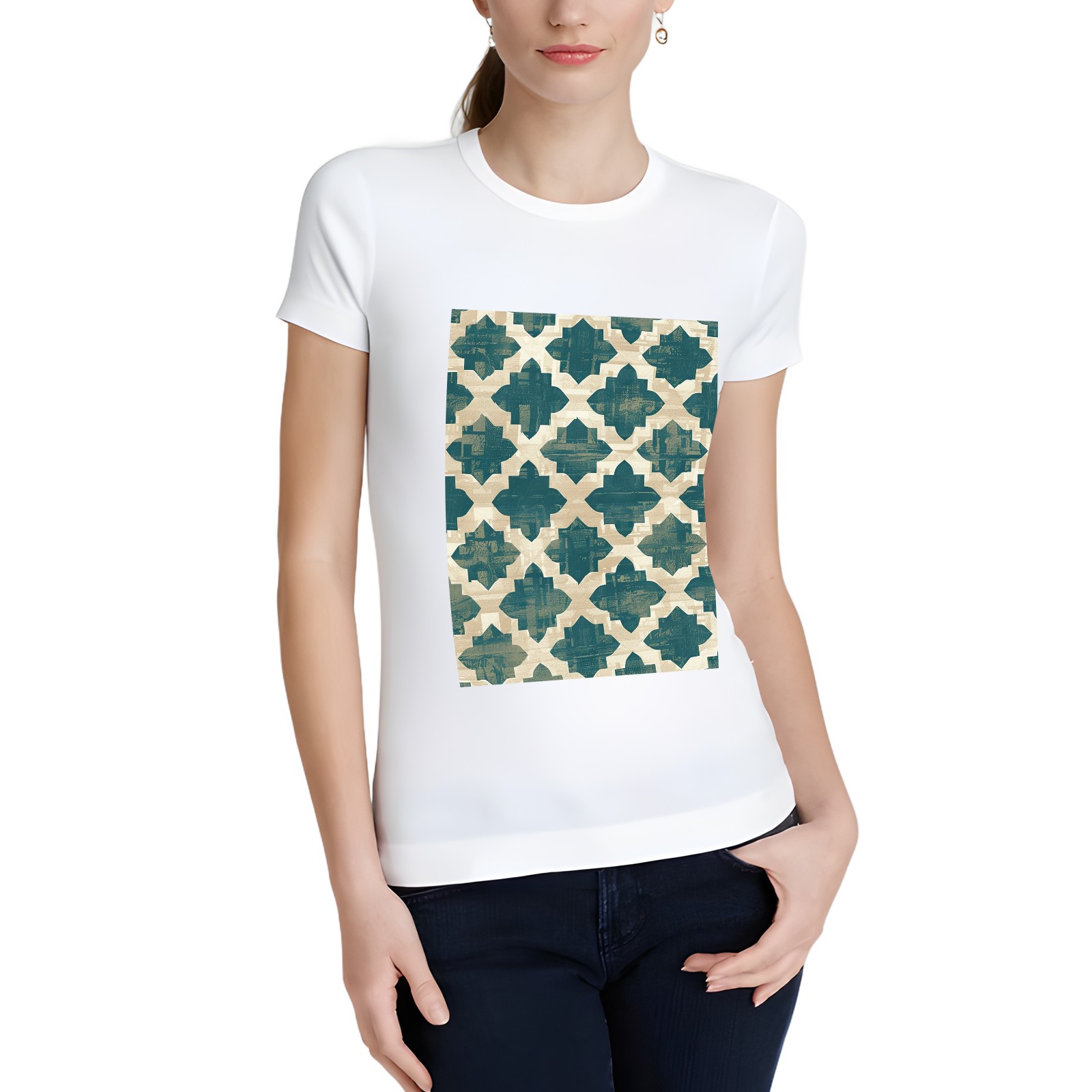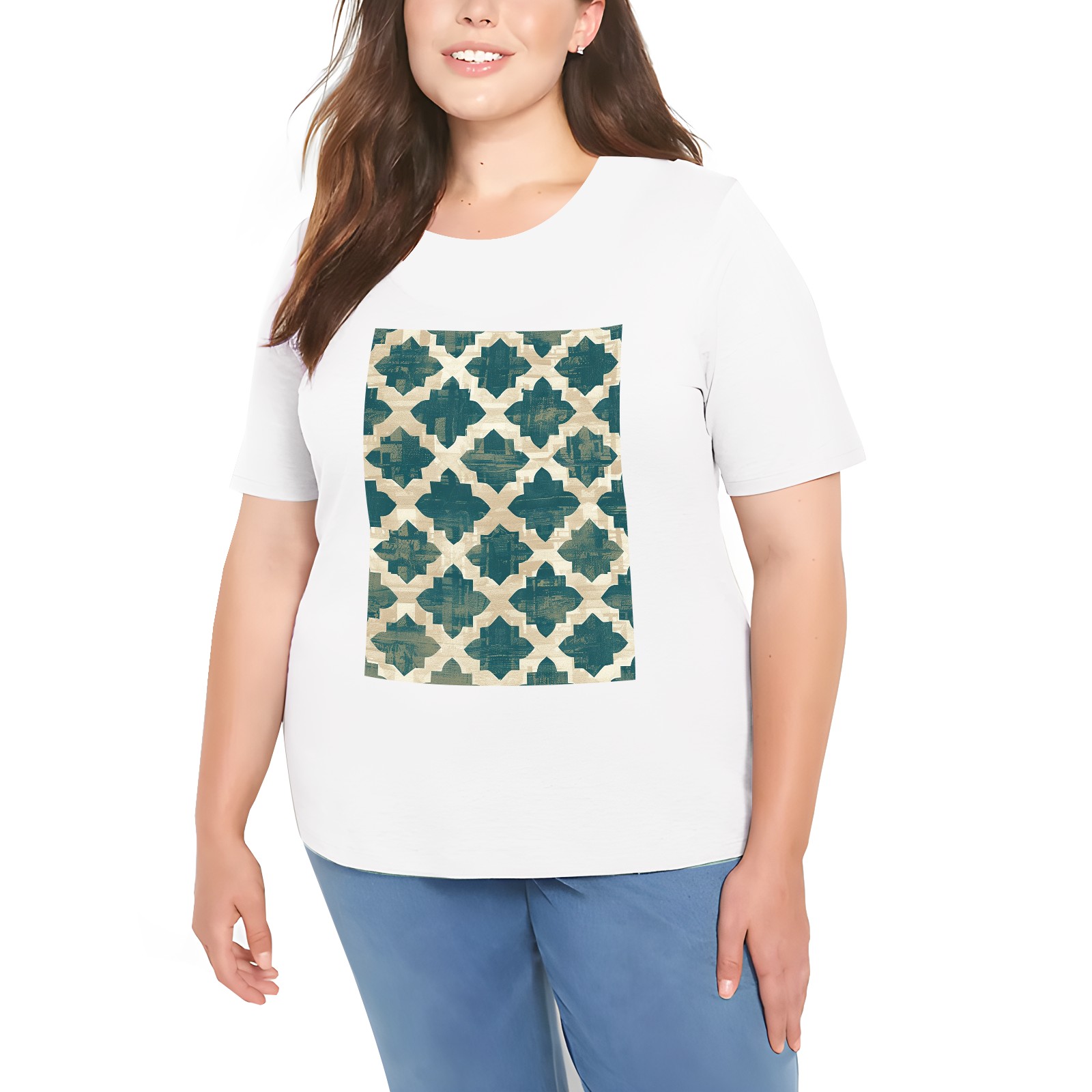 Basic Oversize Tees For WomenLattice Loose Boyfriend Shirts Casual Blouse round neck