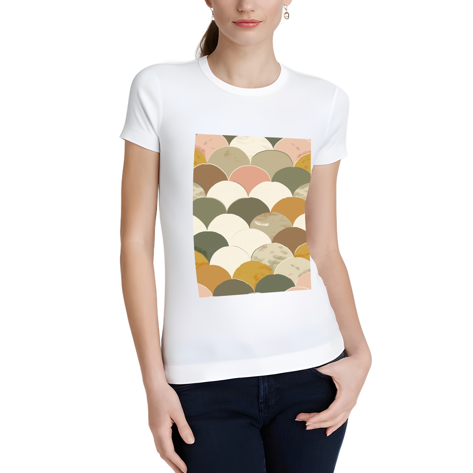 Basic Oversize Tees For WomenAbstract Loose Boyfriend Shirts Casual Blouse round neck