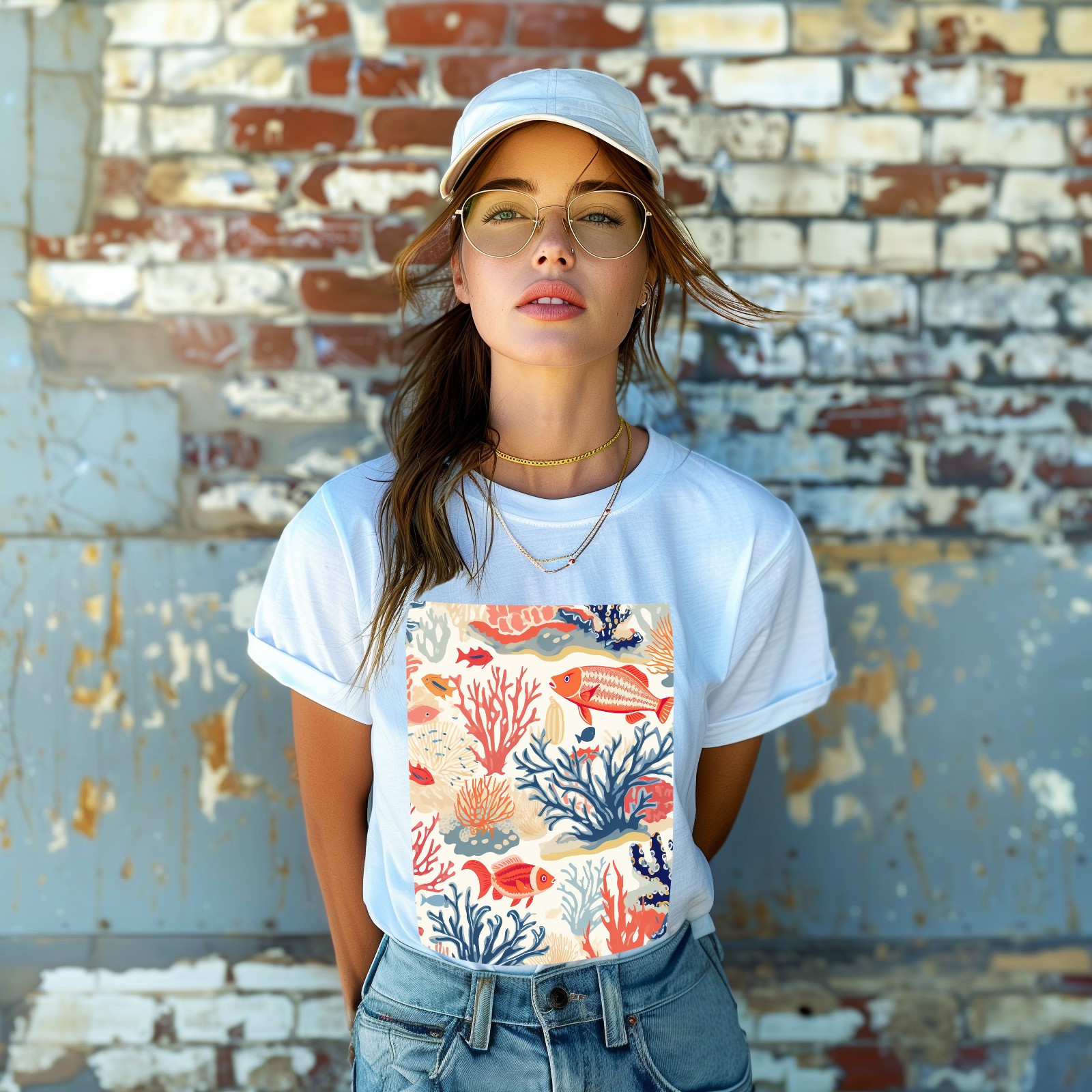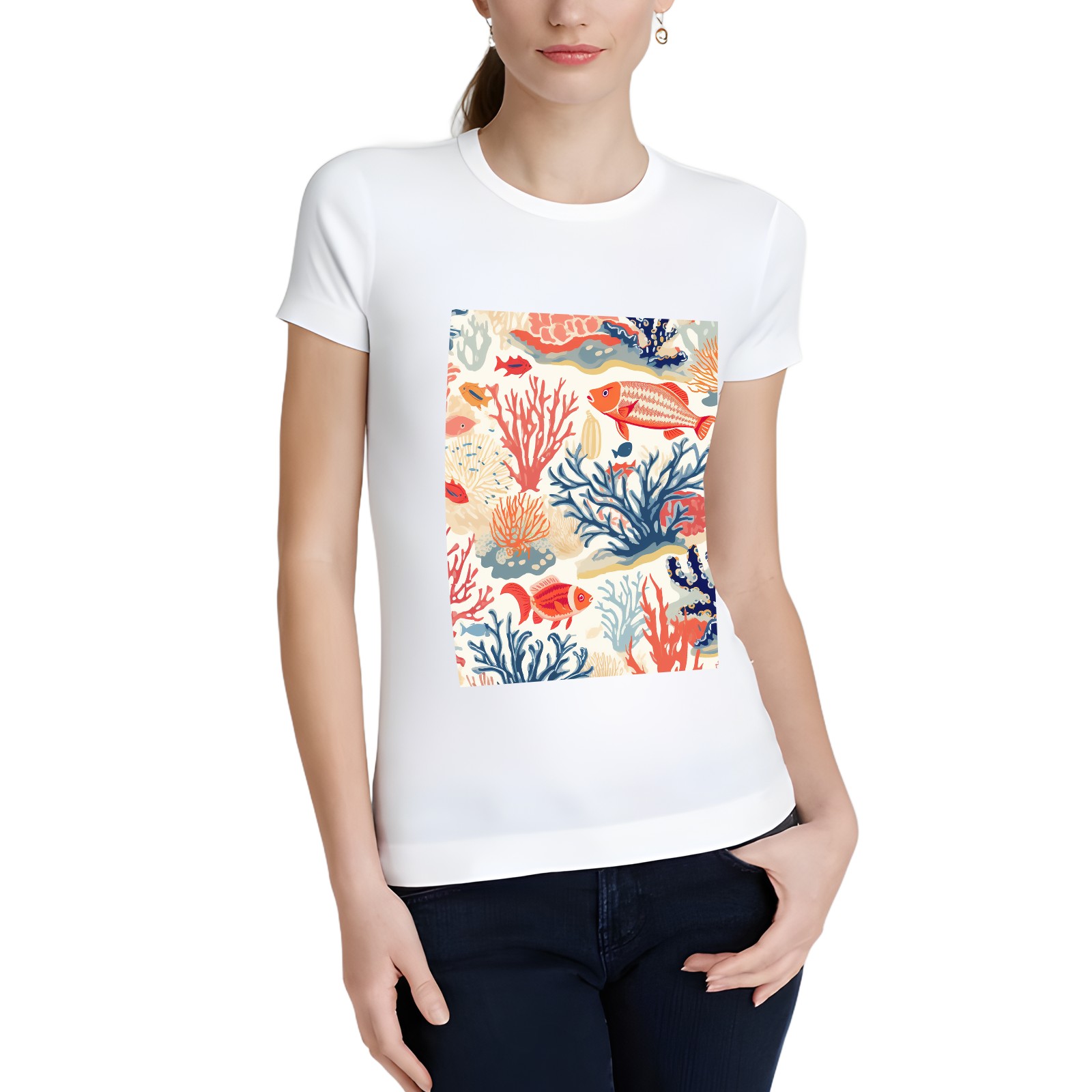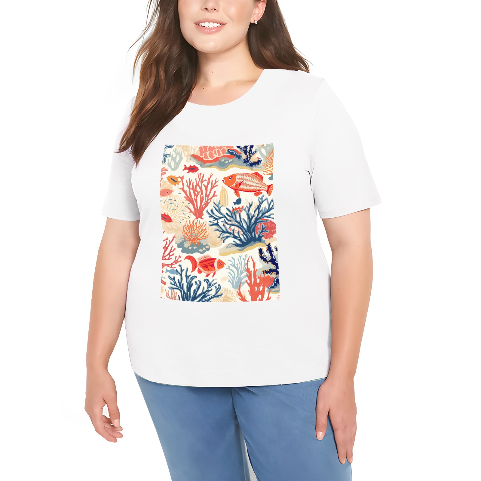 Basic Oversize Tees For WomenFish Loose Boyfriend Shirts Casual Blouse round neck