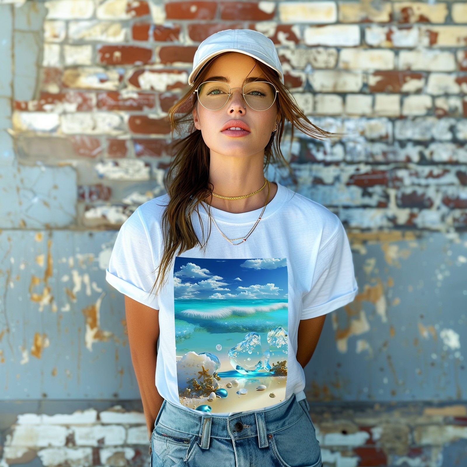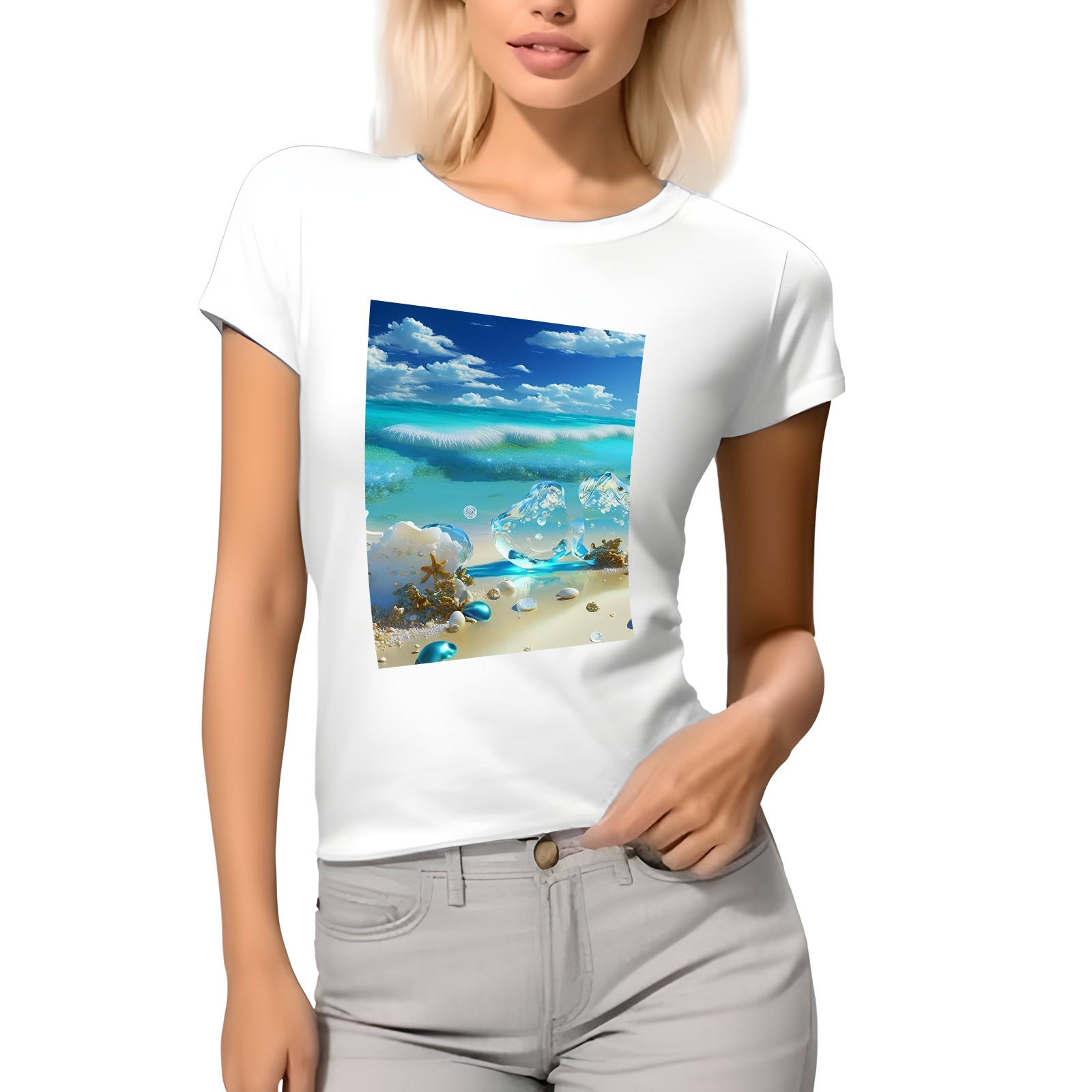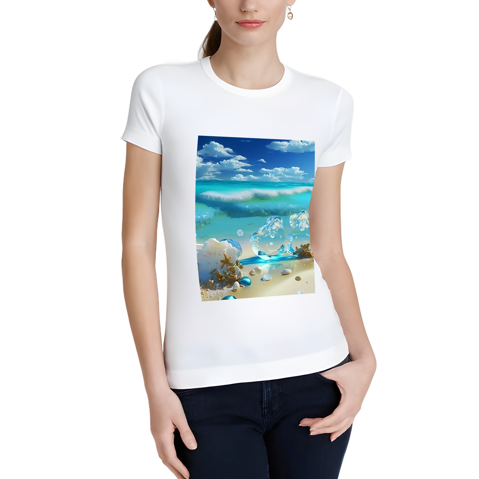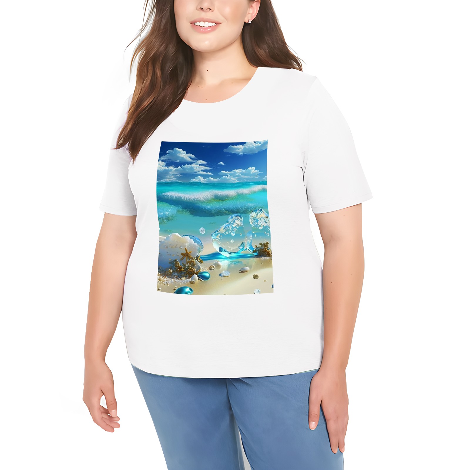 Basic Oversize Tees For WomenBeach Seashells Loose Boyfriend Shirts Casual Blouse round neck