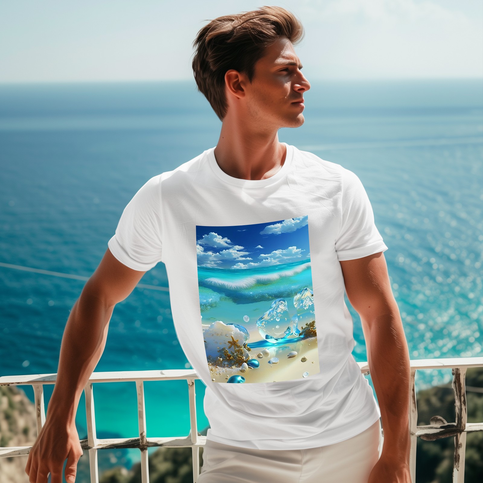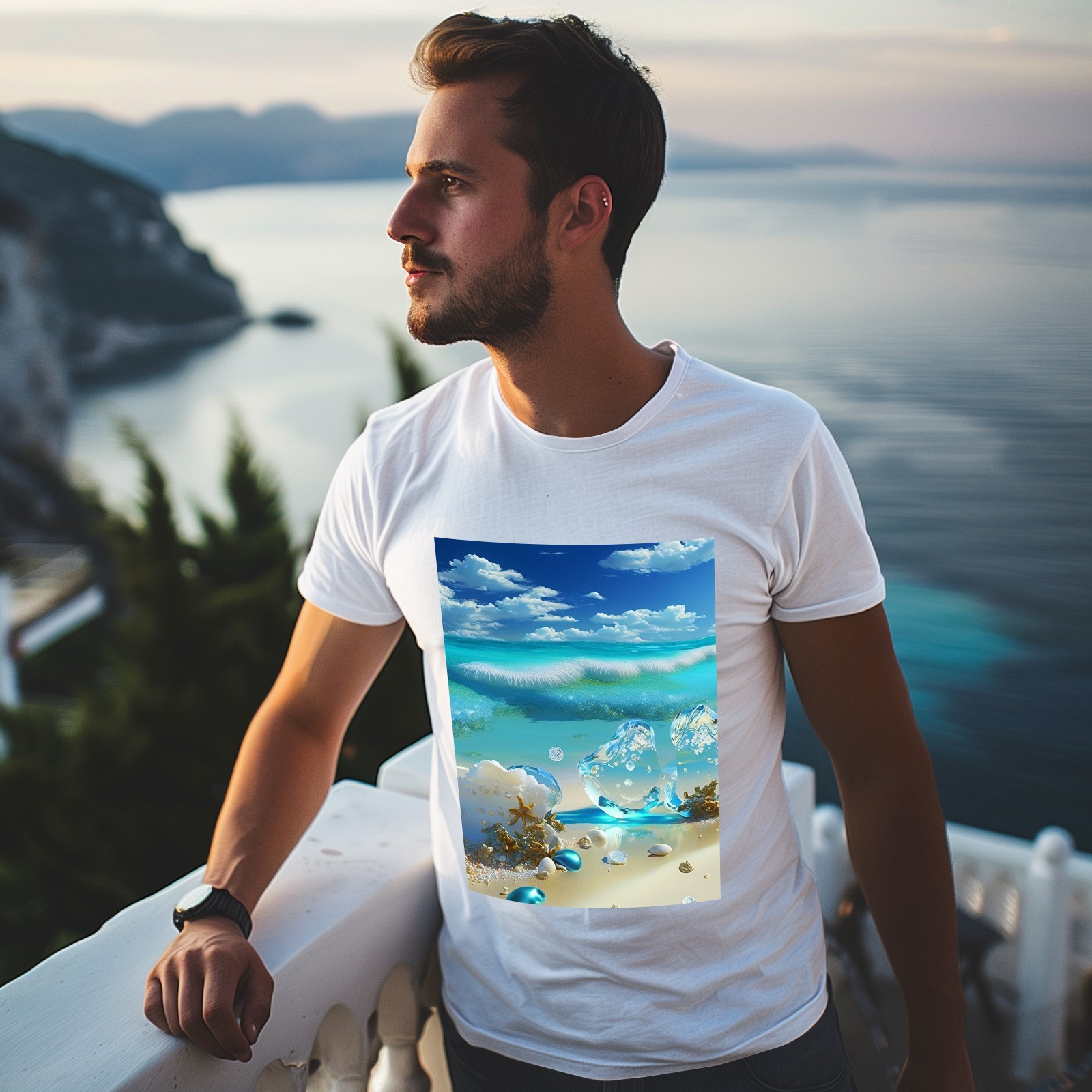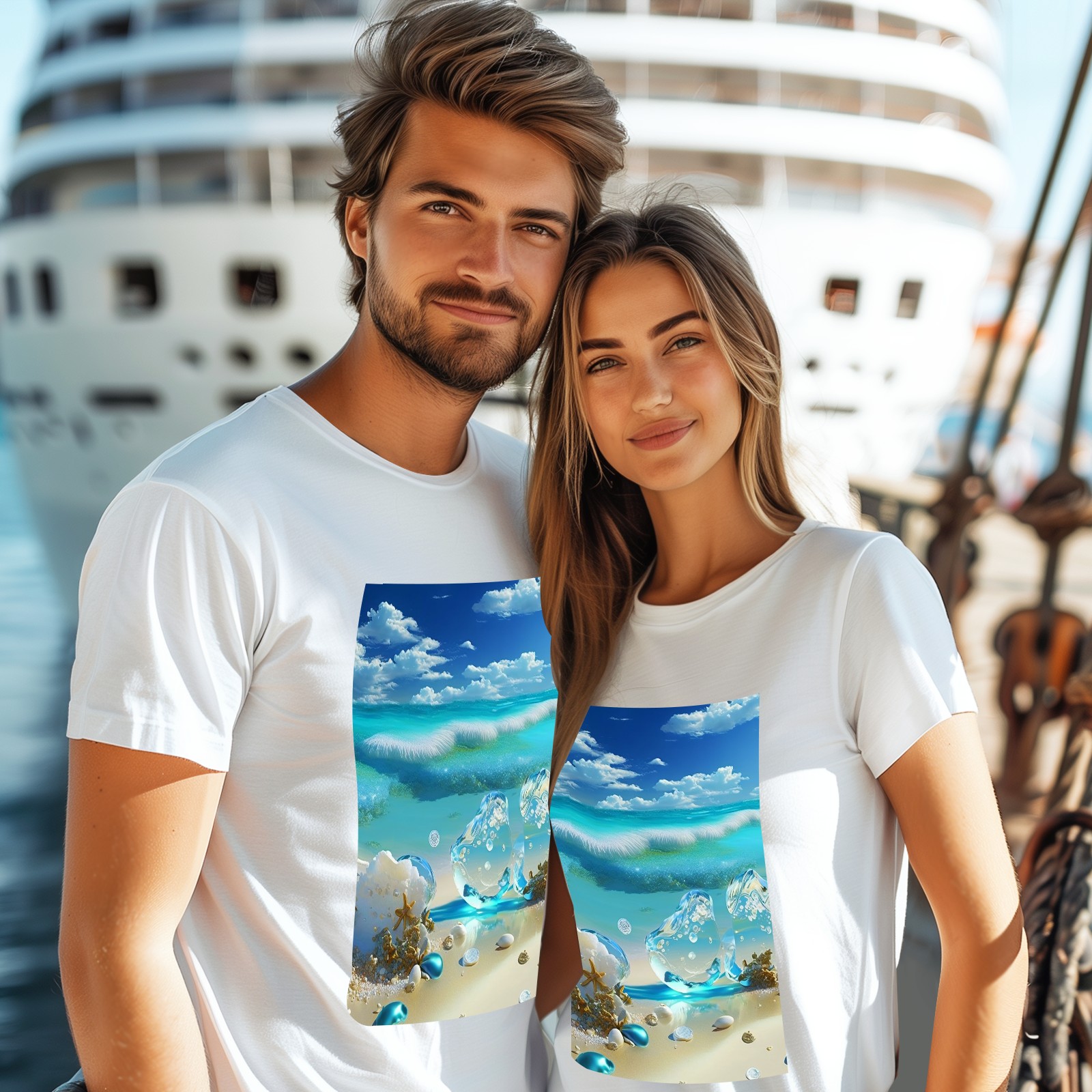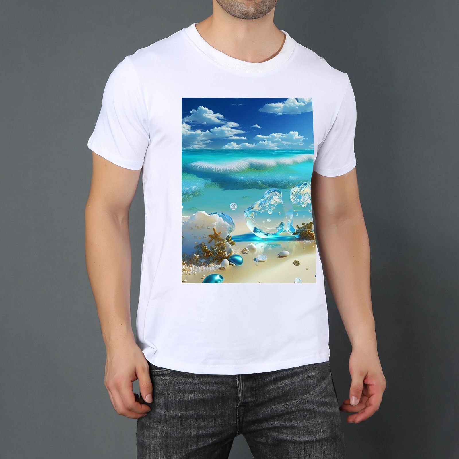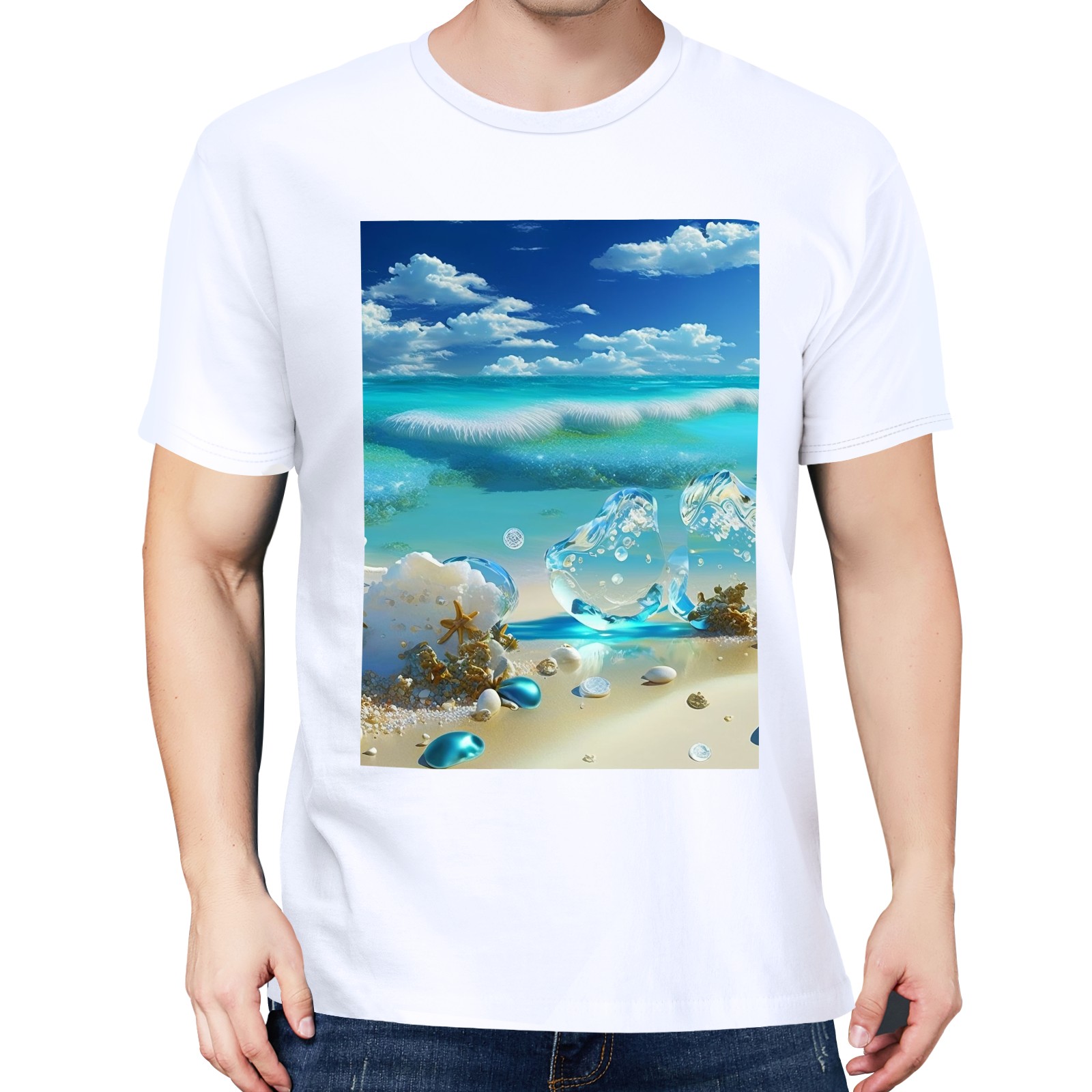 Basic Oversize Tees For WomenBeach Seashells Loose Boyfriend Shirts Casual Blouse round neck