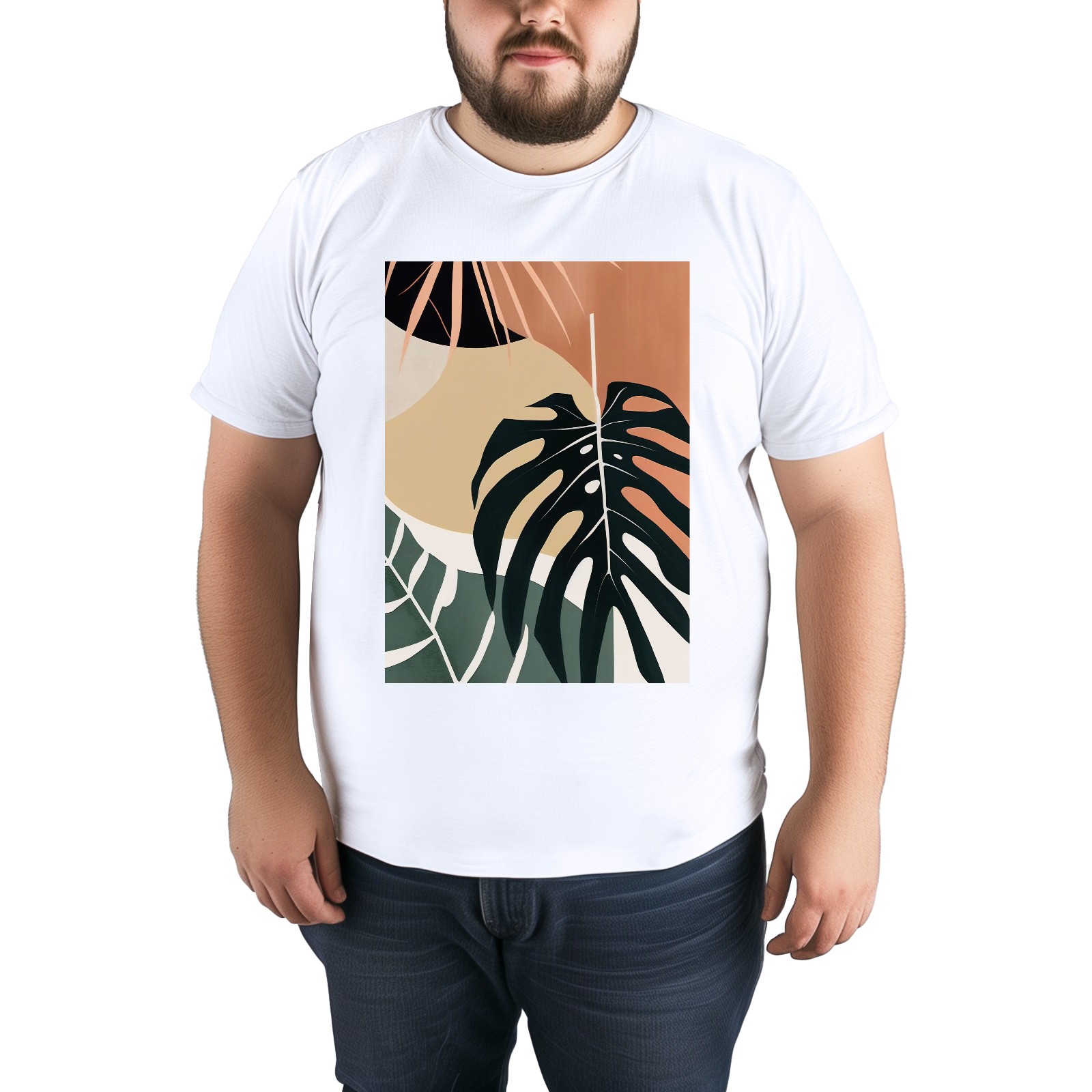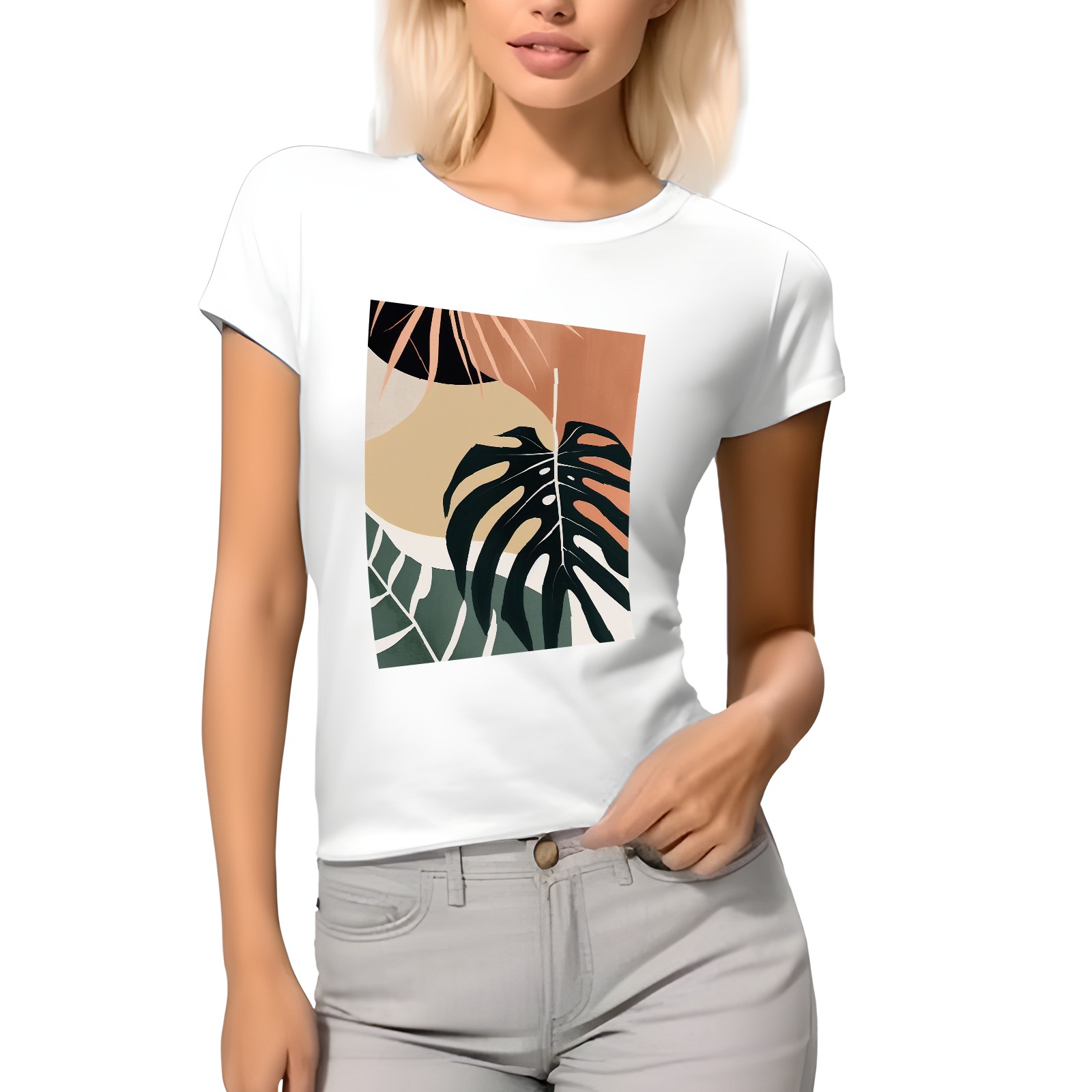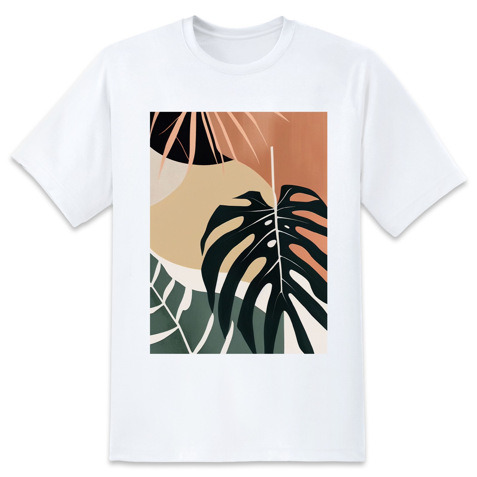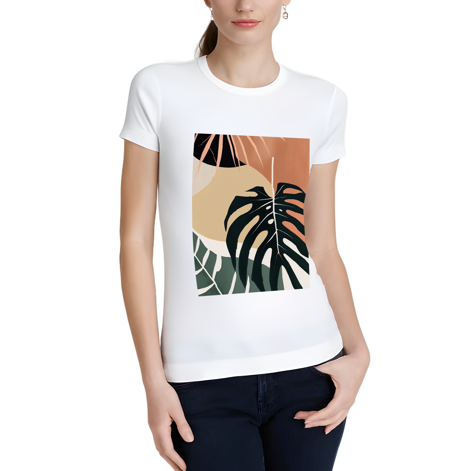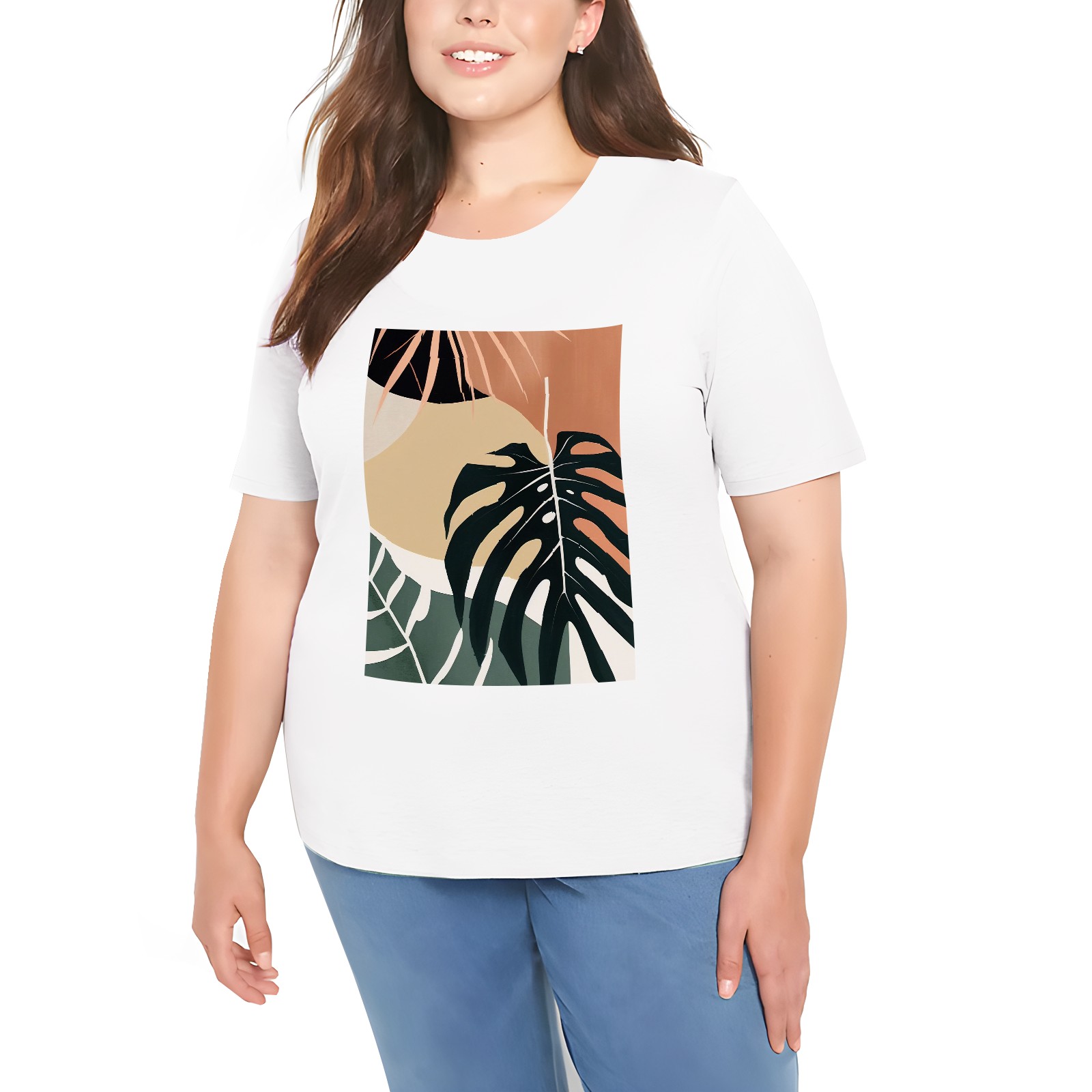 Basic Oversize Tees For WomenBoho Tropical Leaves Loose Boyfriend Shirts Casual Blouse round neck