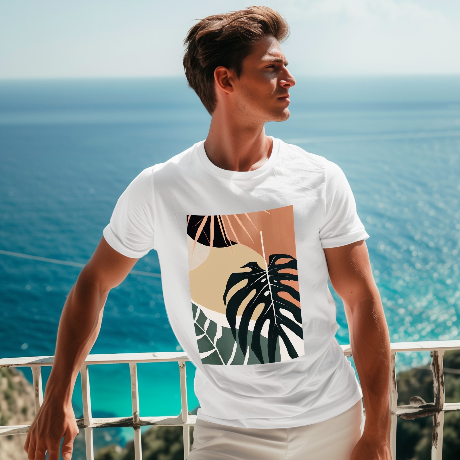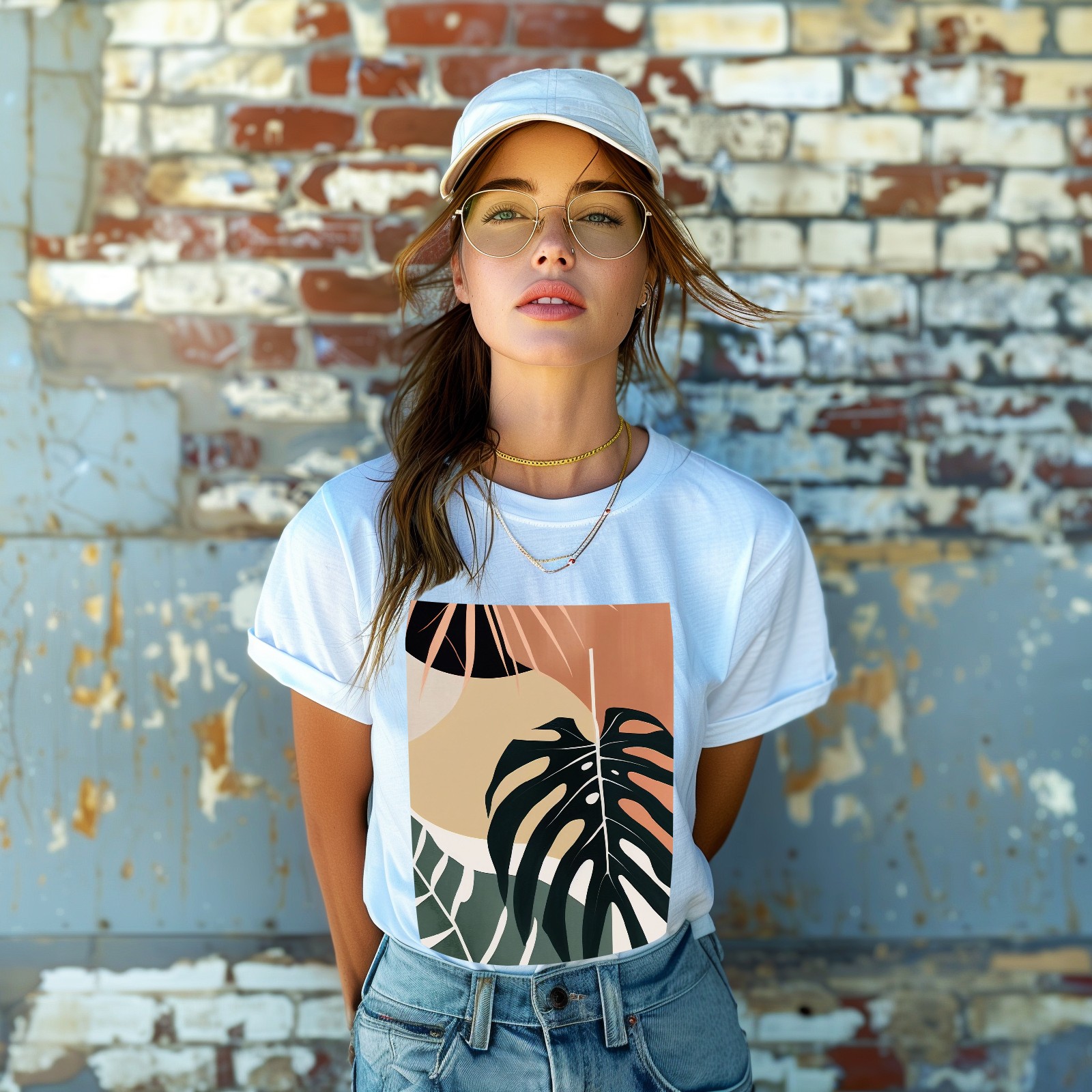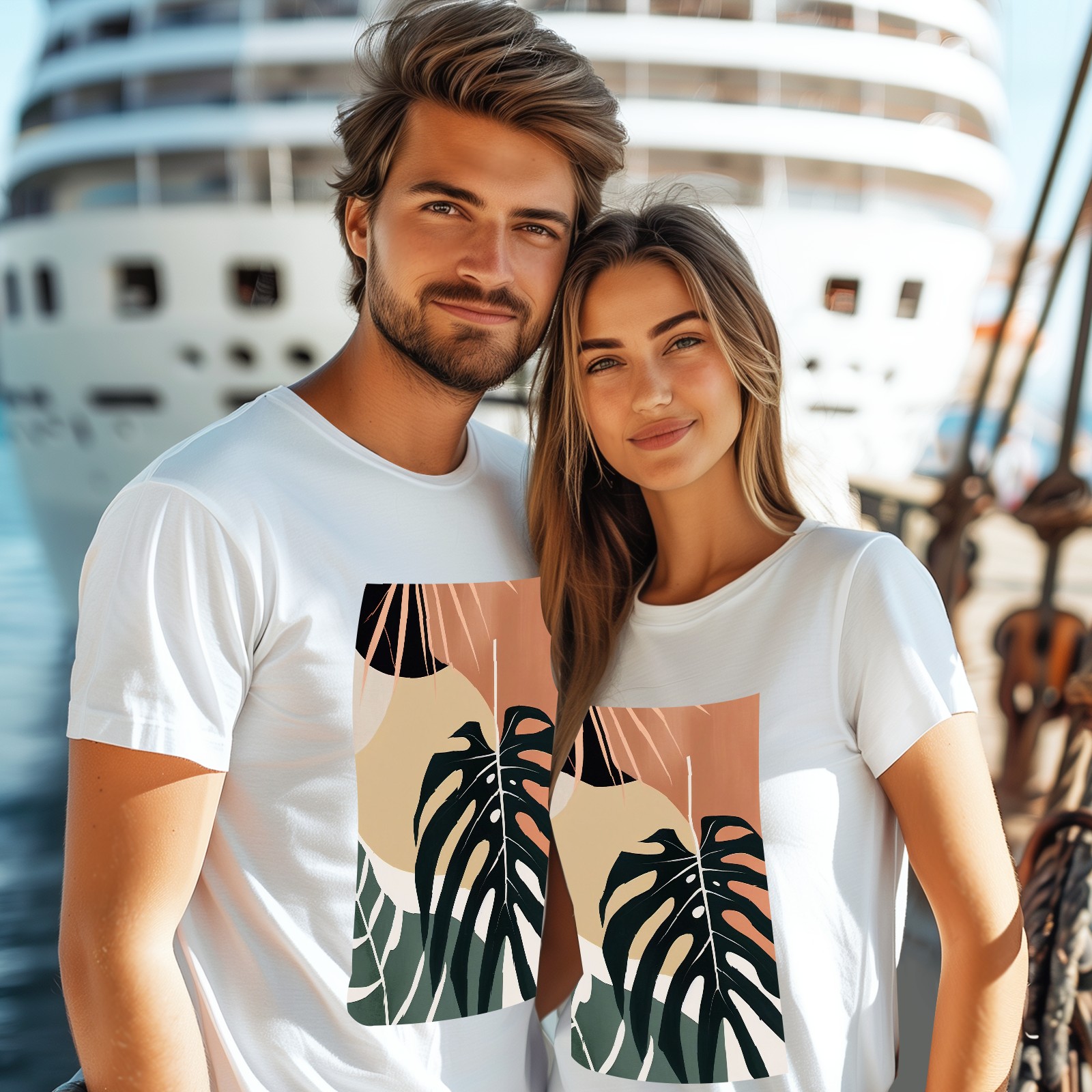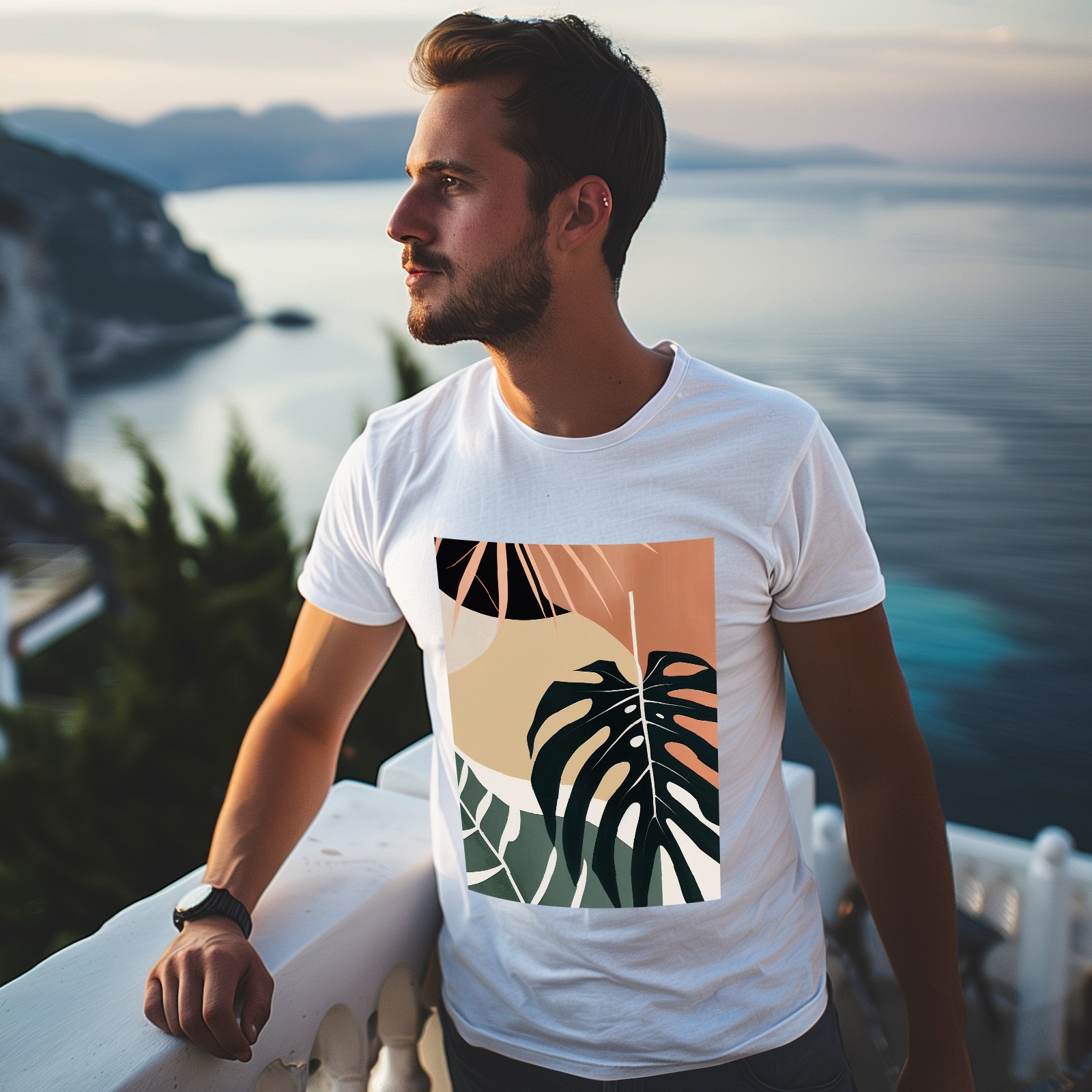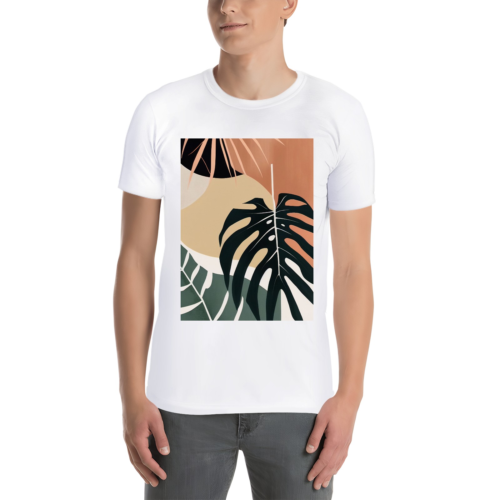 Basic Oversize Tees For WomenBoho Tropical Leaves Loose Boyfriend Shirts Casual Blouse round neck