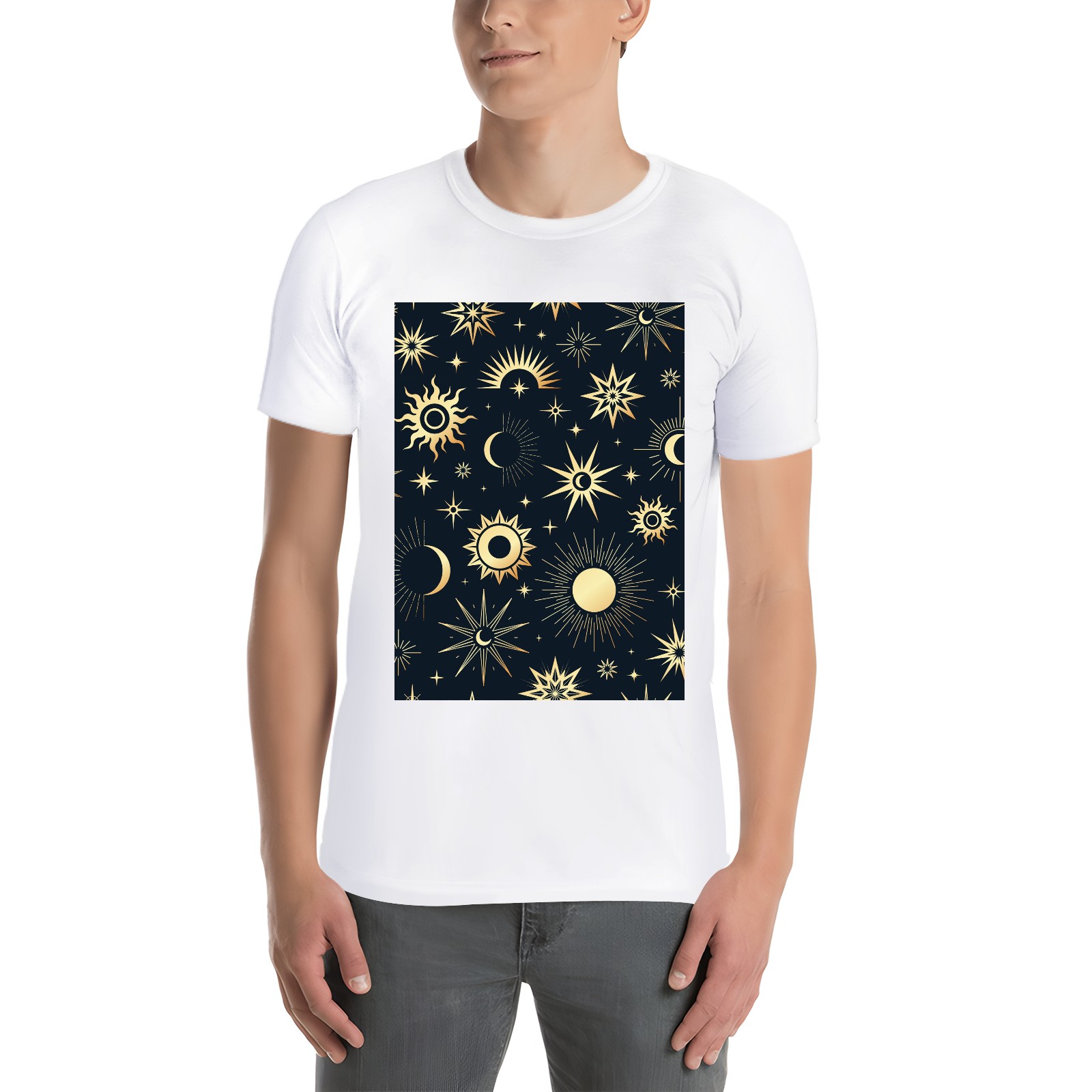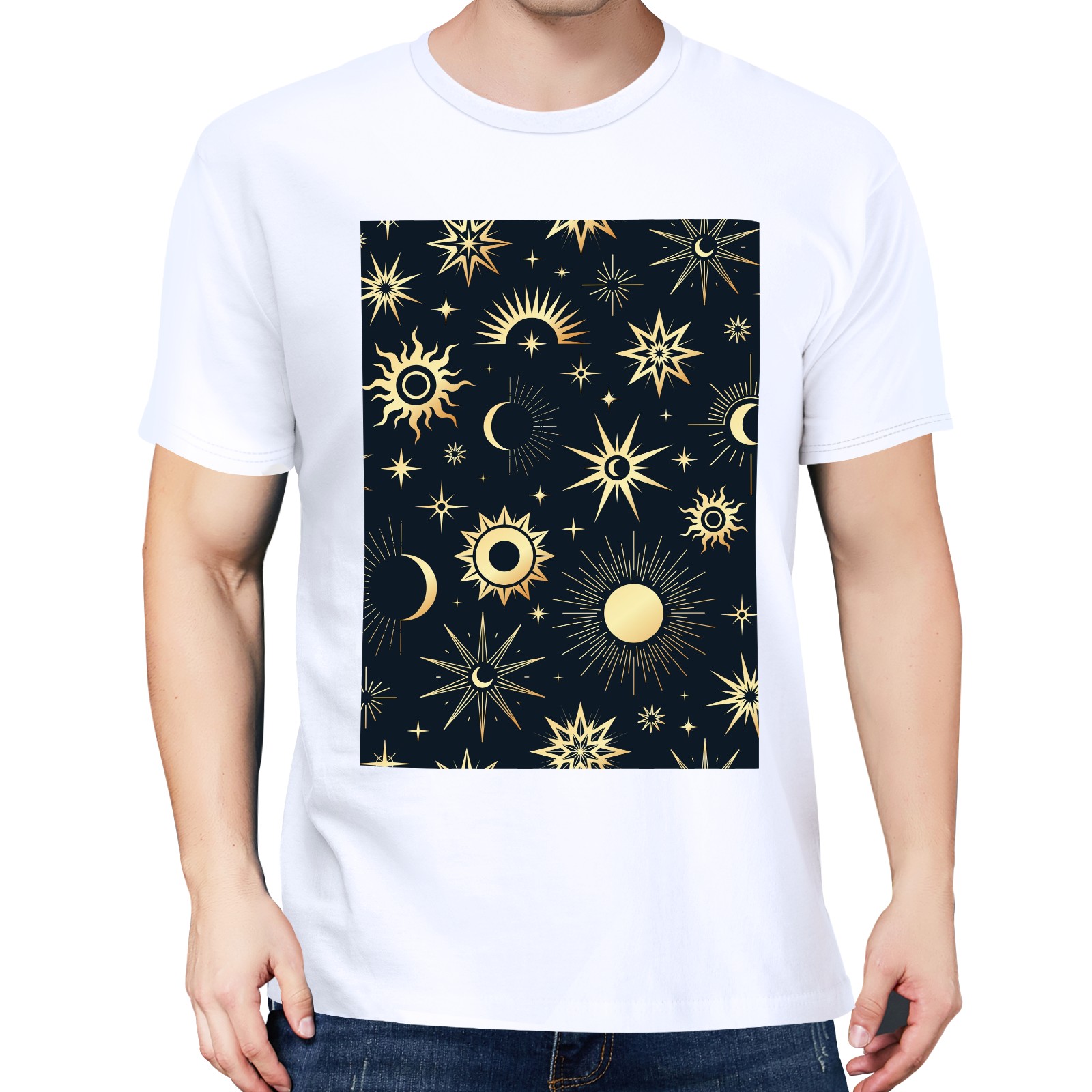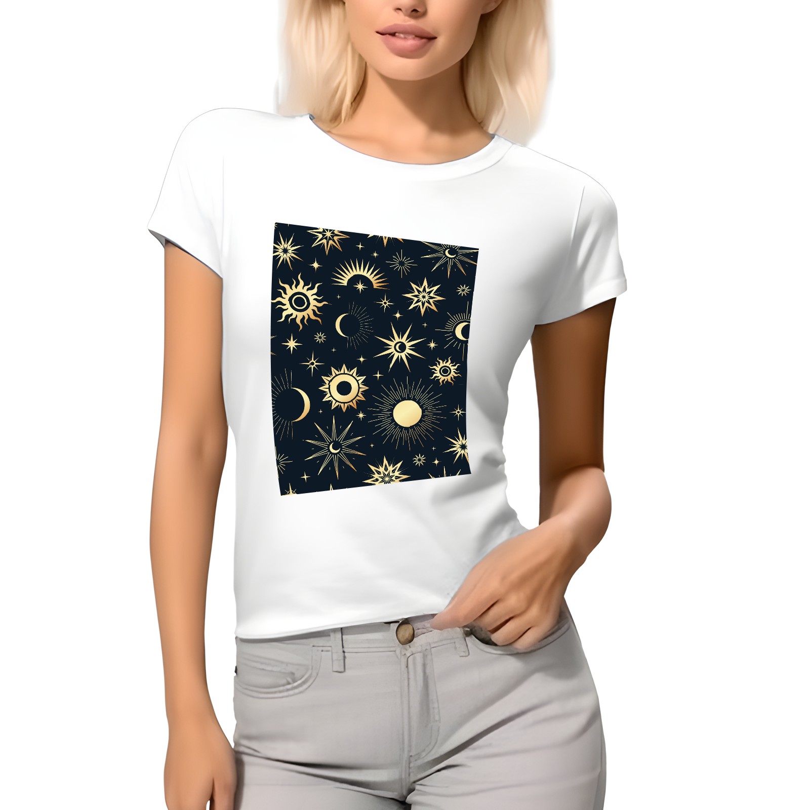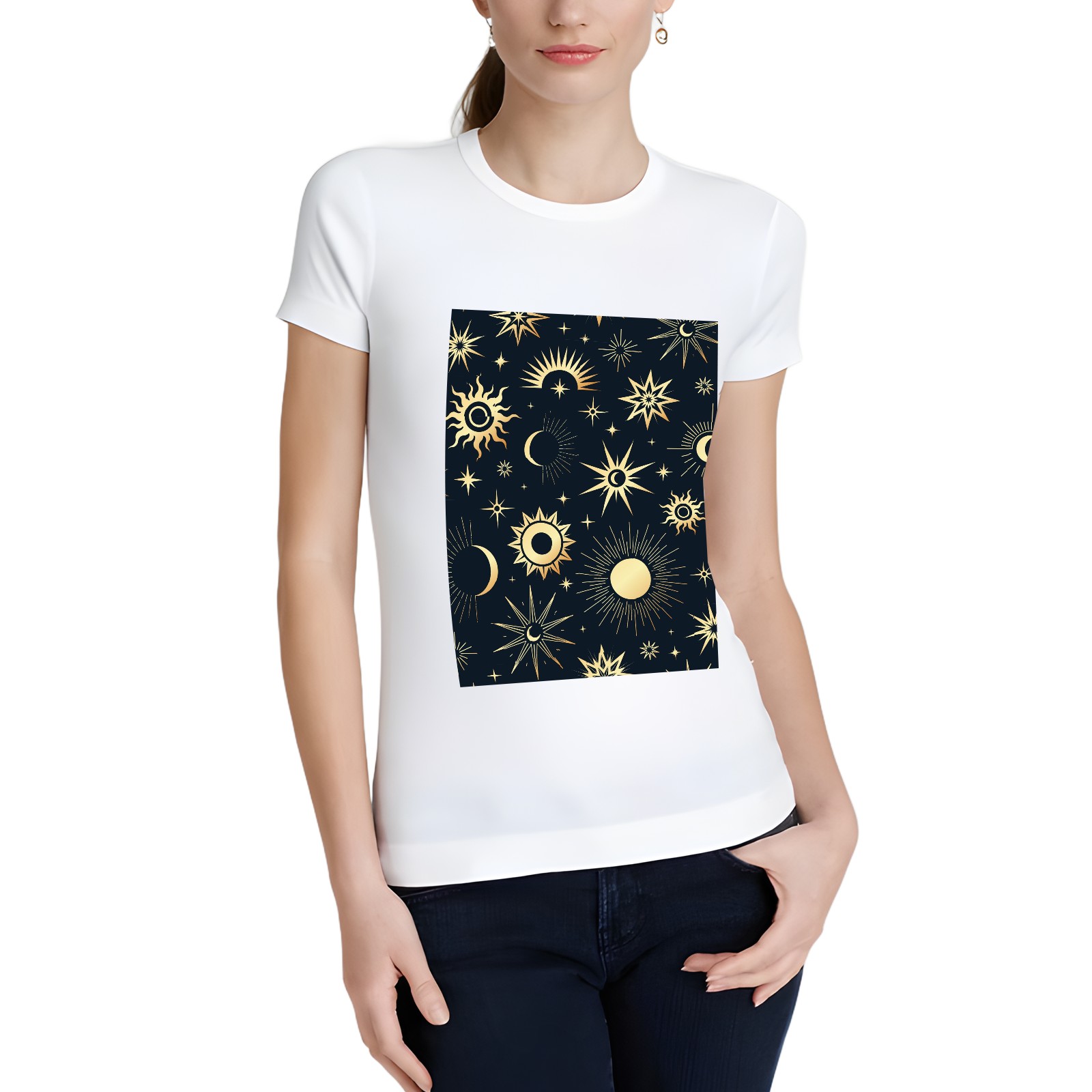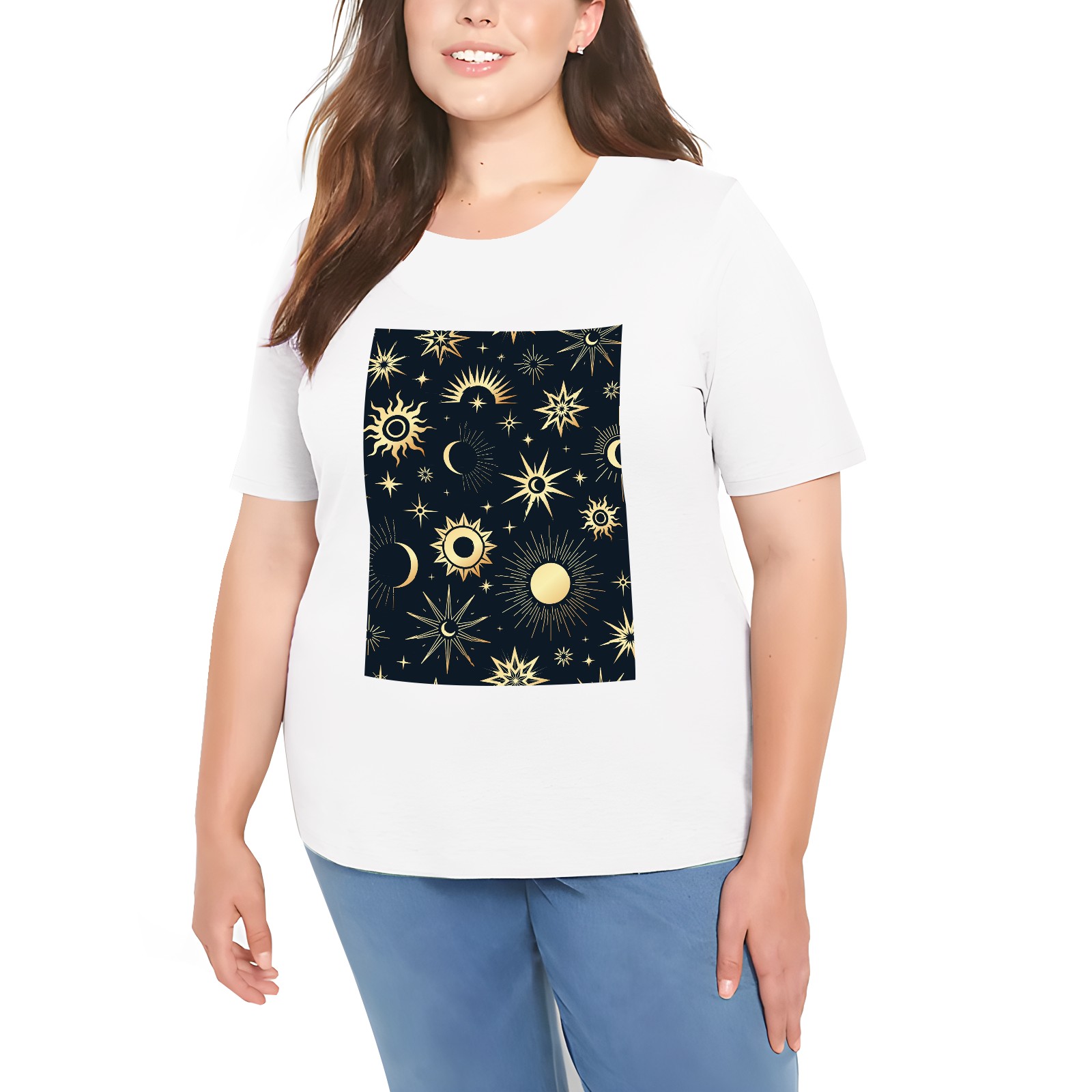 Basic Oversize Tees For WomenGold Soleil Cosmos Astrology Loose Boyfriend Shirts Casual Blouse round neck