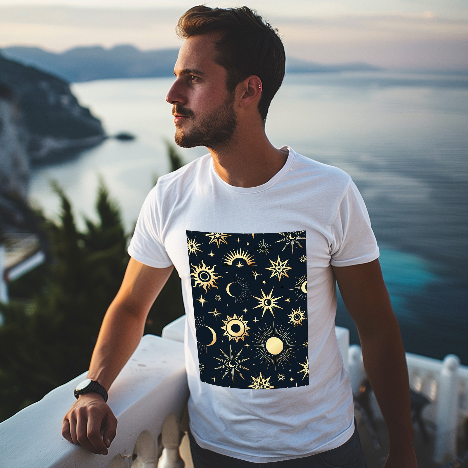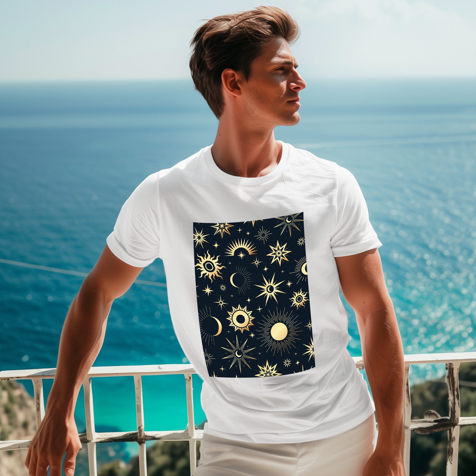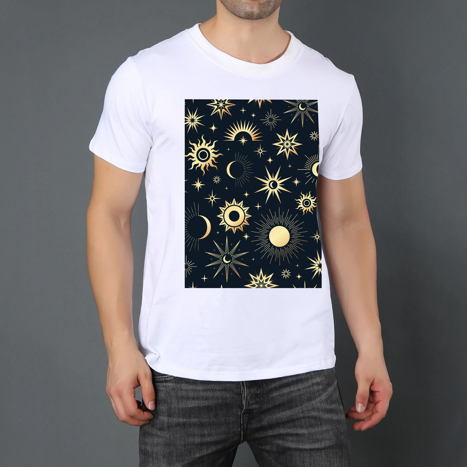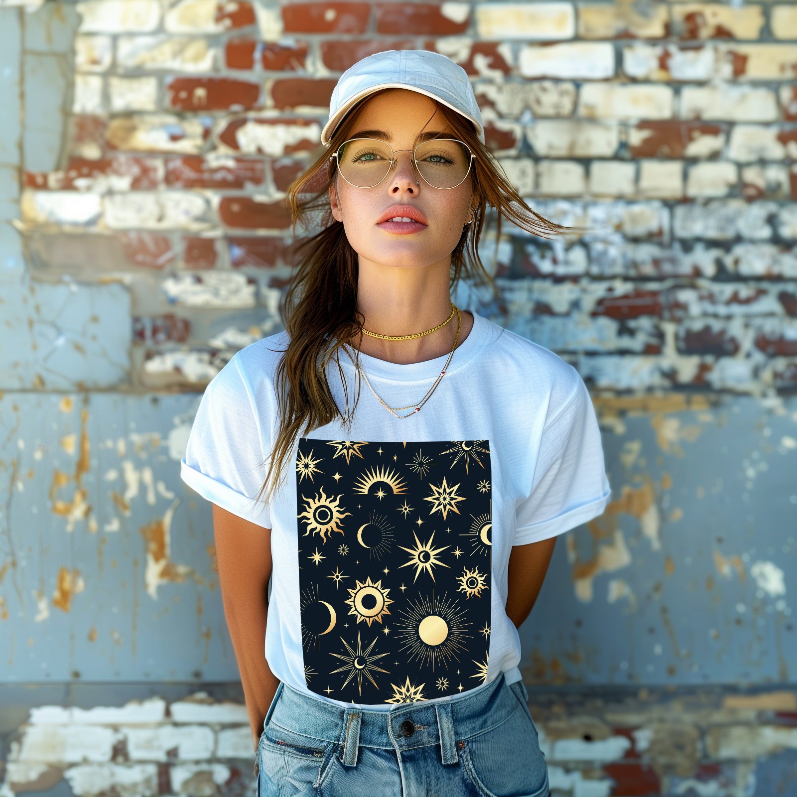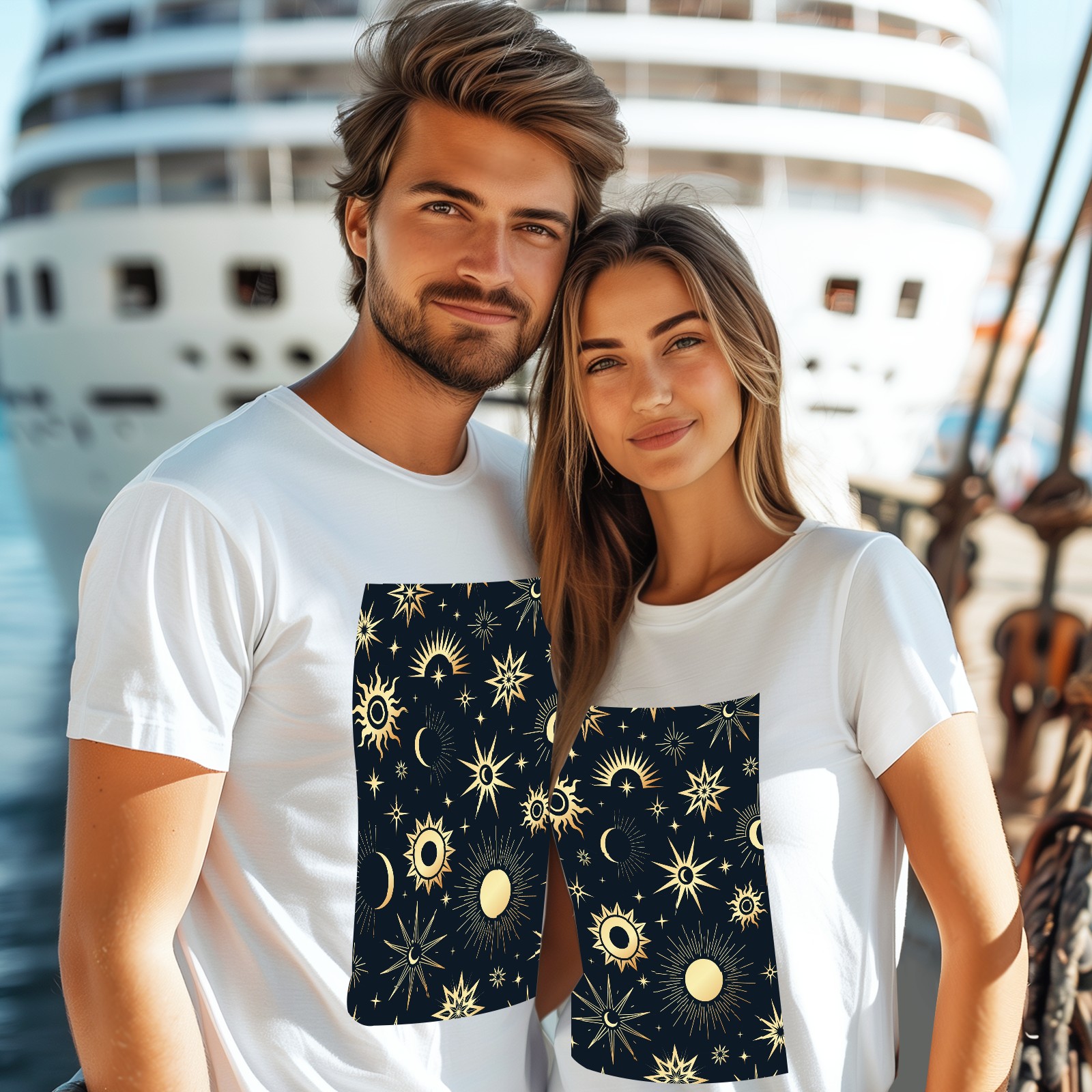 Basic Oversize Tees For WomenGold Soleil Cosmos Astrology Loose Boyfriend Shirts Casual Blouse round neck