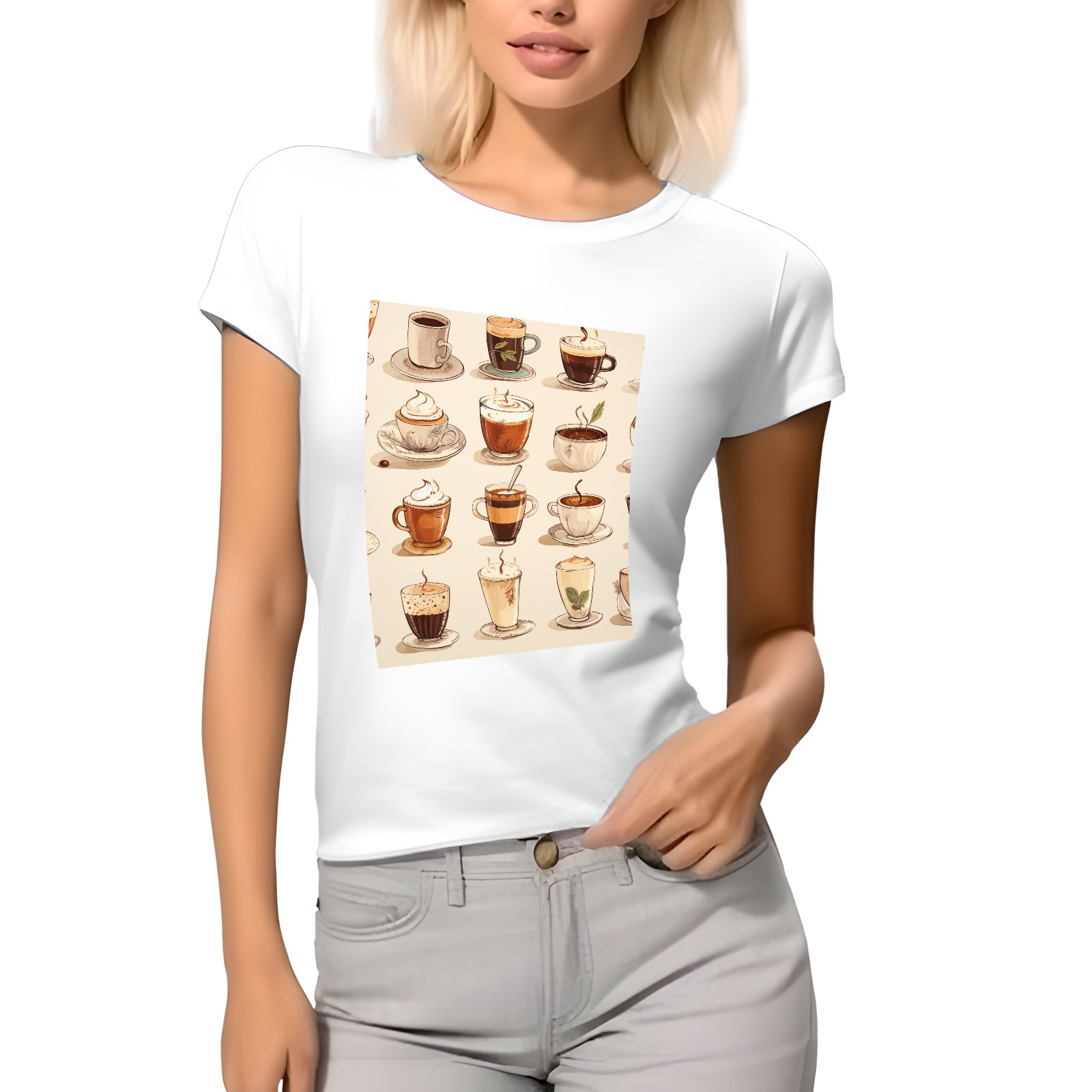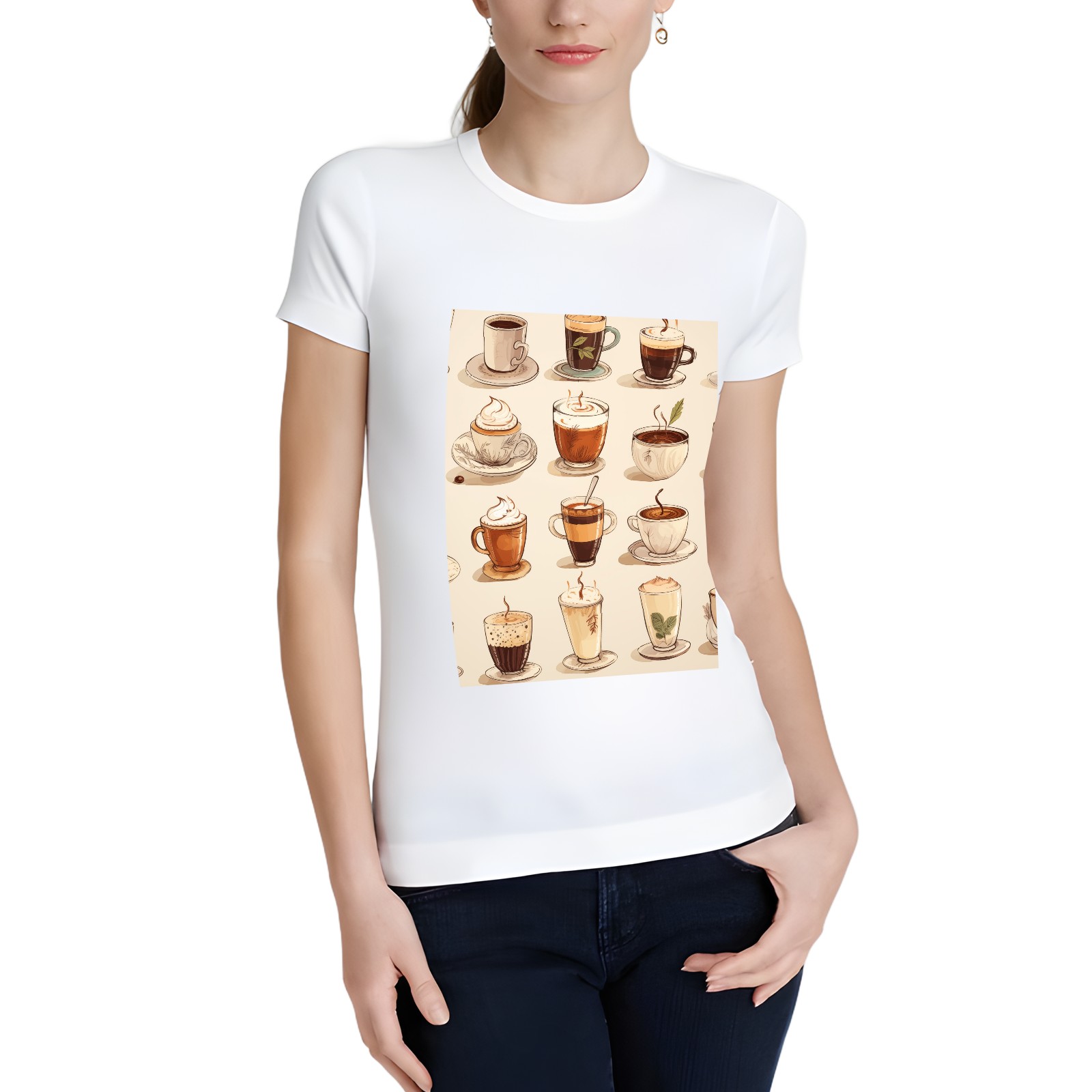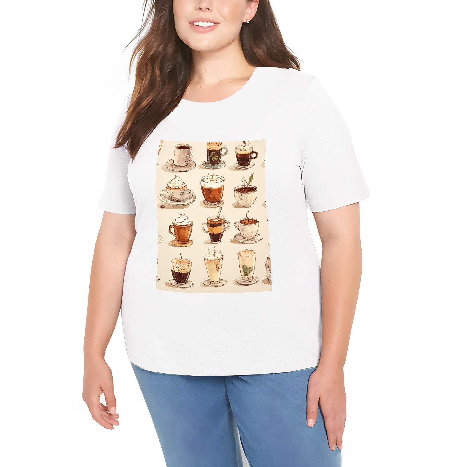 Basic Oversize Tees For WomenCoffee Loose Boyfriend Shirts Casual Blouse round neck