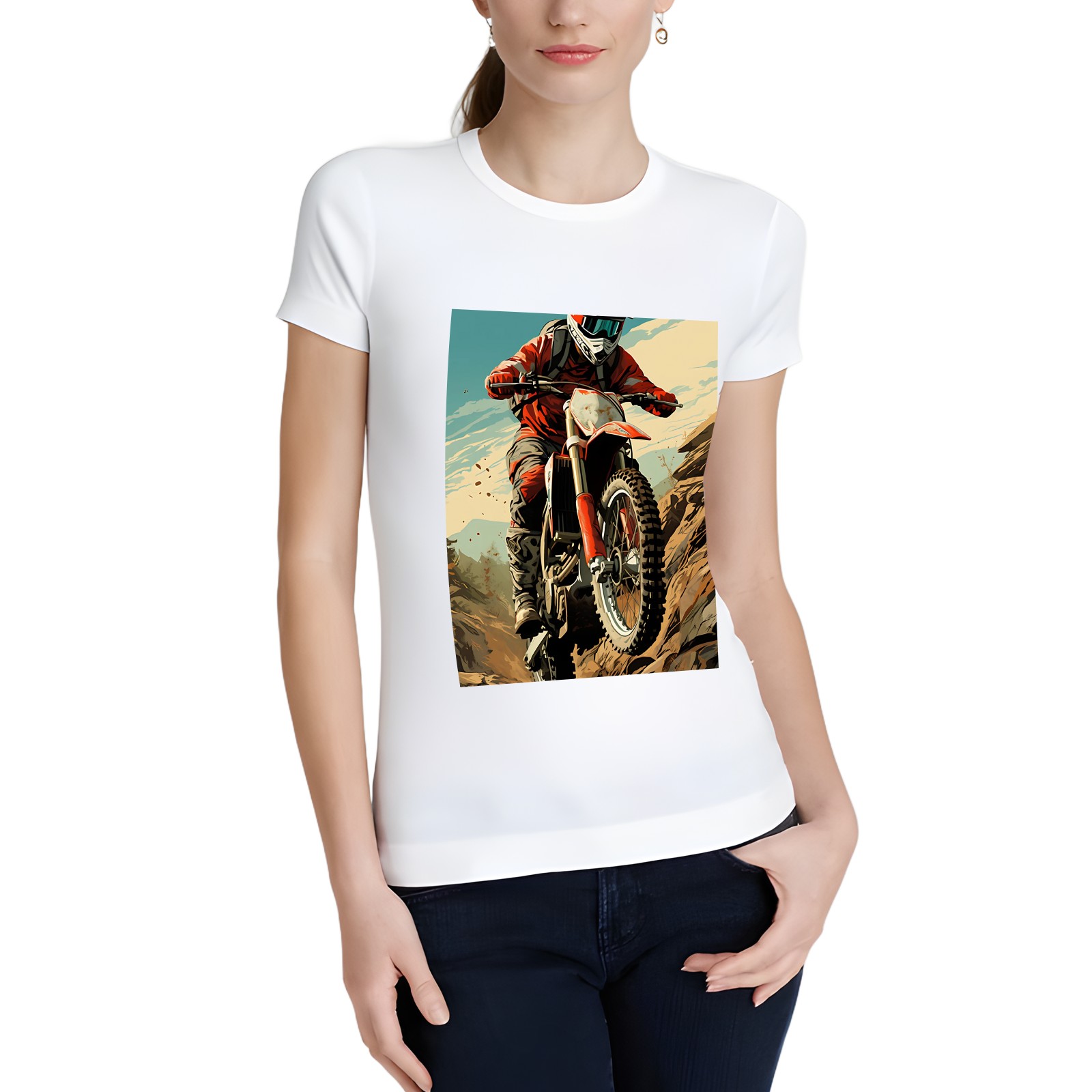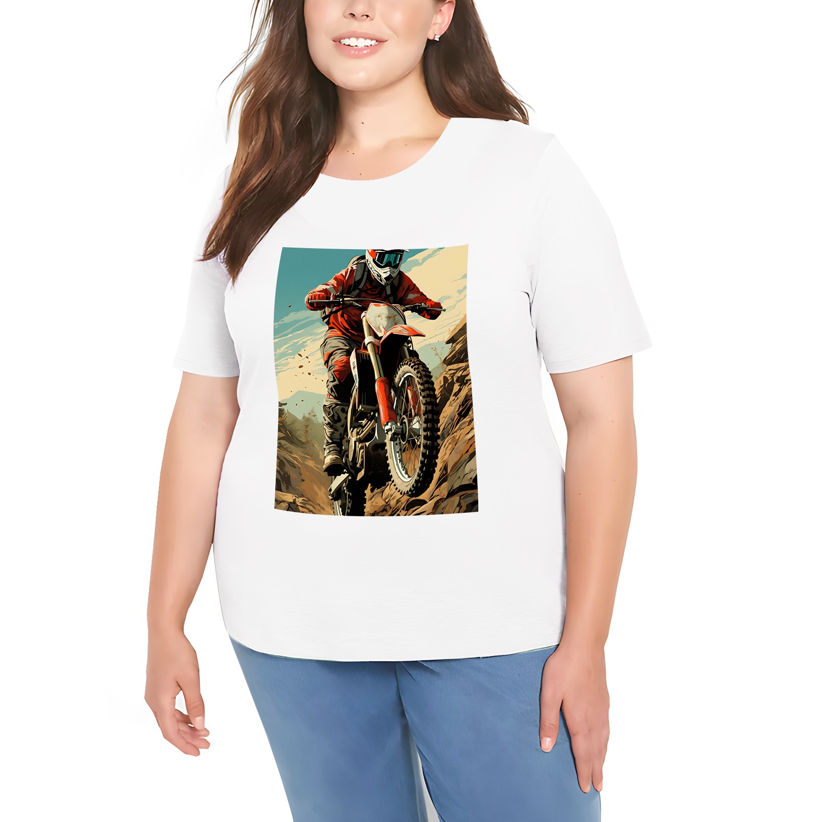 Basic Oversize Tees For WomenMotorcycle Loose Boyfriend Shirts Casual Blouse round neck