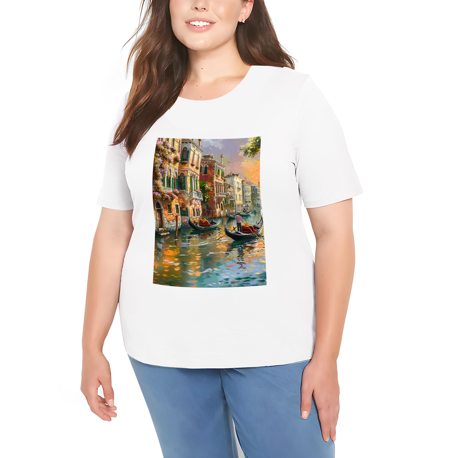 Basic Oversize Tees For WomenScenery Loose Boyfriend Shirts Casual Blouse round neck