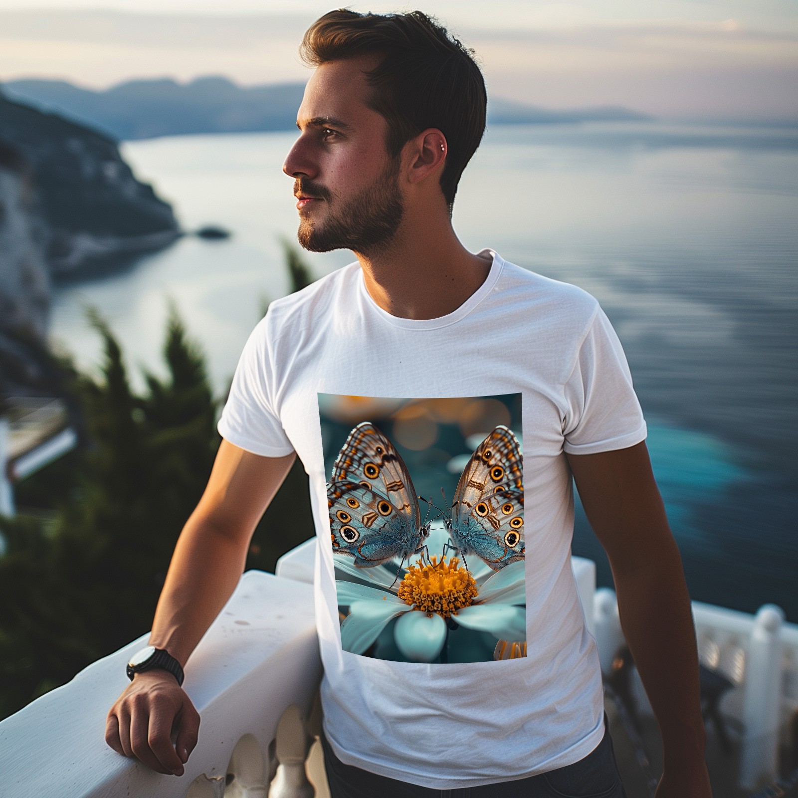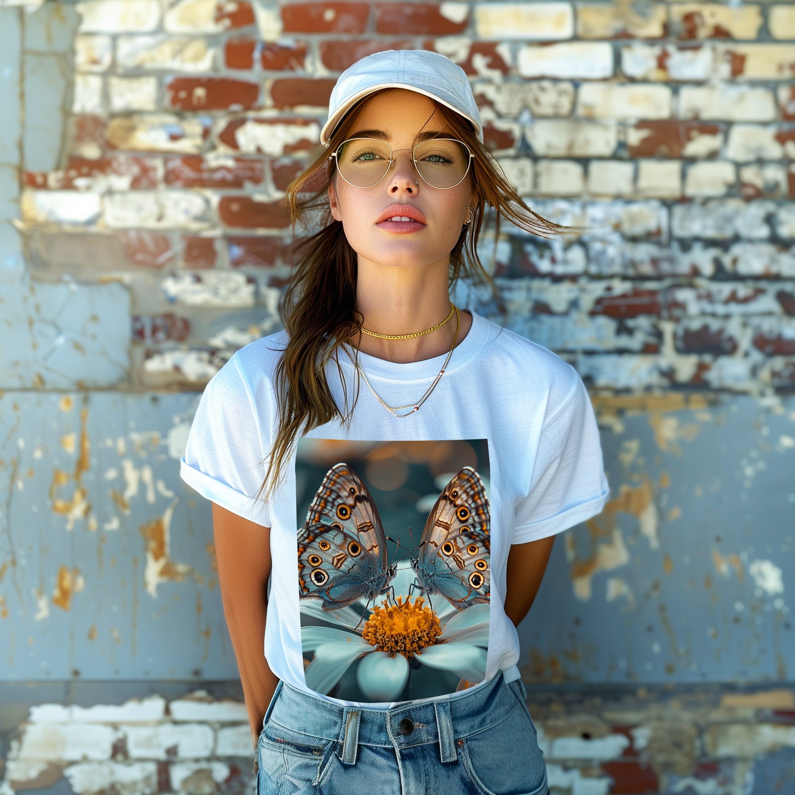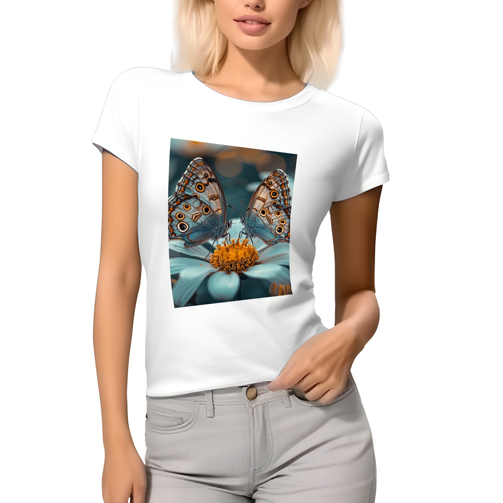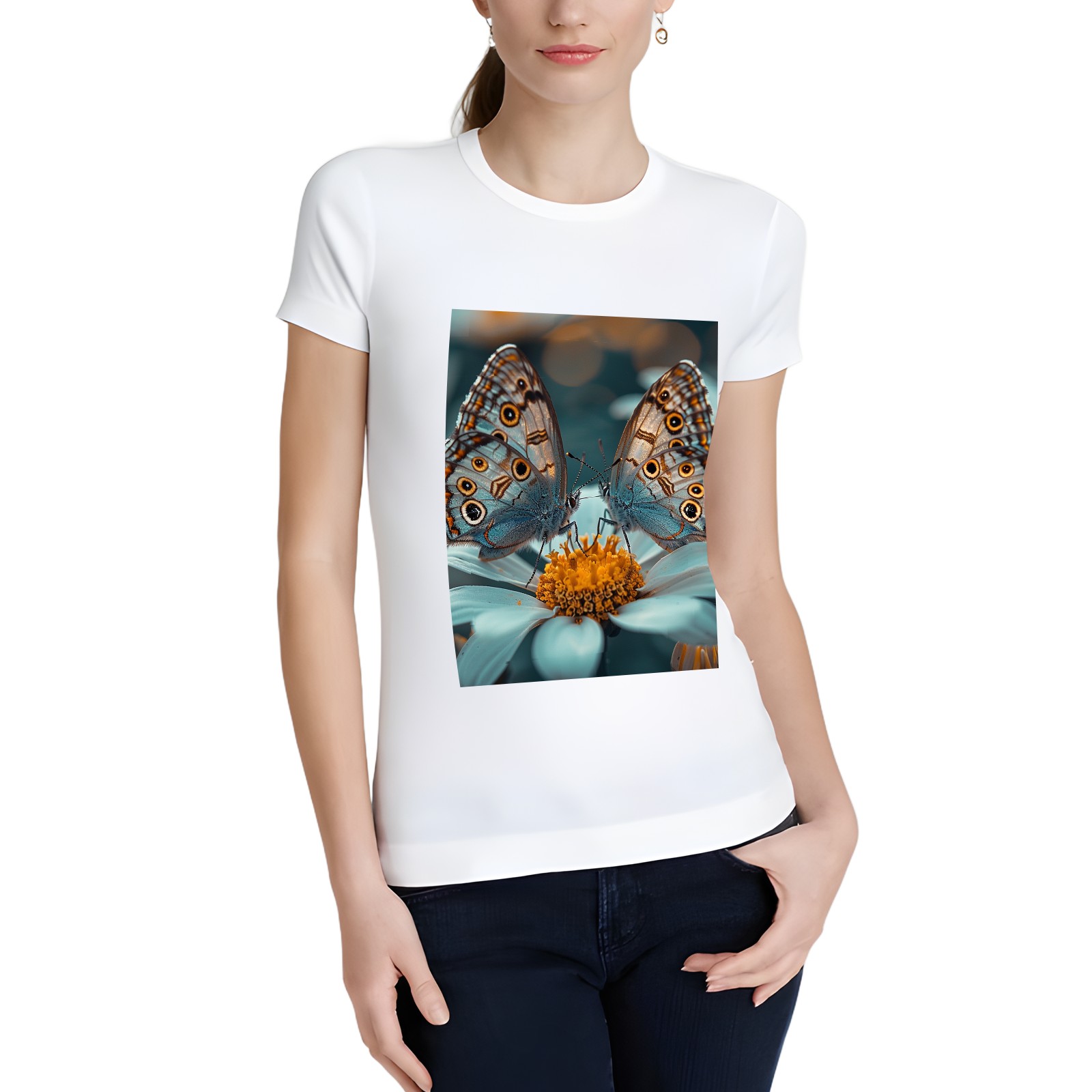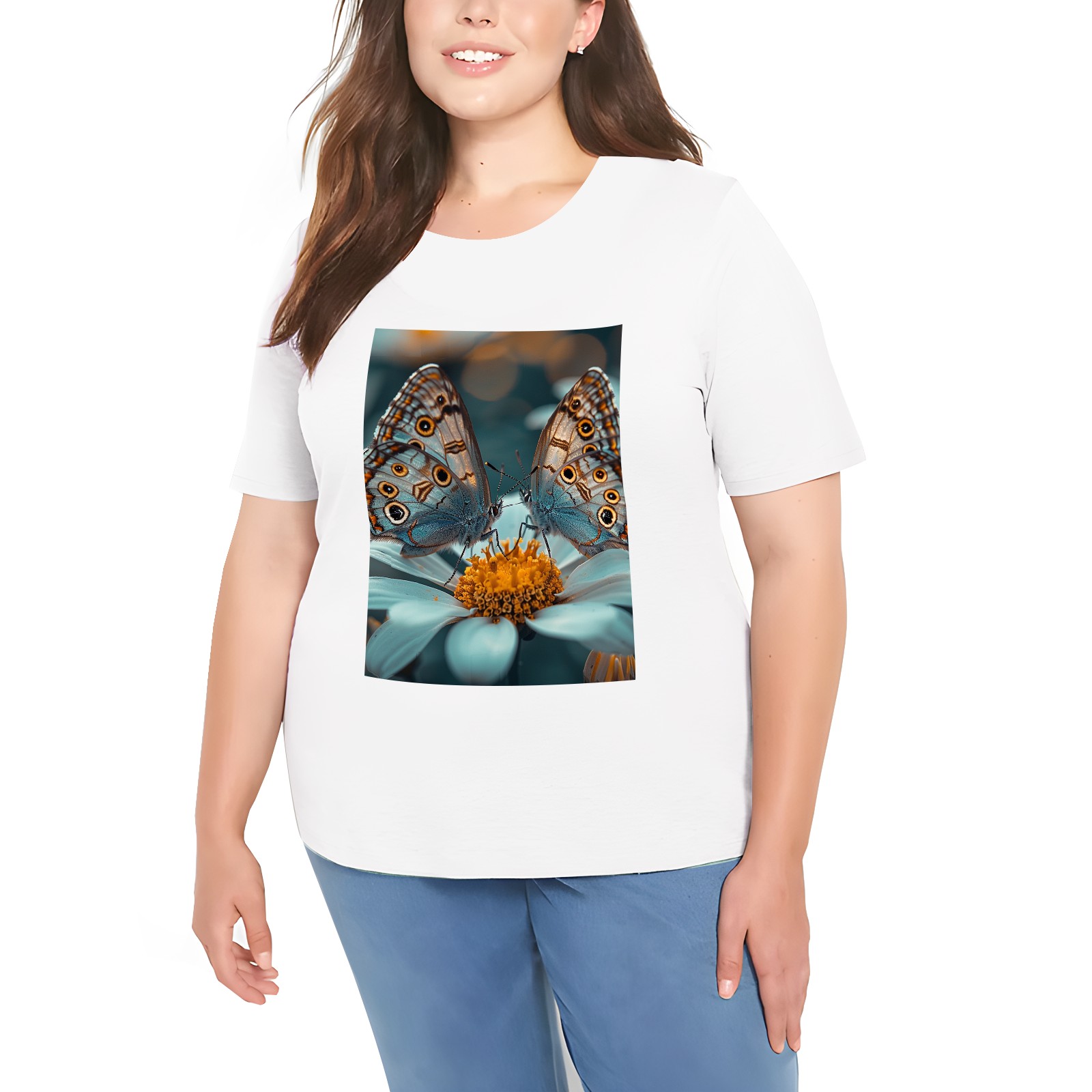 Basic Oversize Tees For WomenButterfly Loose Boyfriend Shirts Casual Blouse round neck