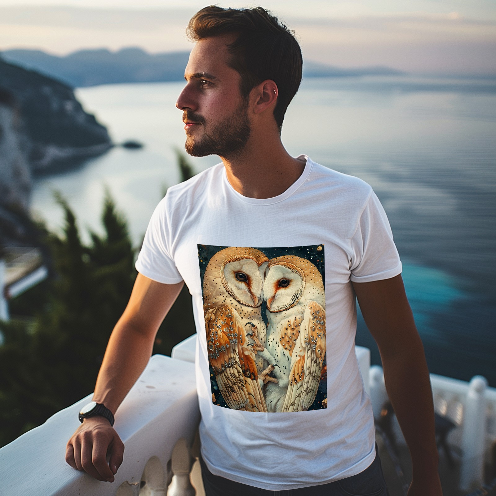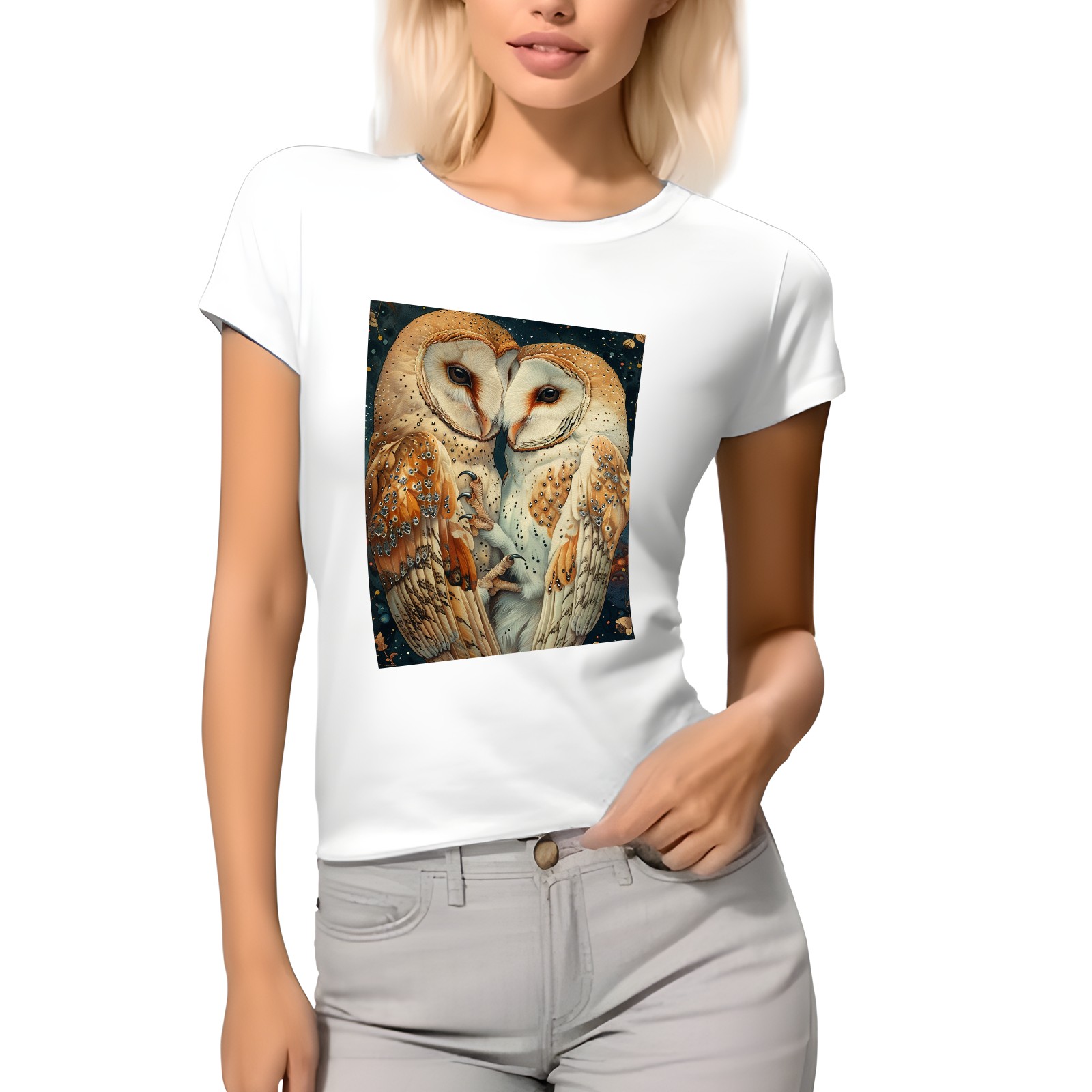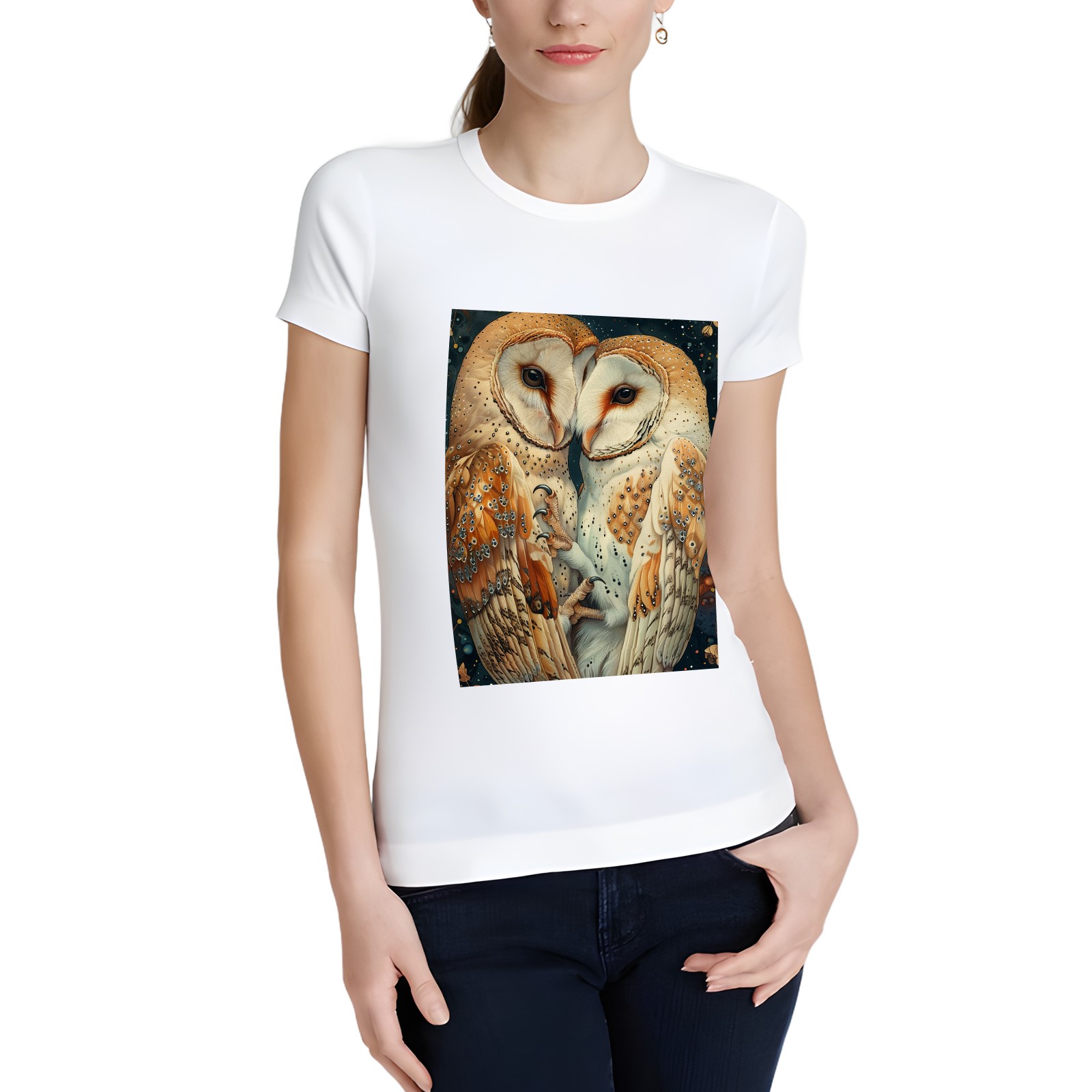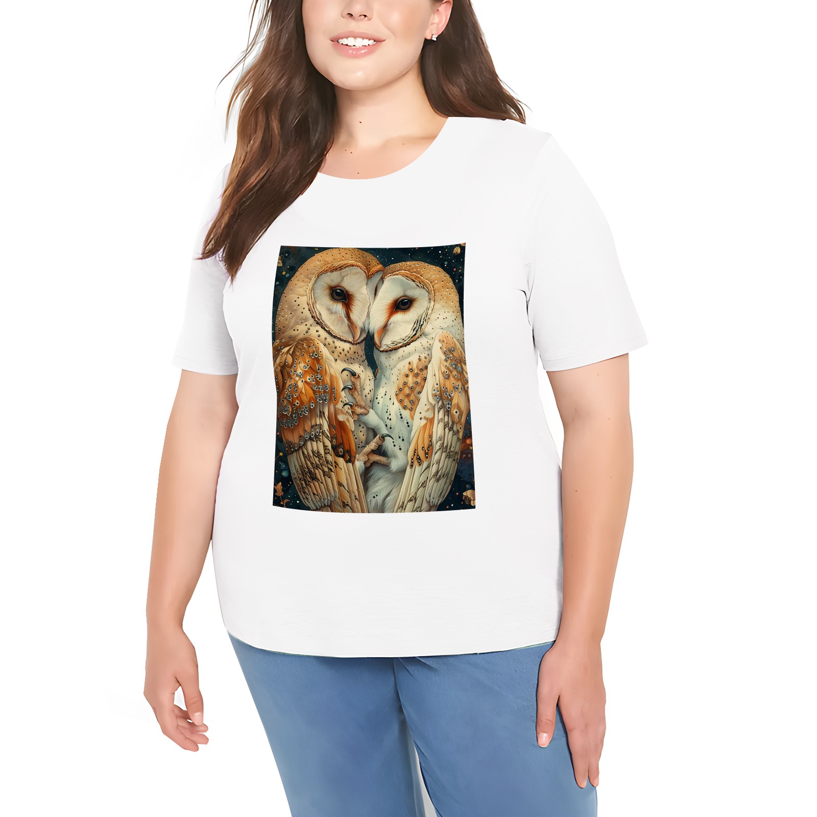 Basic Oversize Tees For WomenOwl Loose Boyfriend Shirts Casual Blouse round neck