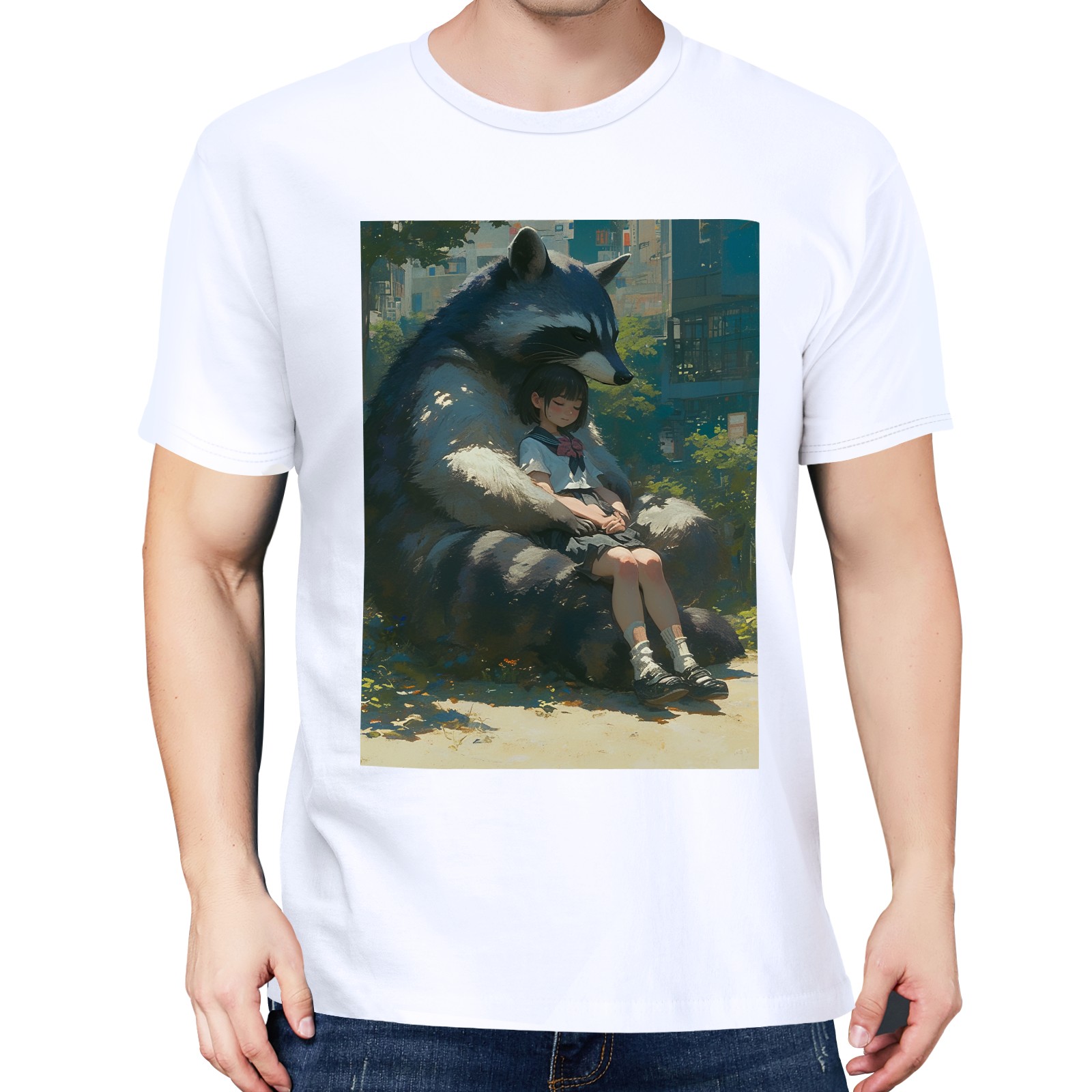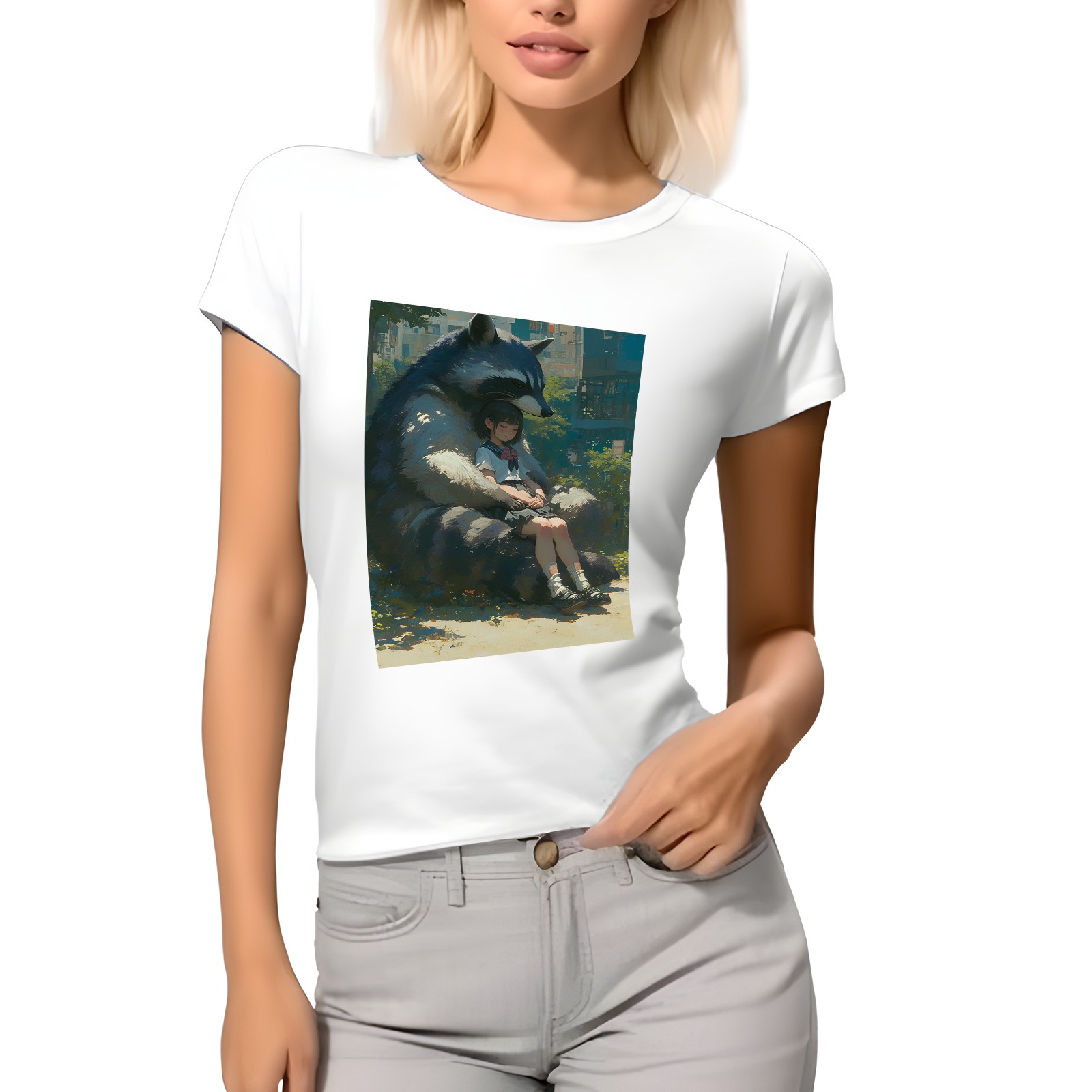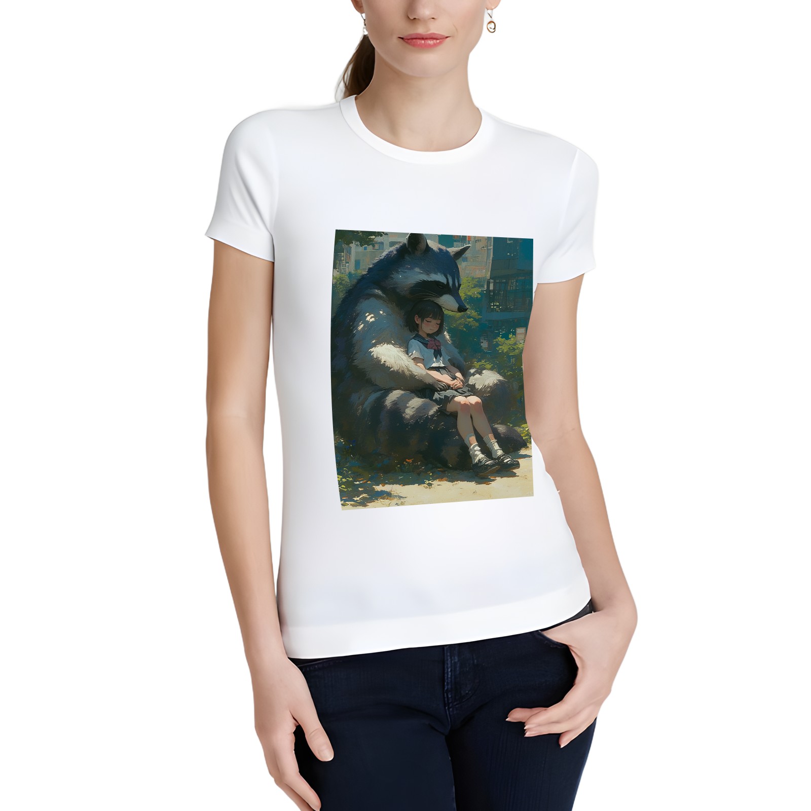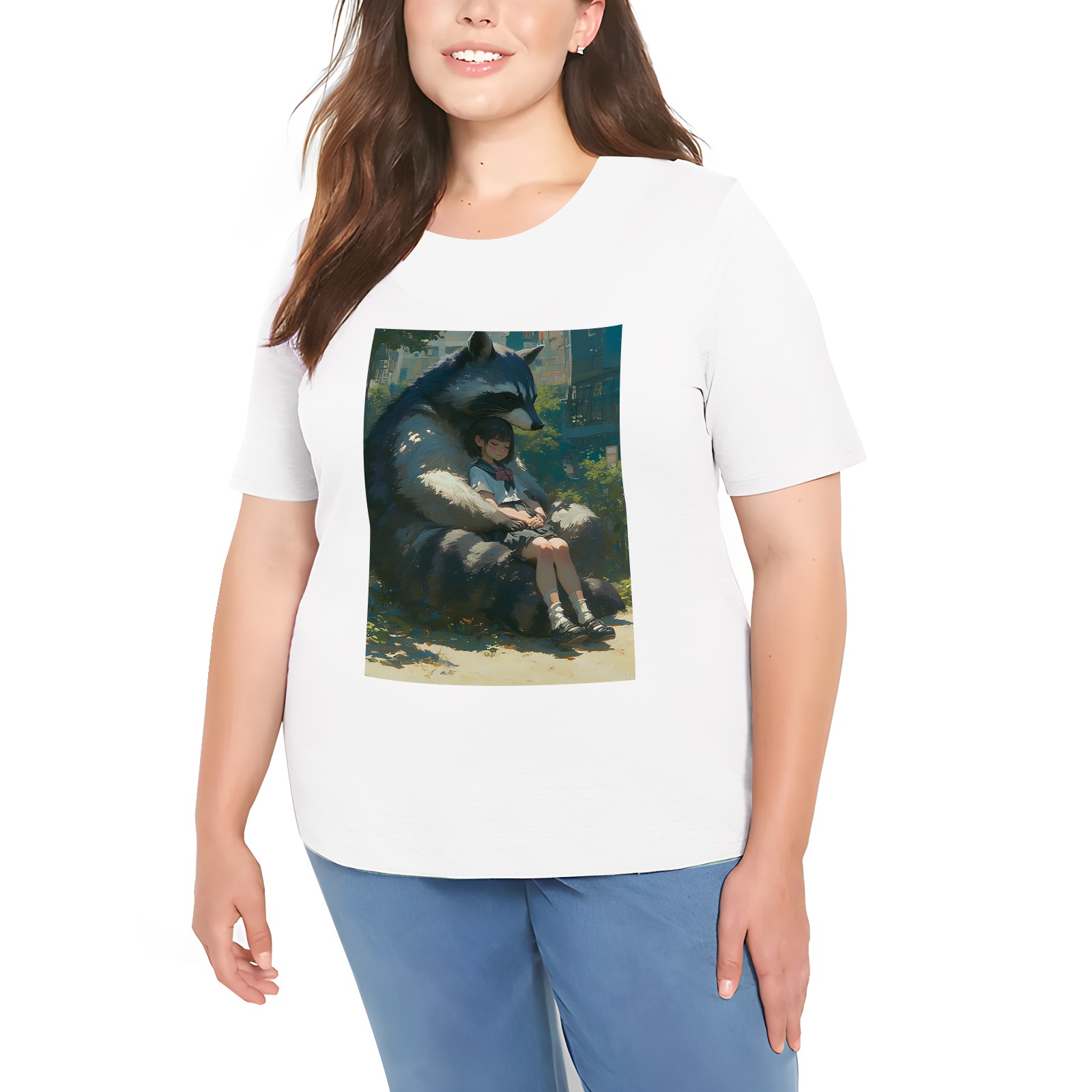 Basic Oversize Tees For WomenRaccoon Loose Boyfriend Shirts Casual Blouse round neck