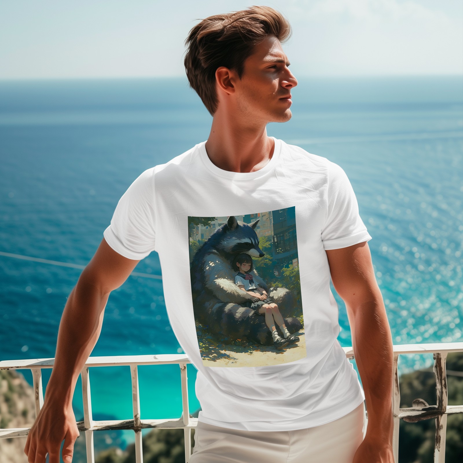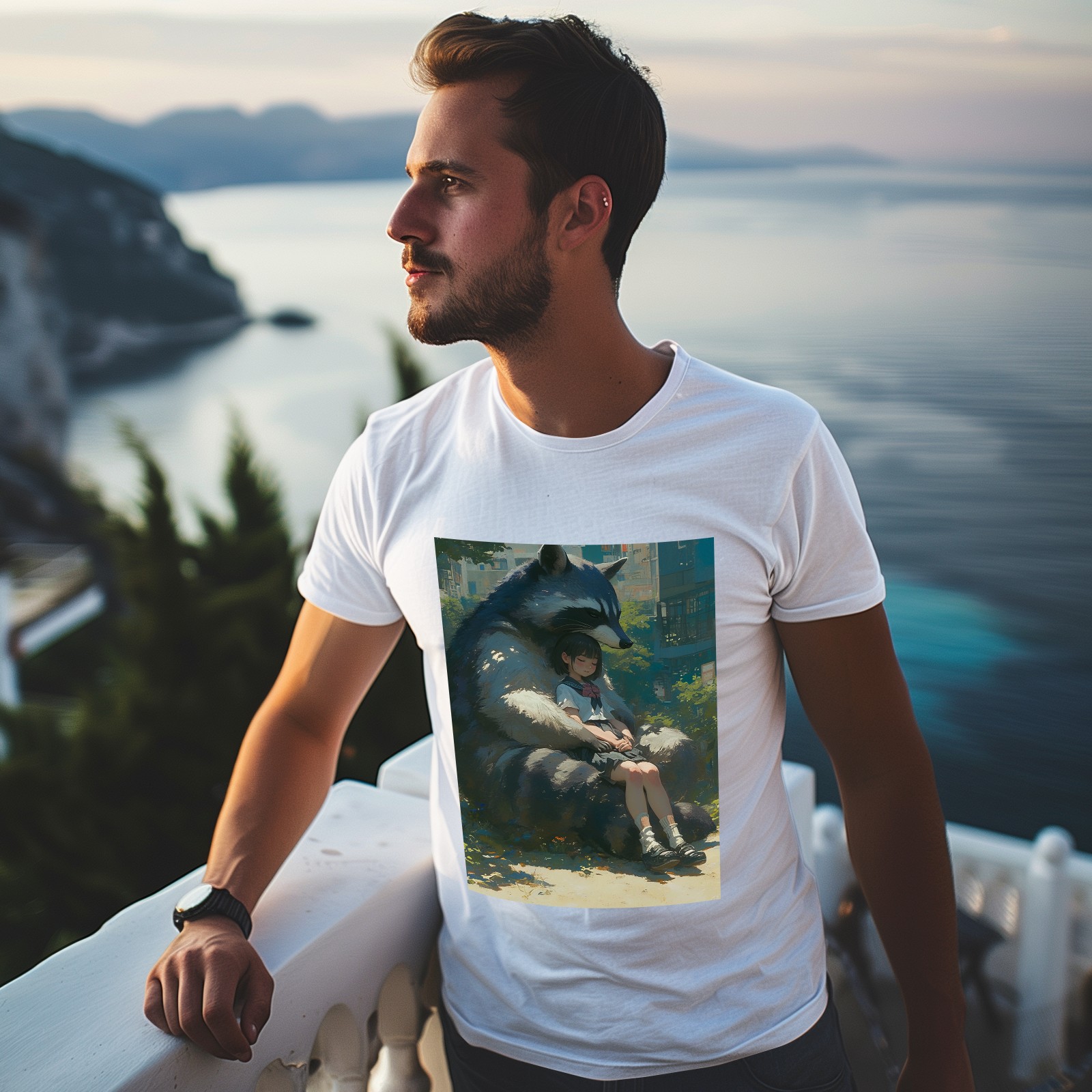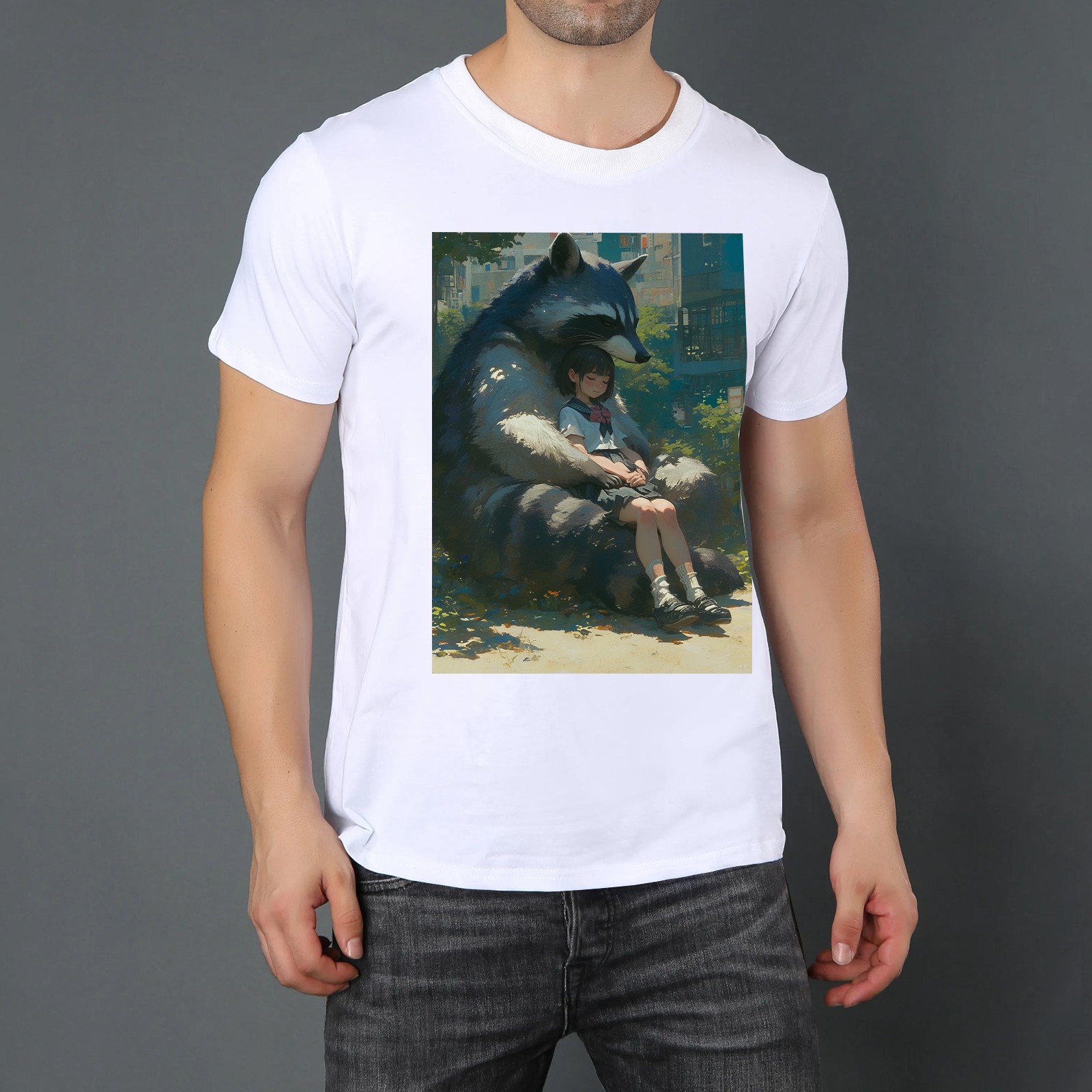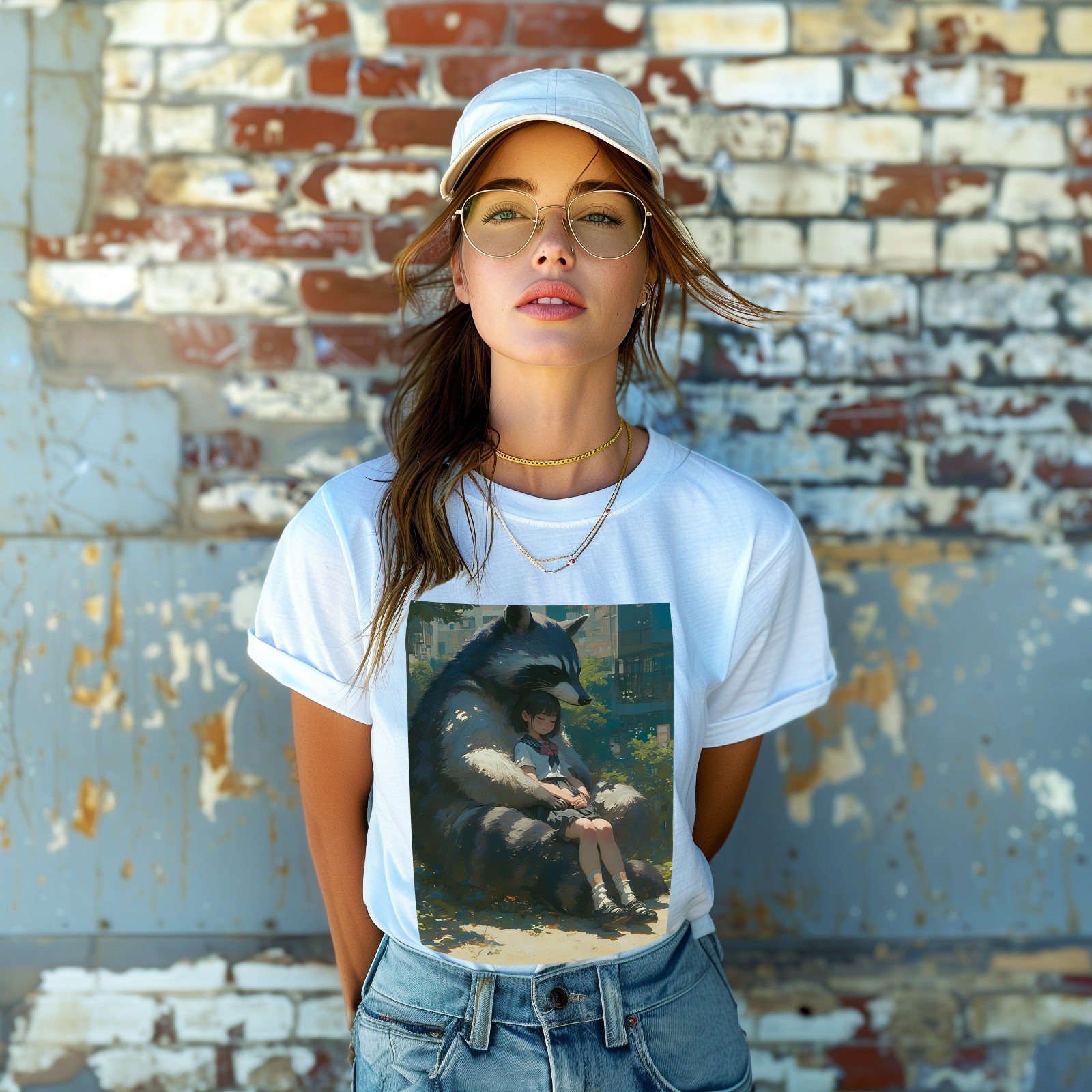 Basic Oversize Tees For WomenRaccoon Loose Boyfriend Shirts Casual Blouse round neck