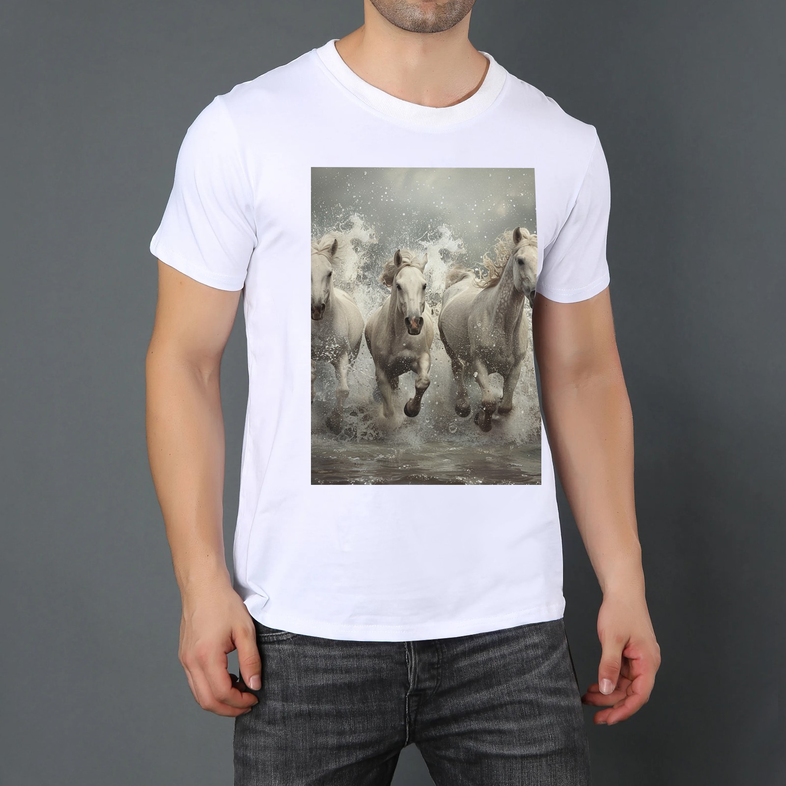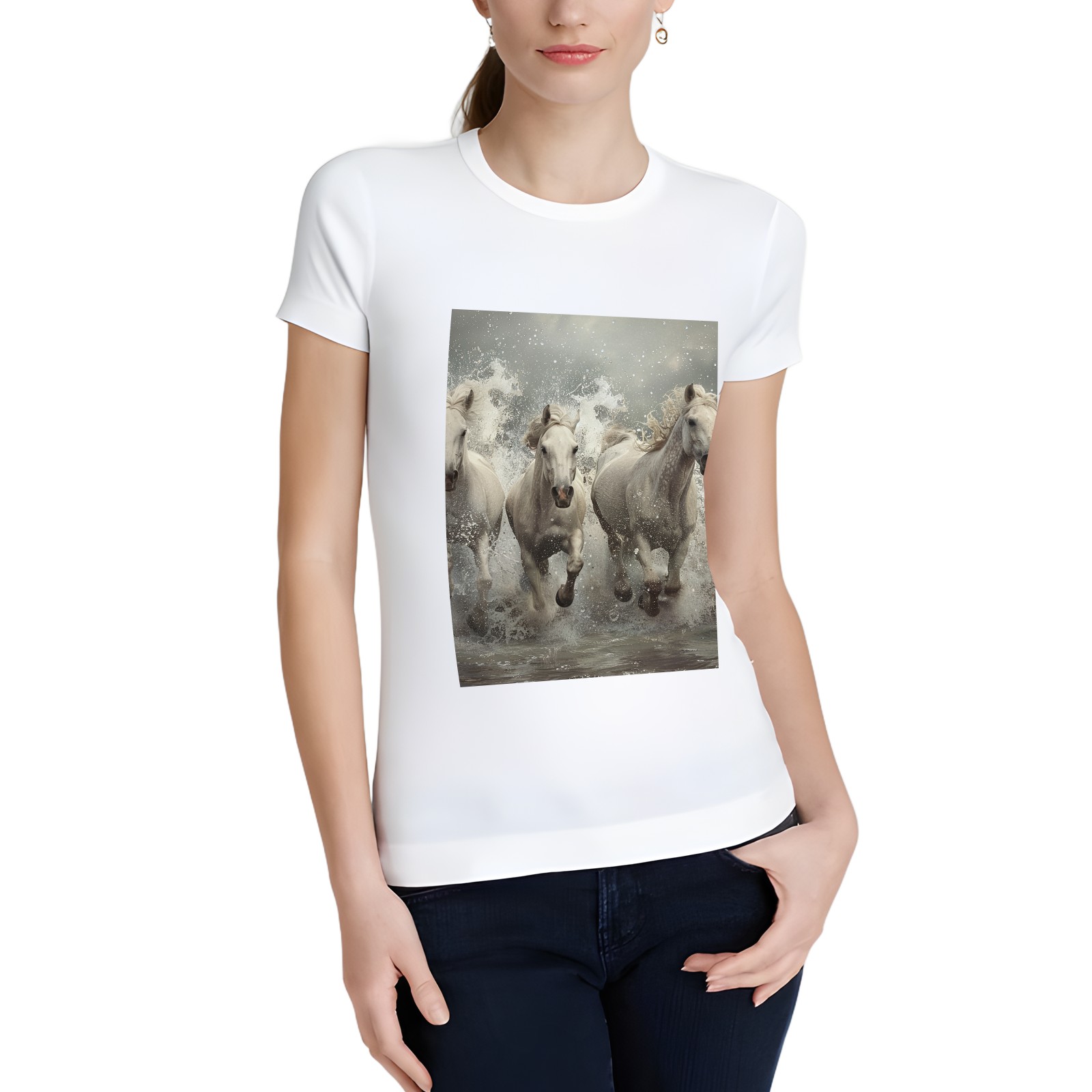 Basic Oversize Tees For WomenHorse Loose Boyfriend Shirts Casual Blouse round neck