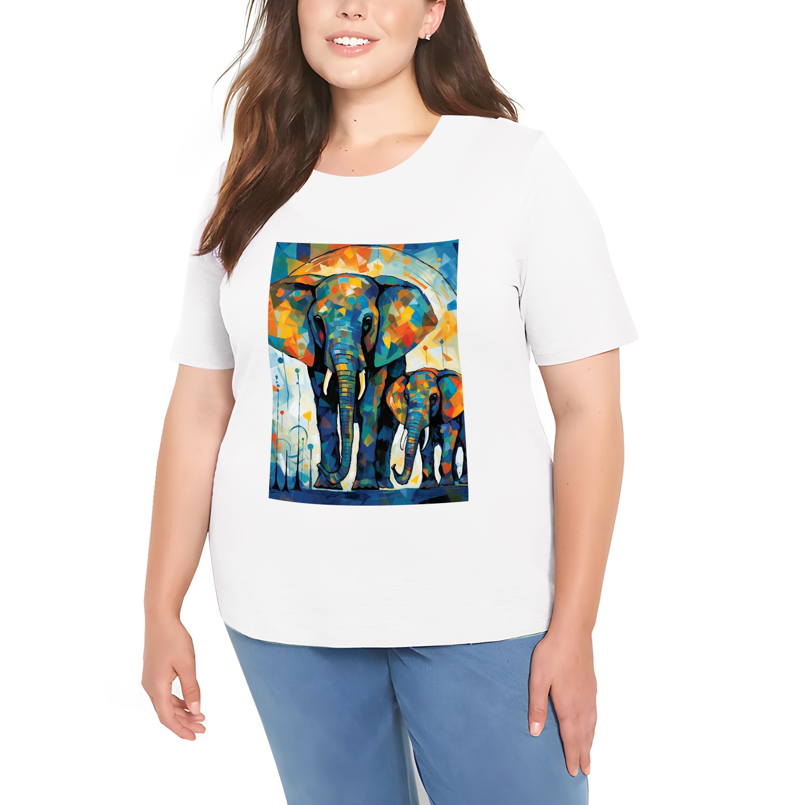 Basic Oversize Tees For WomenElephant Loose Boyfriend Shirts Casual Blouse round neck