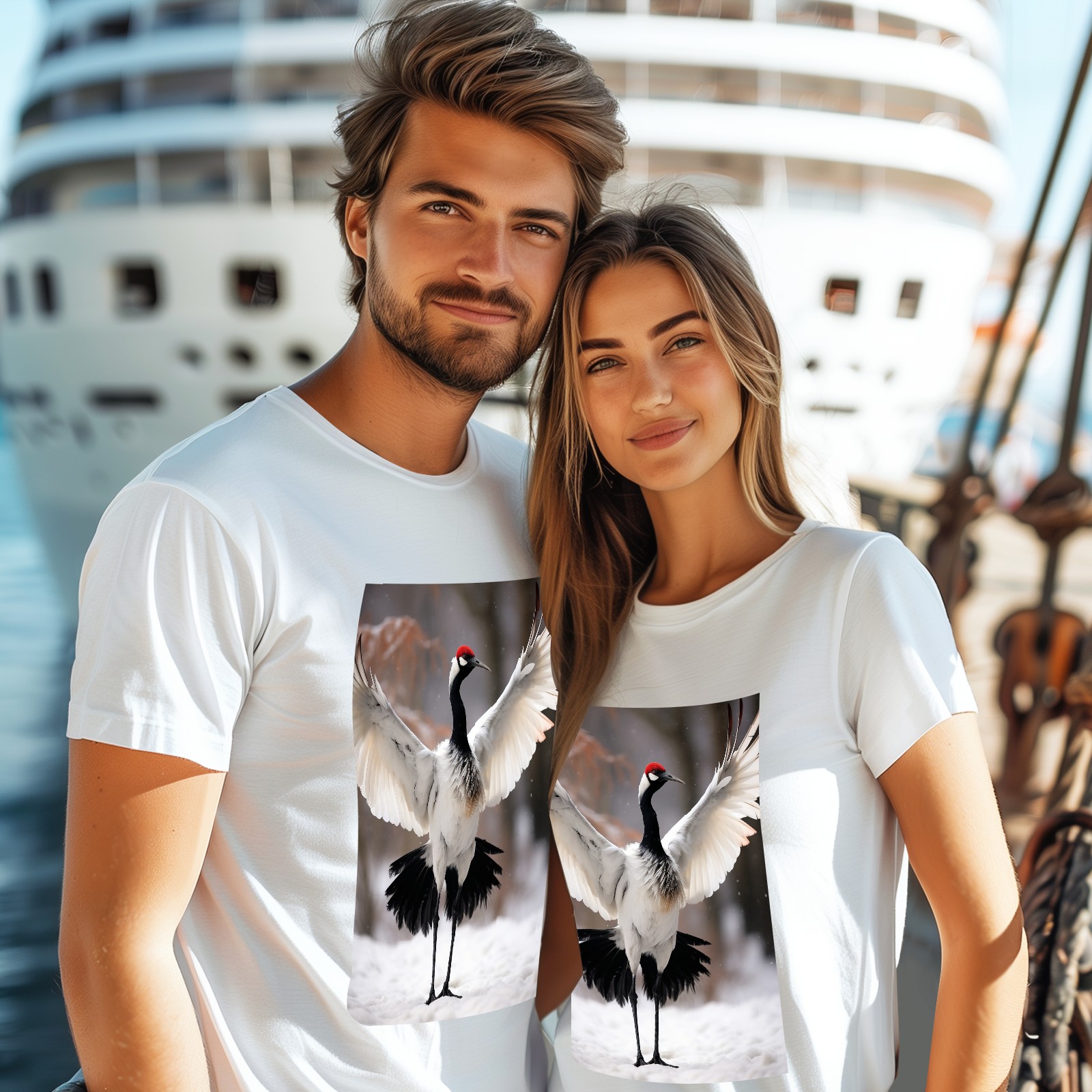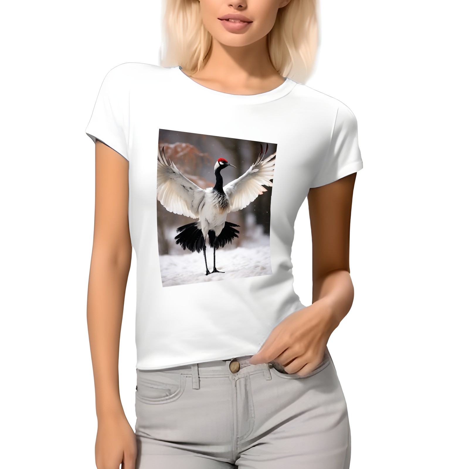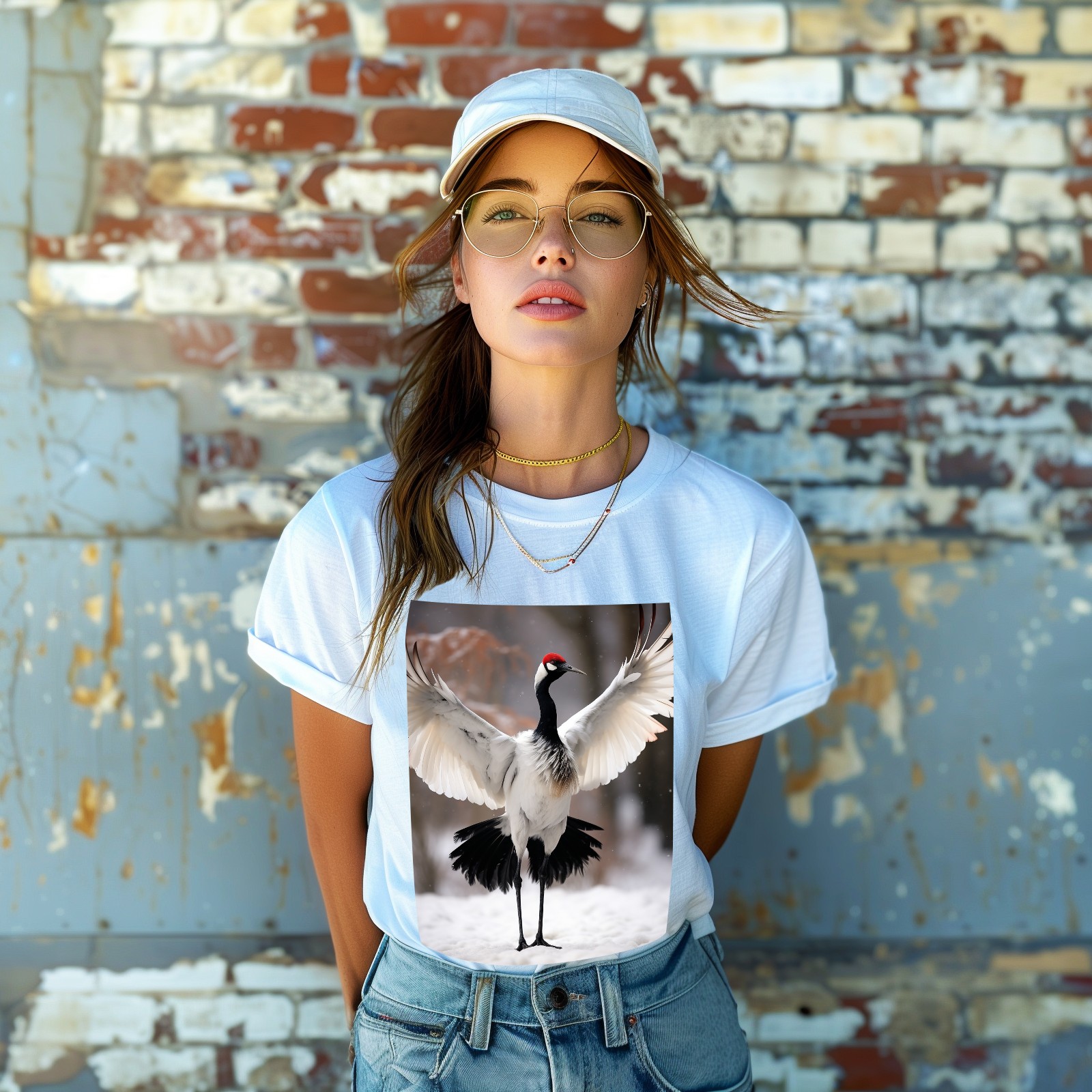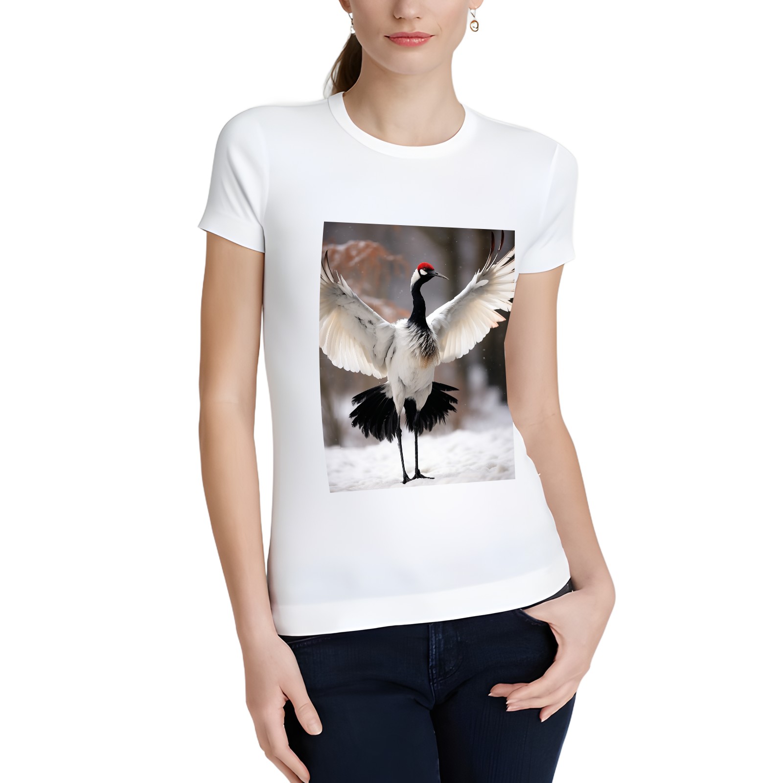 Basic Oversize Tees For WomenCrane Loose Boyfriend Shirts Casual Blouse round neck