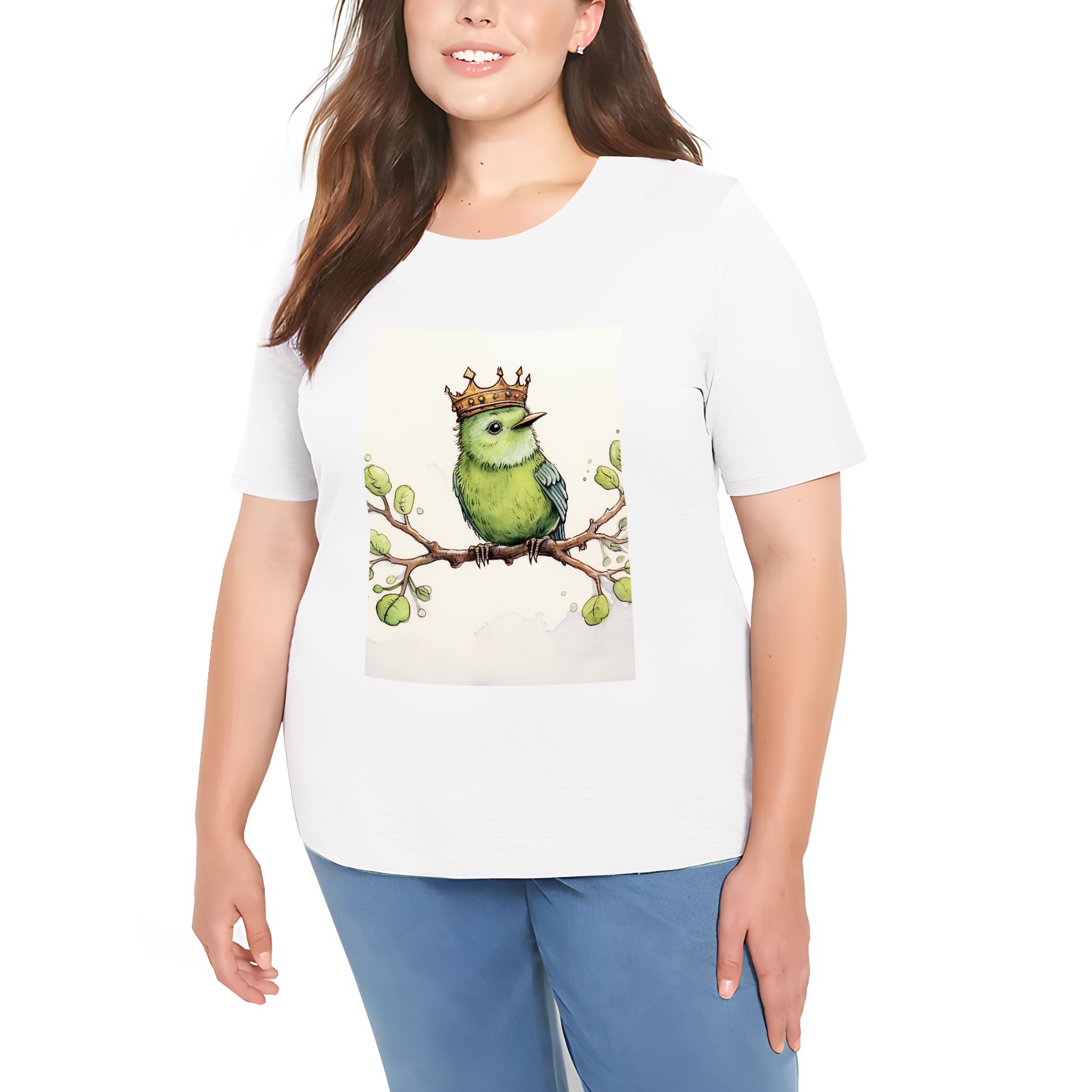 Basic Oversize Tees For WomenParrot Loose Boyfriend Shirts Casual Blouse round neck