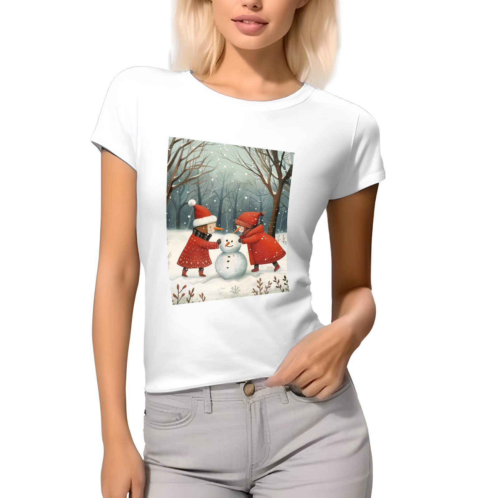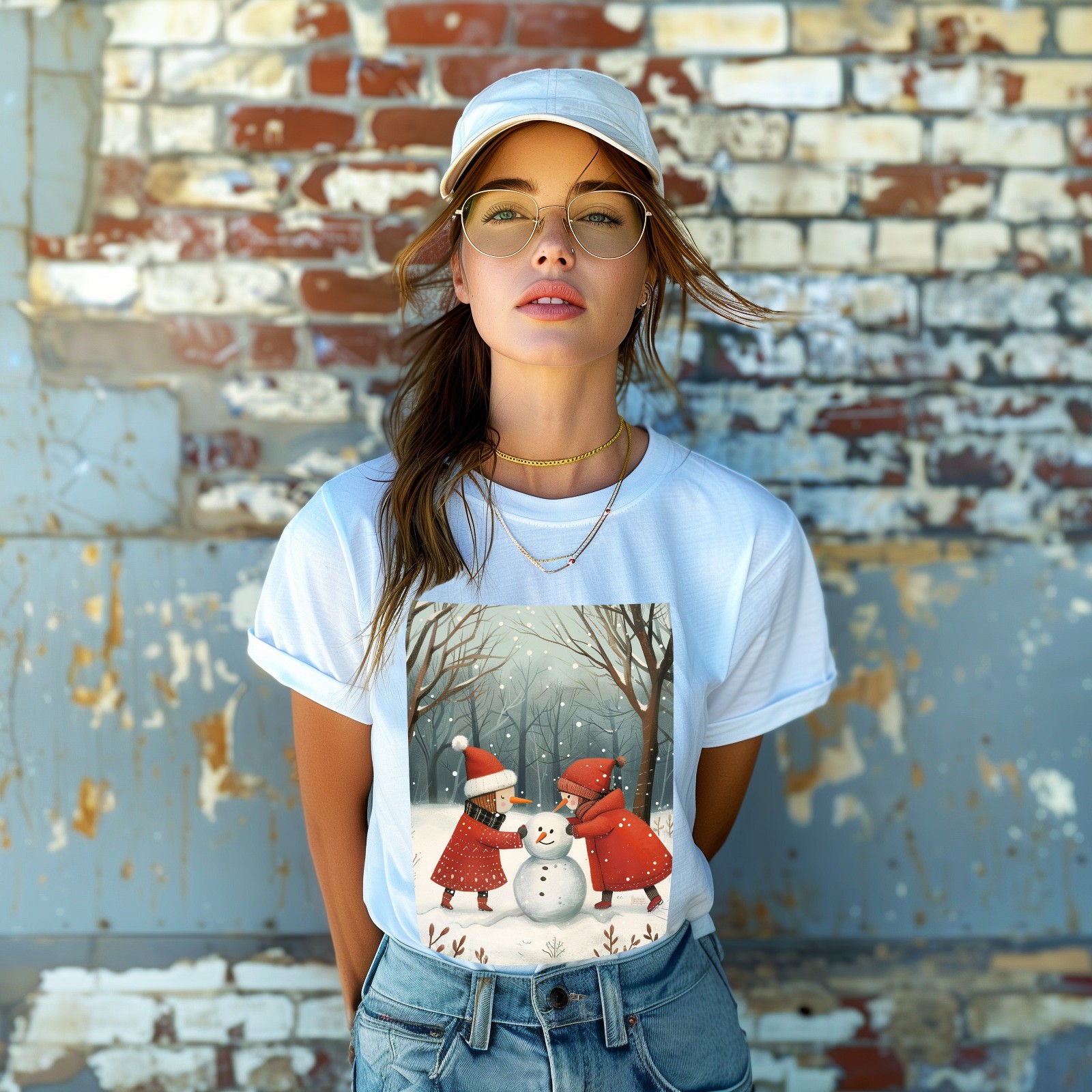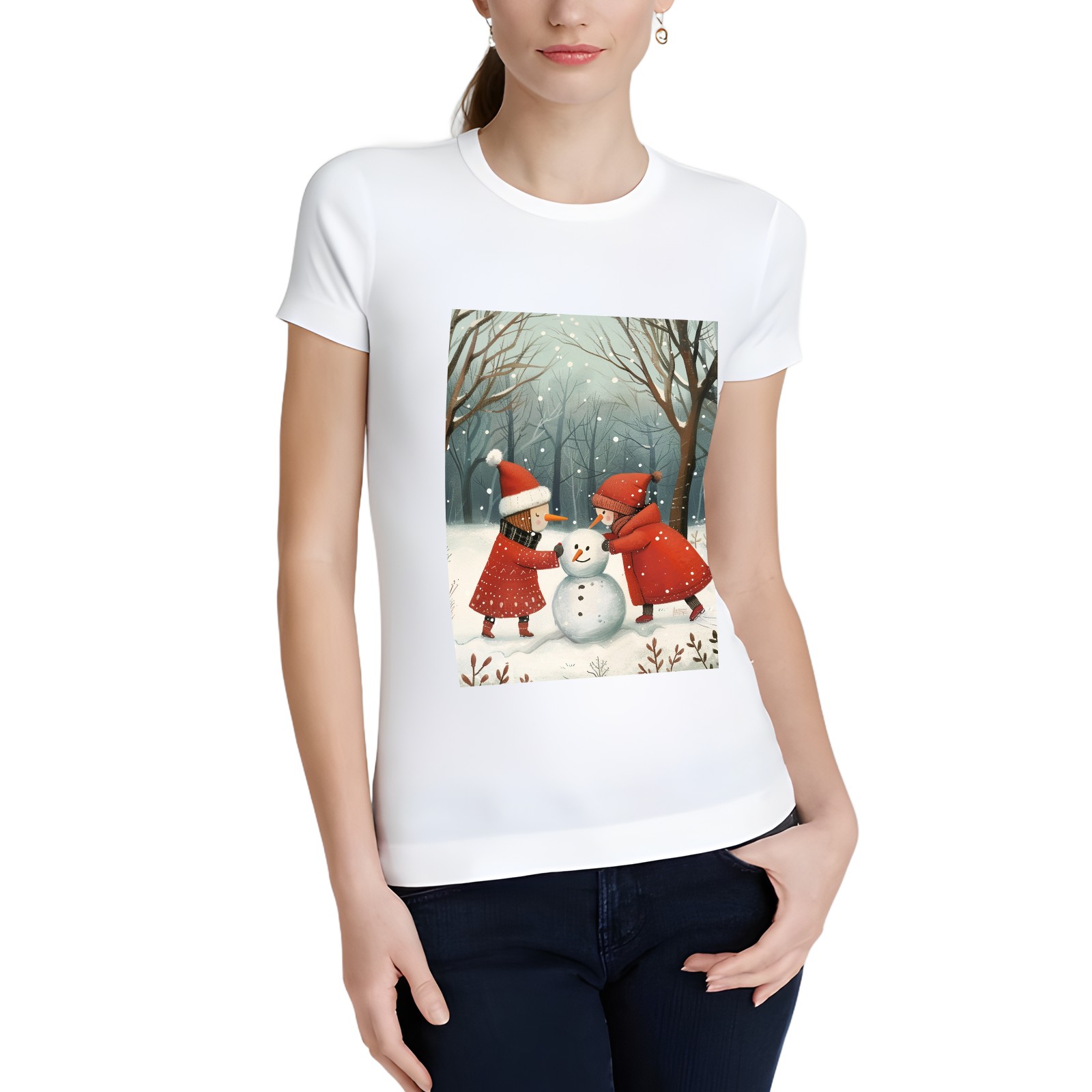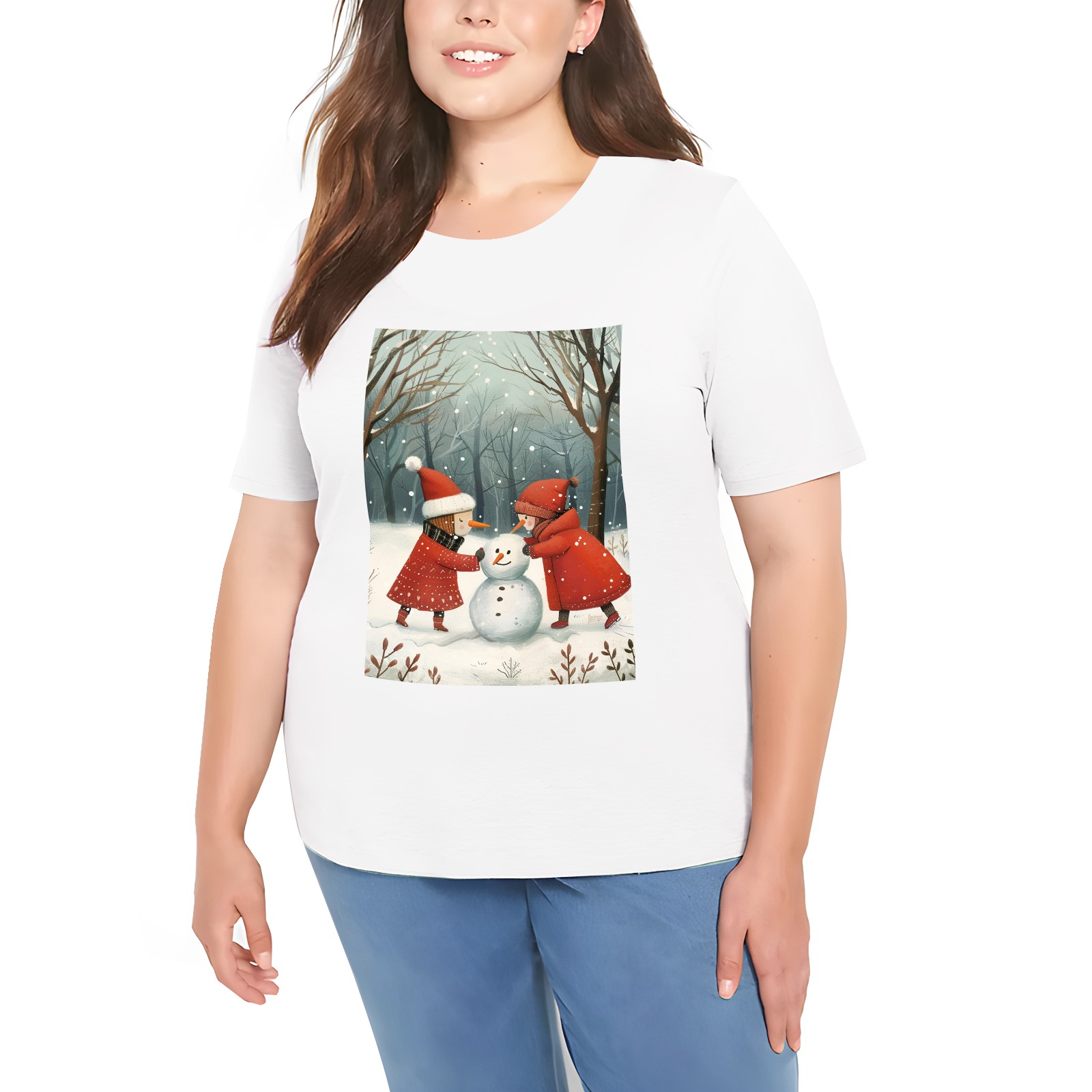 Basic Oversize Tees For WomenSnowman Loose Boyfriend Shirts Casual Blouse round neck