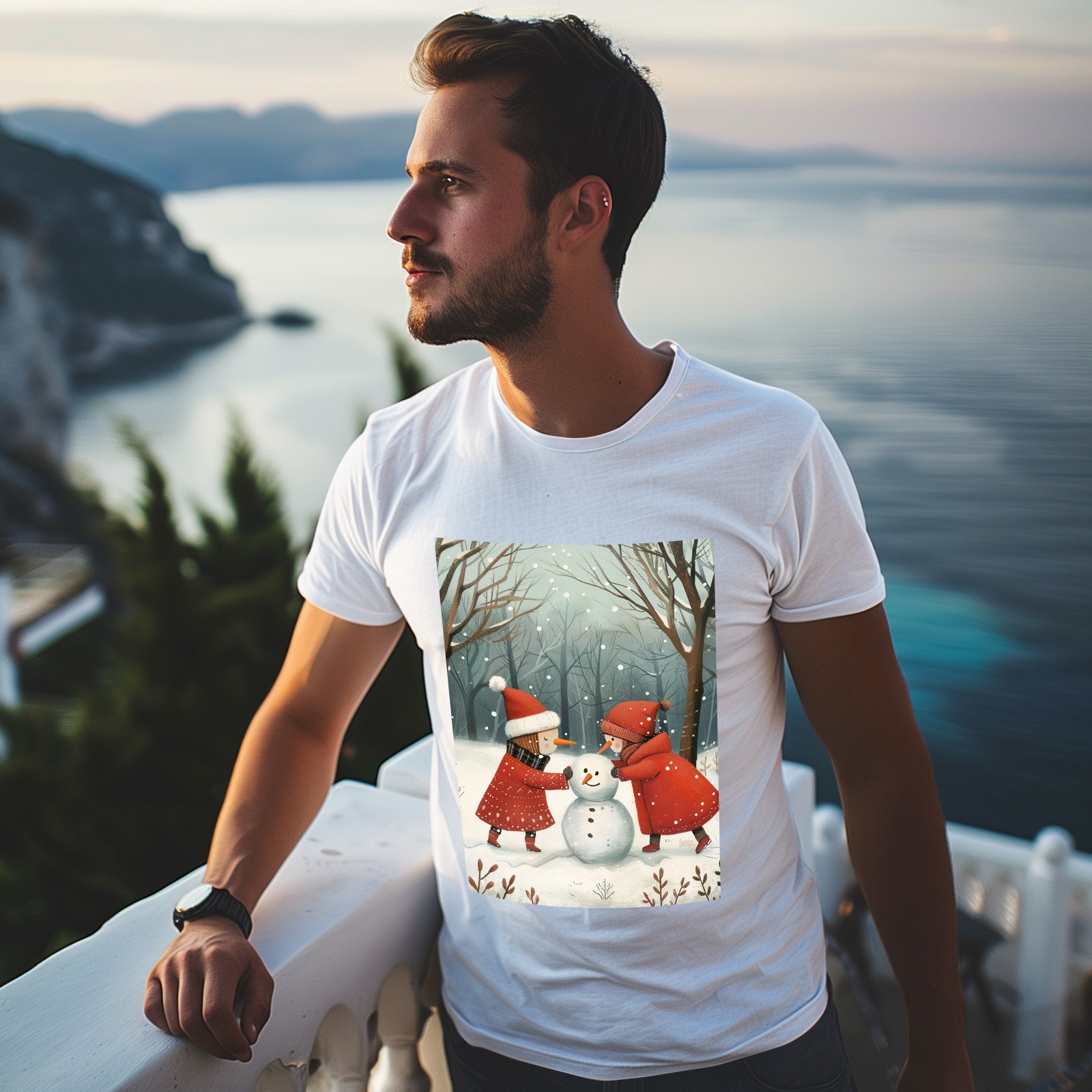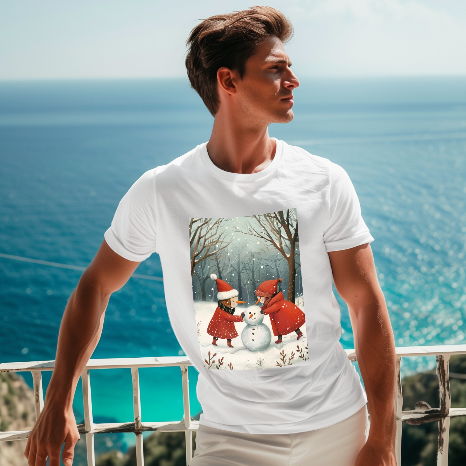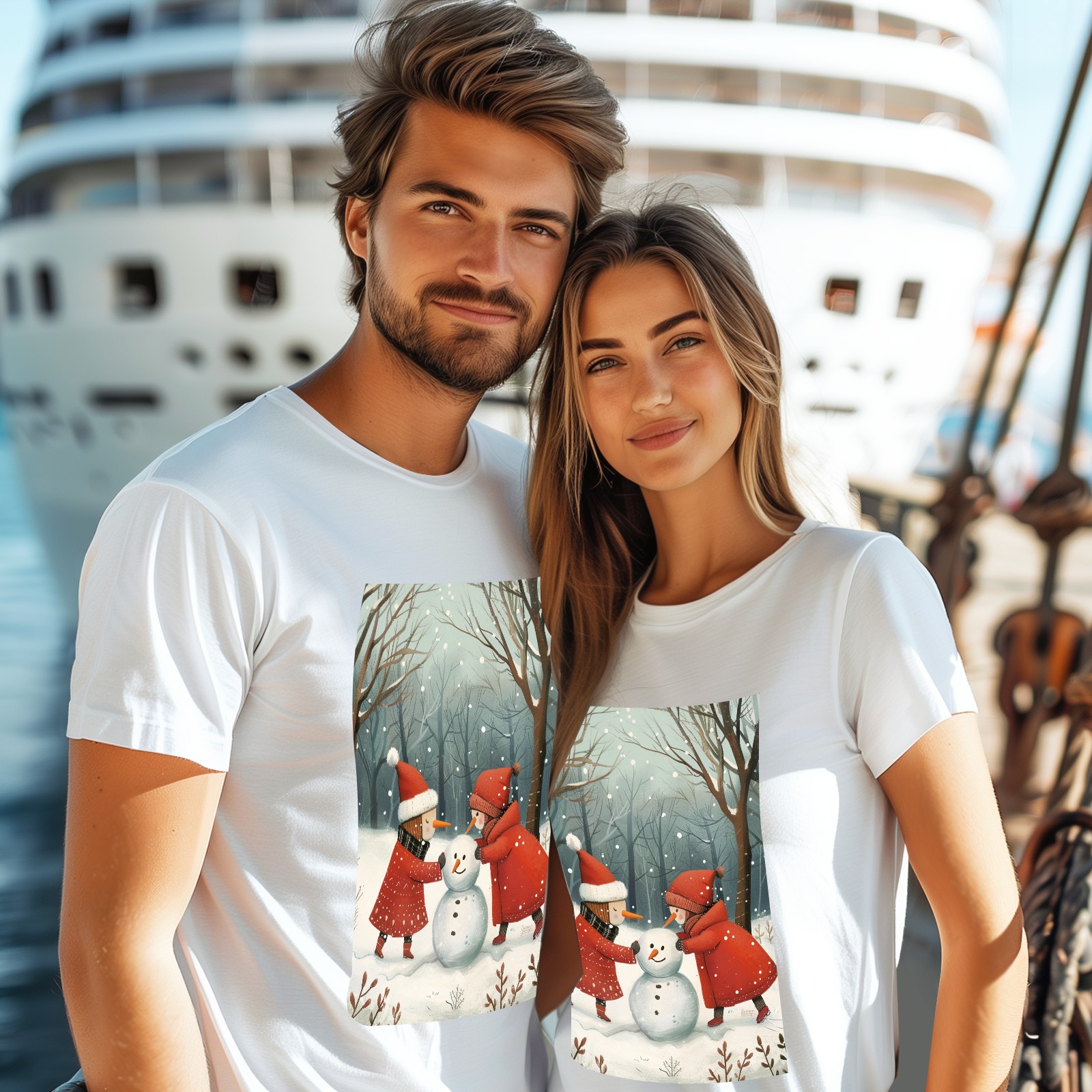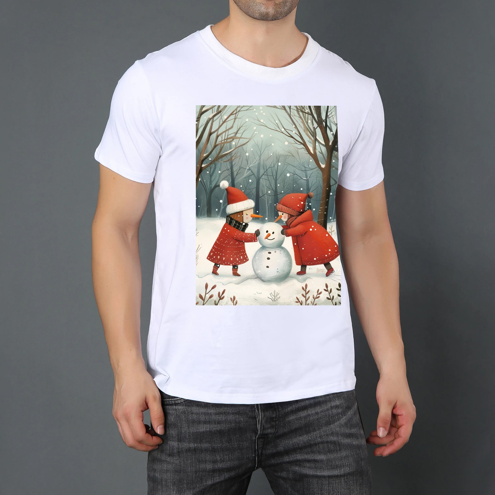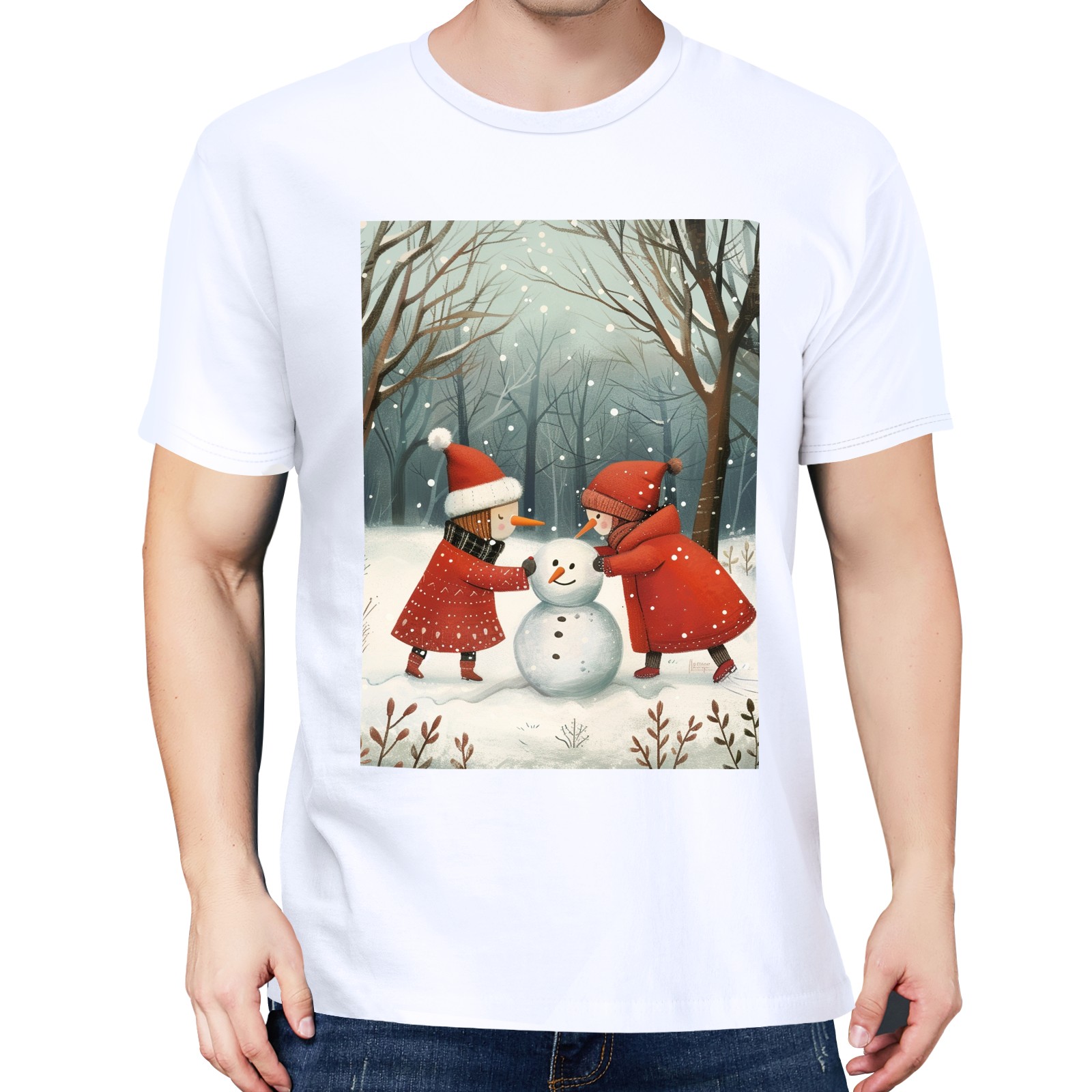 Basic Oversize Tees For WomenSnowman Loose Boyfriend Shirts Casual Blouse round neck