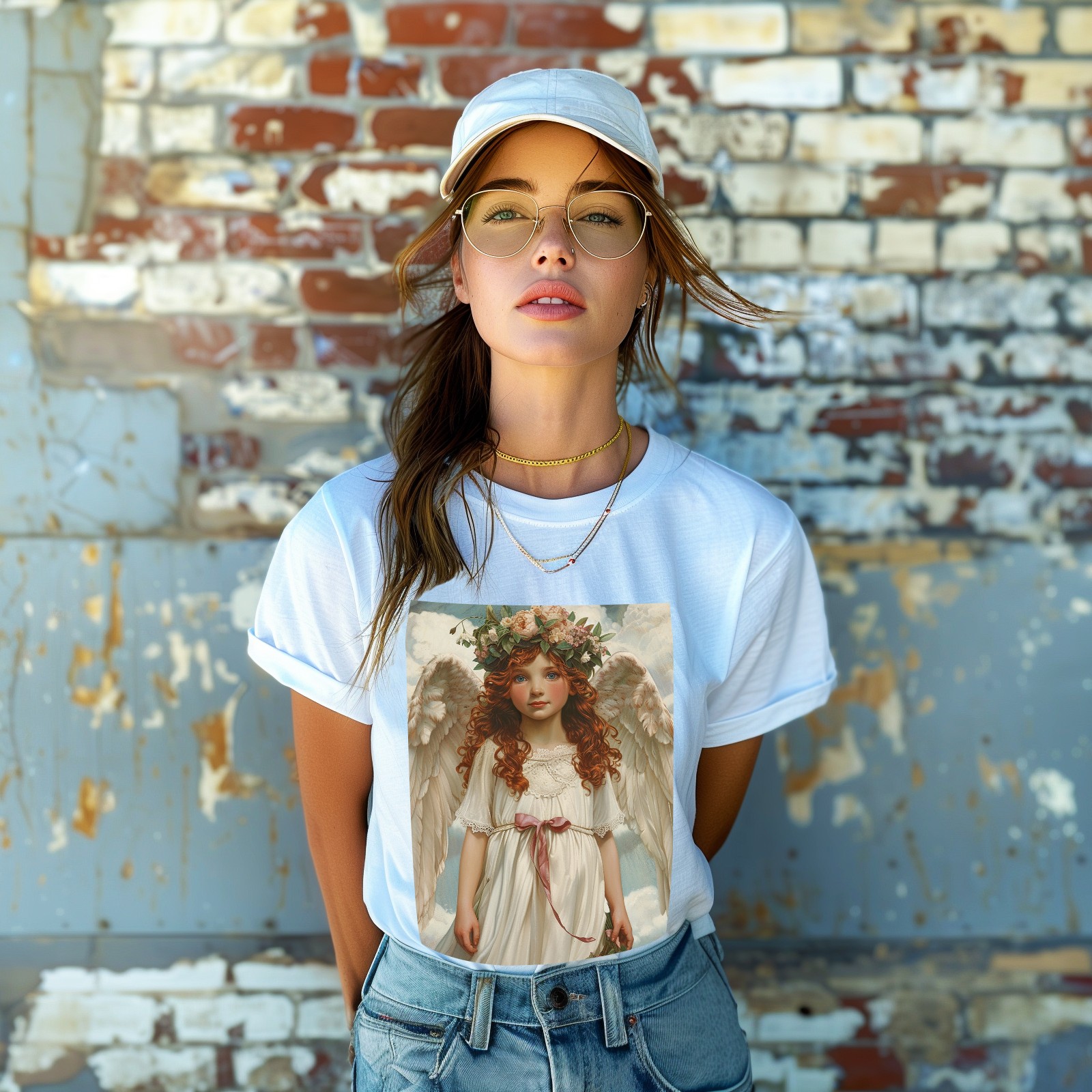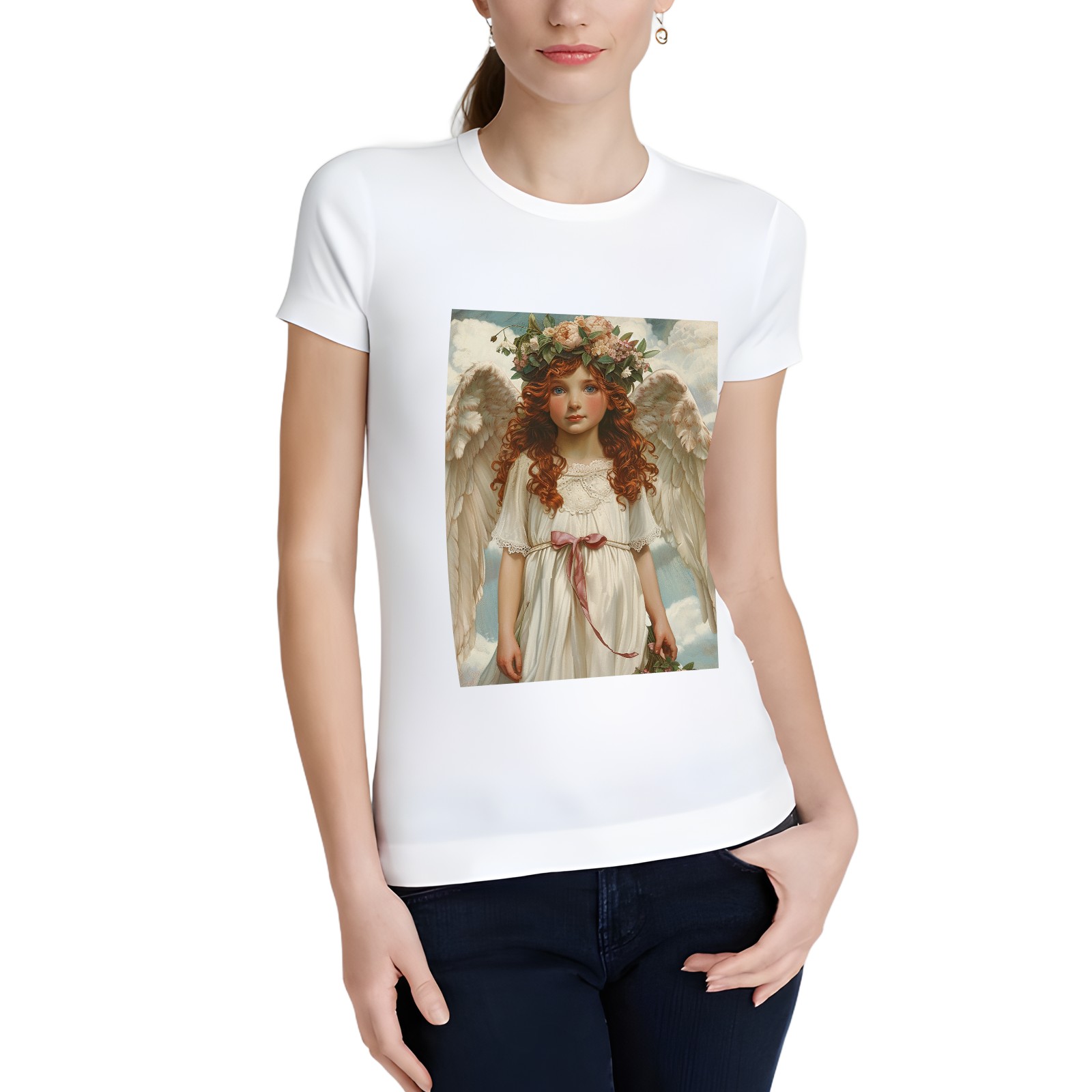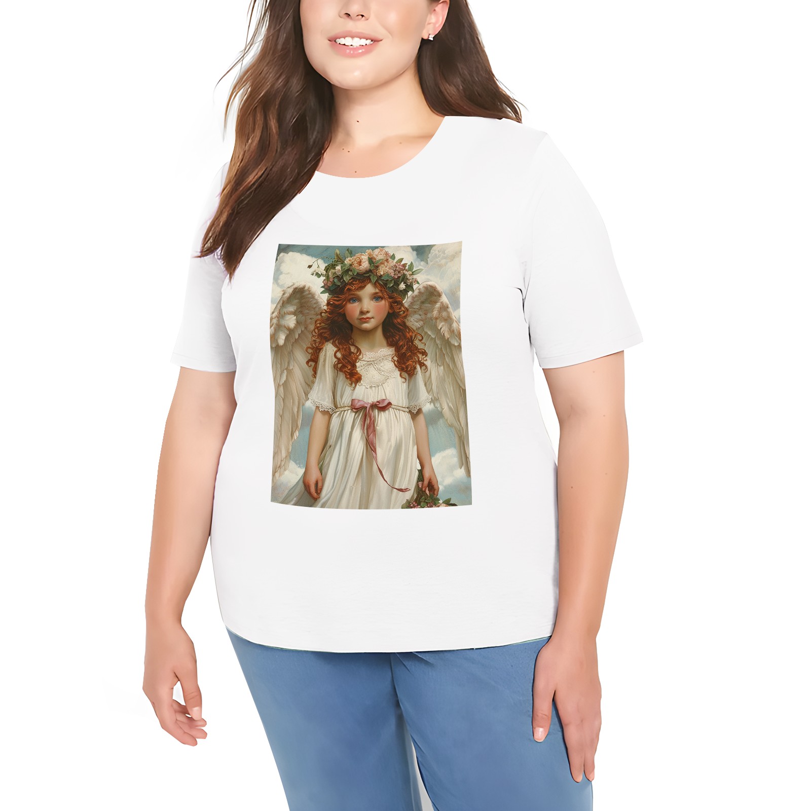 Basic Oversize Tees For WomenAngel Loose Boyfriend Shirts Casual Blouse round neck