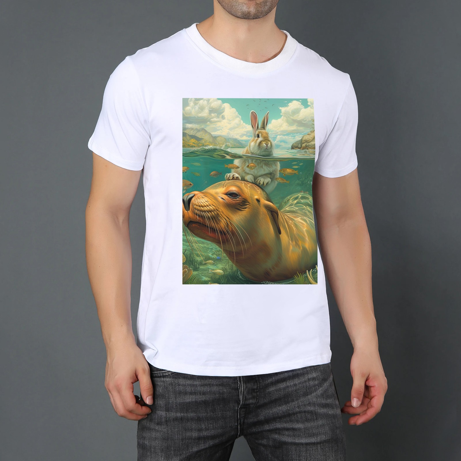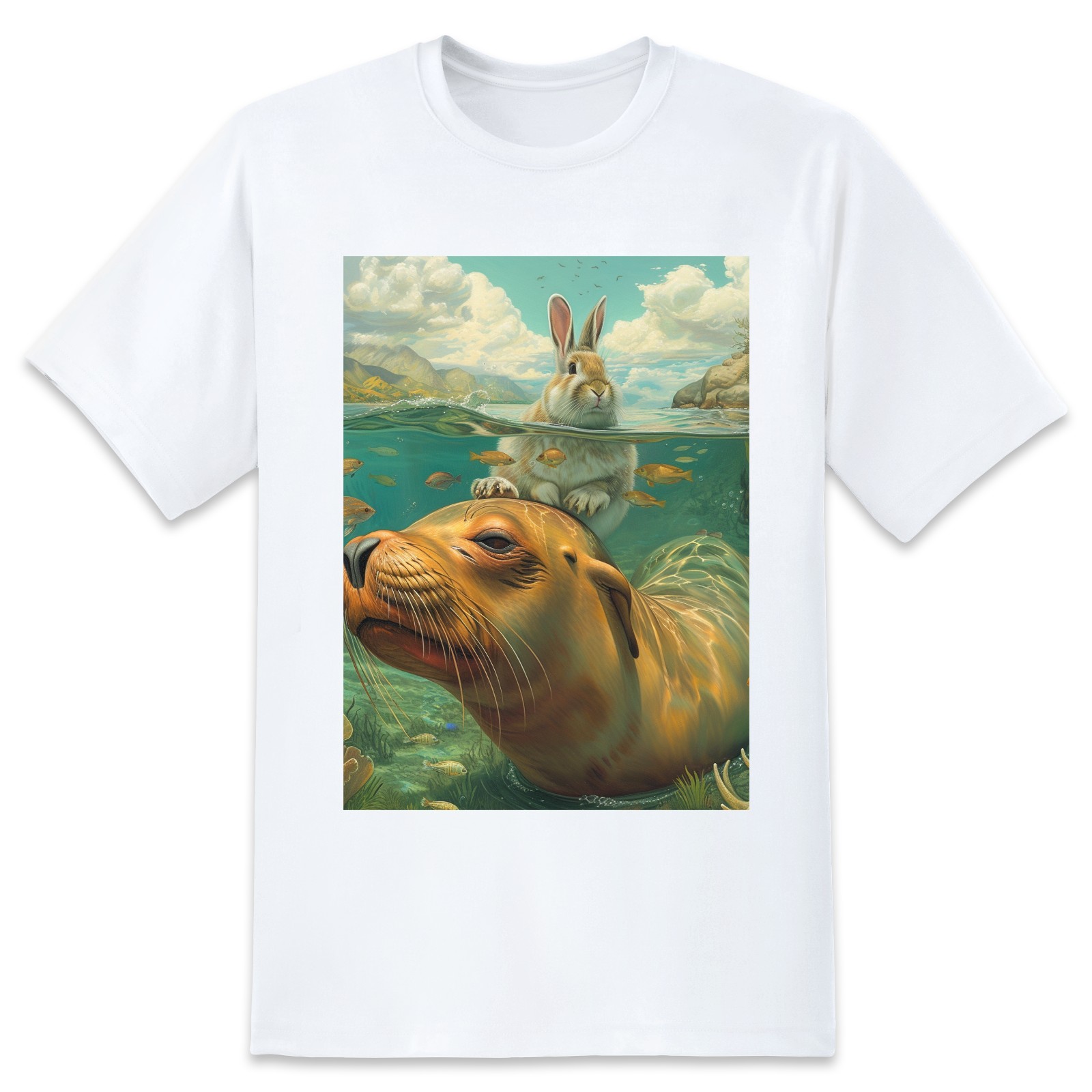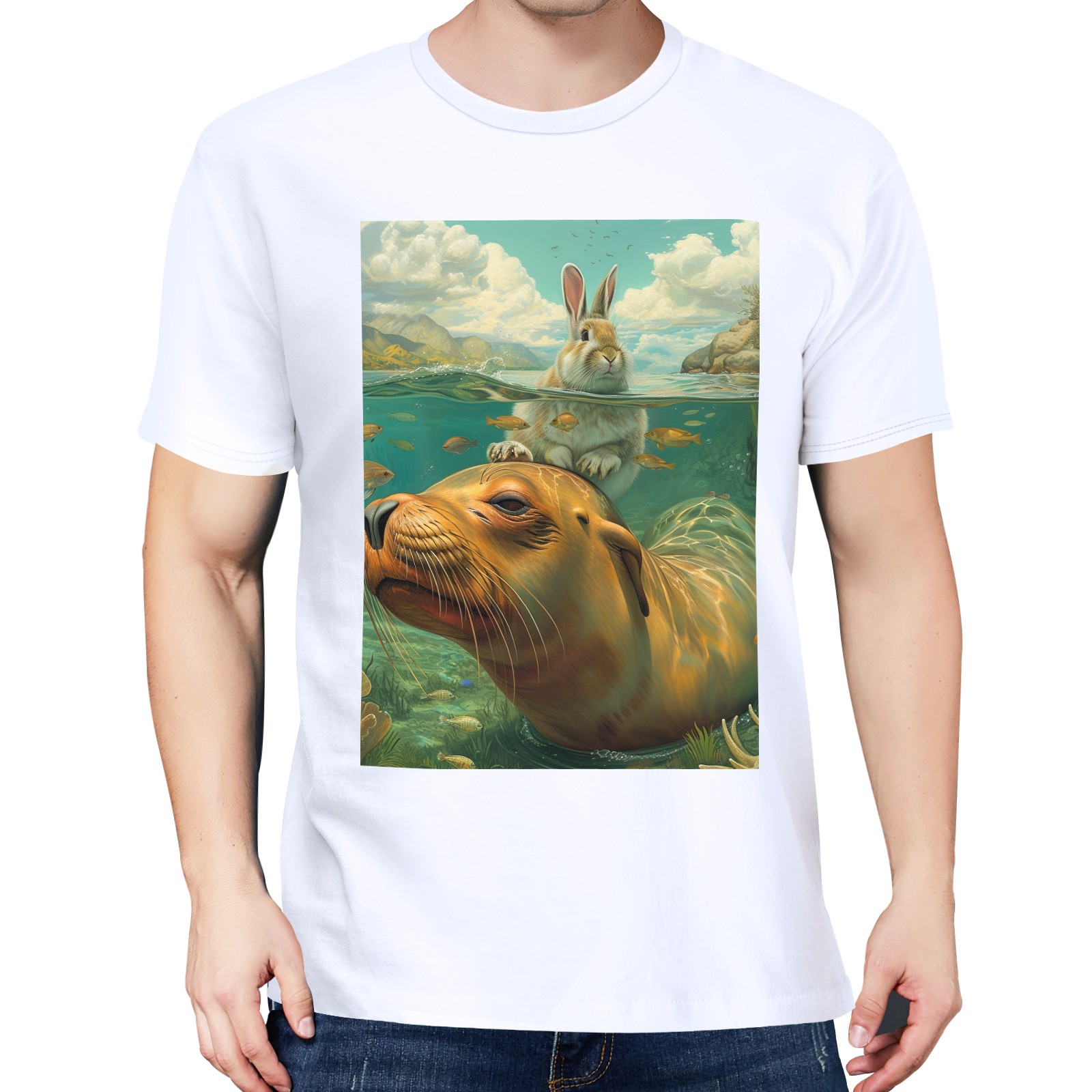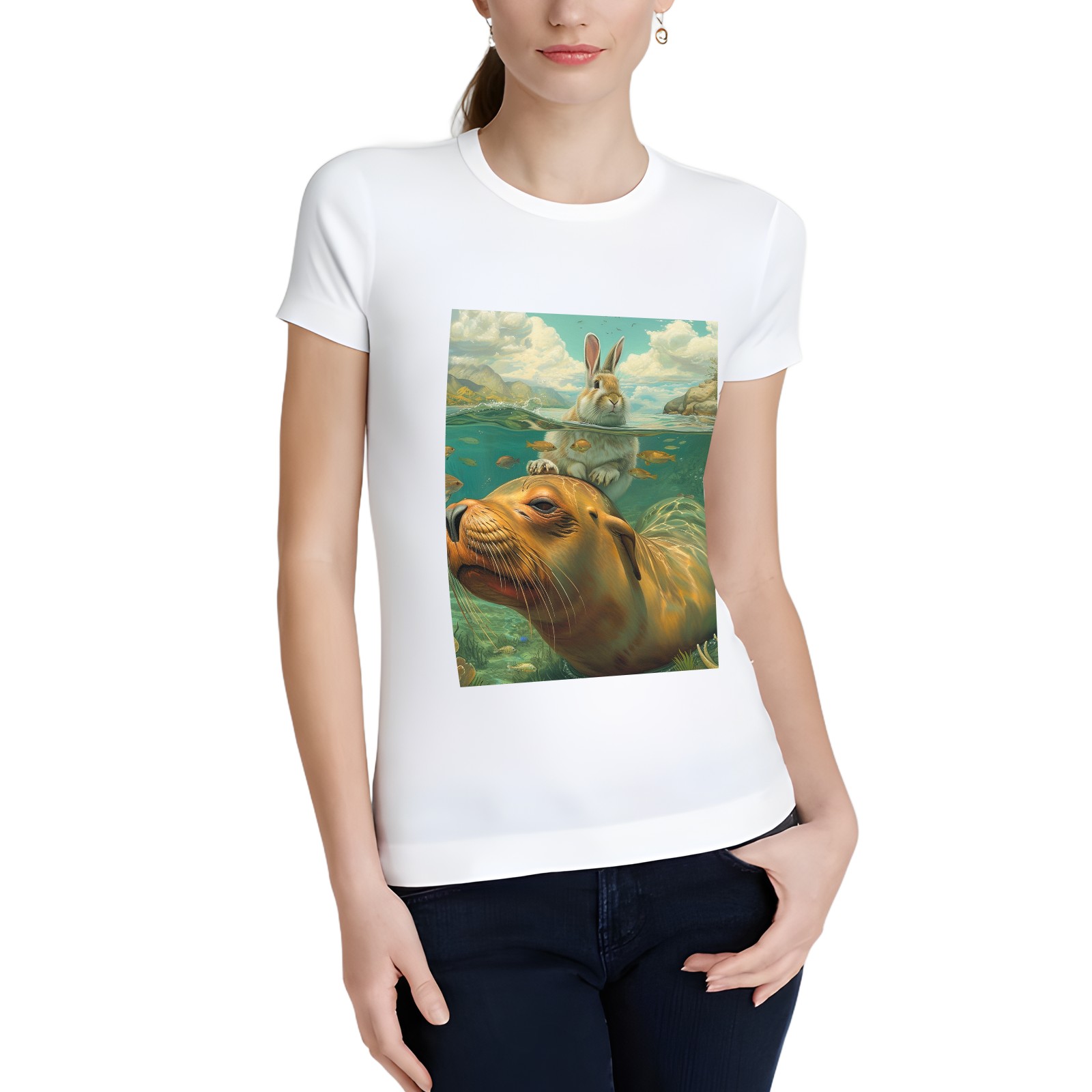 Basic Oversize Tees For WomenSea Lion Loose Boyfriend Shirts Casual Blouse round neck