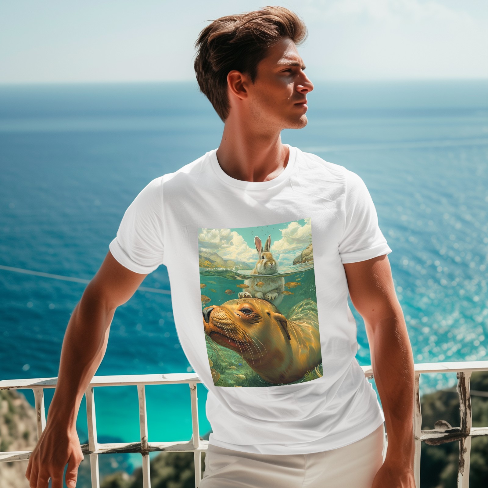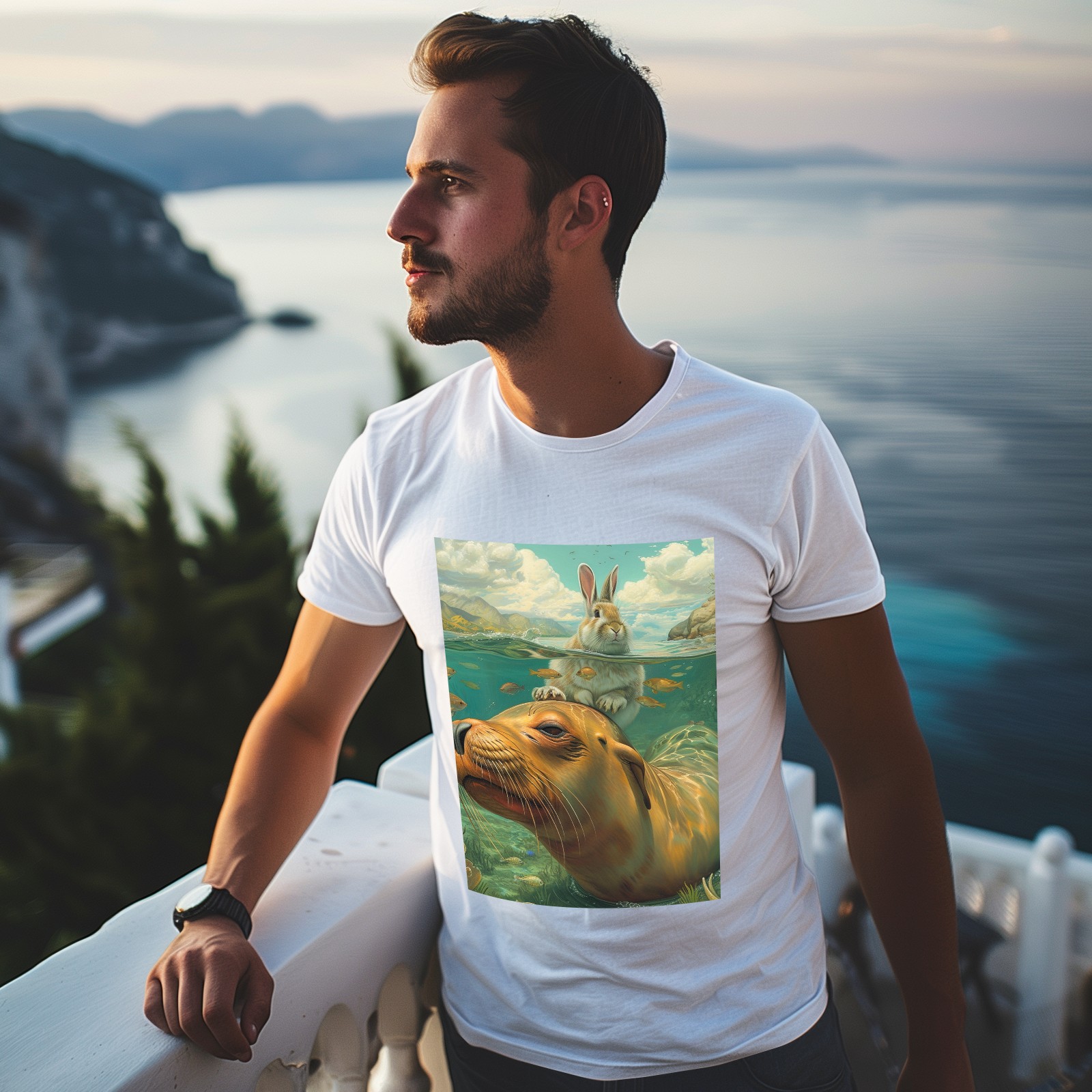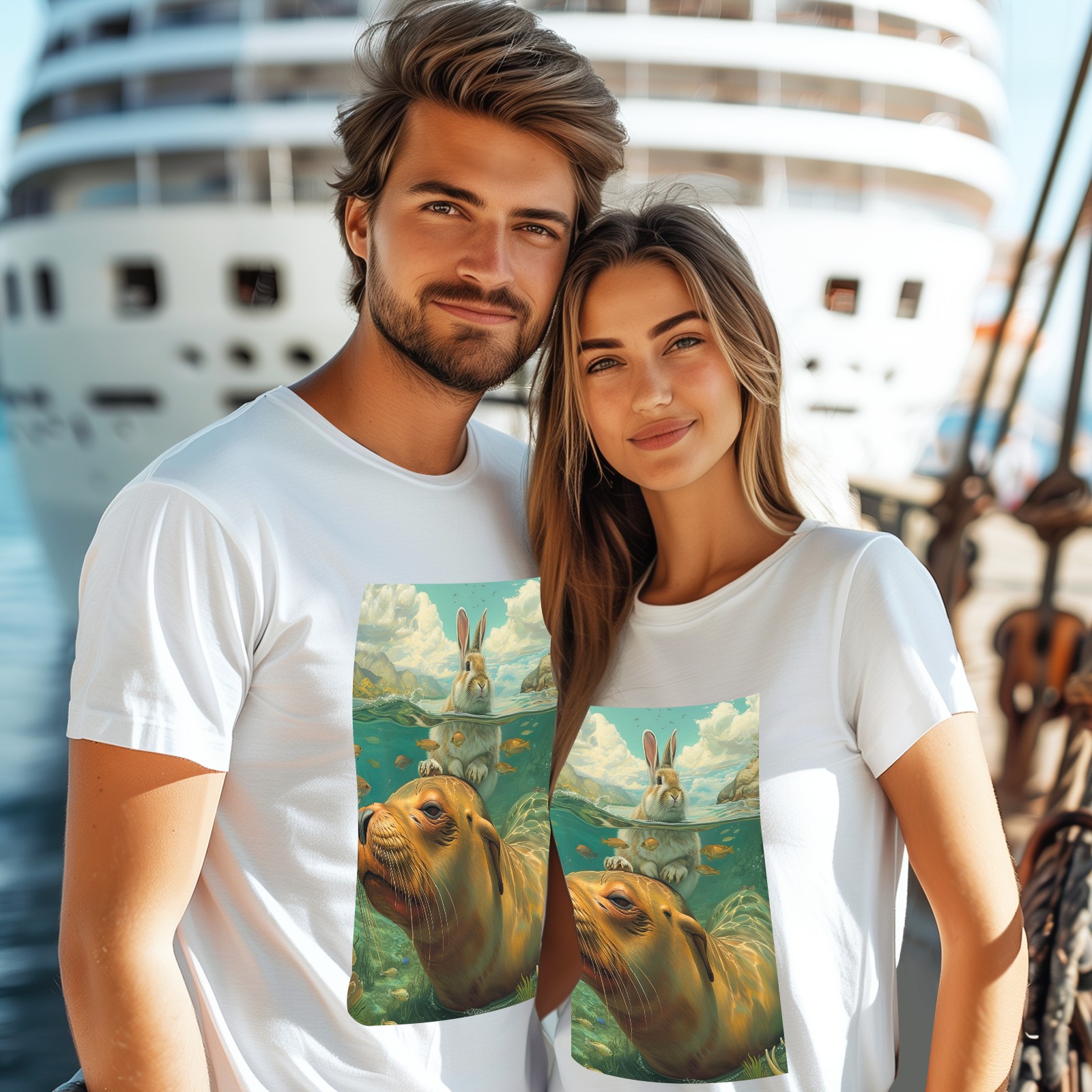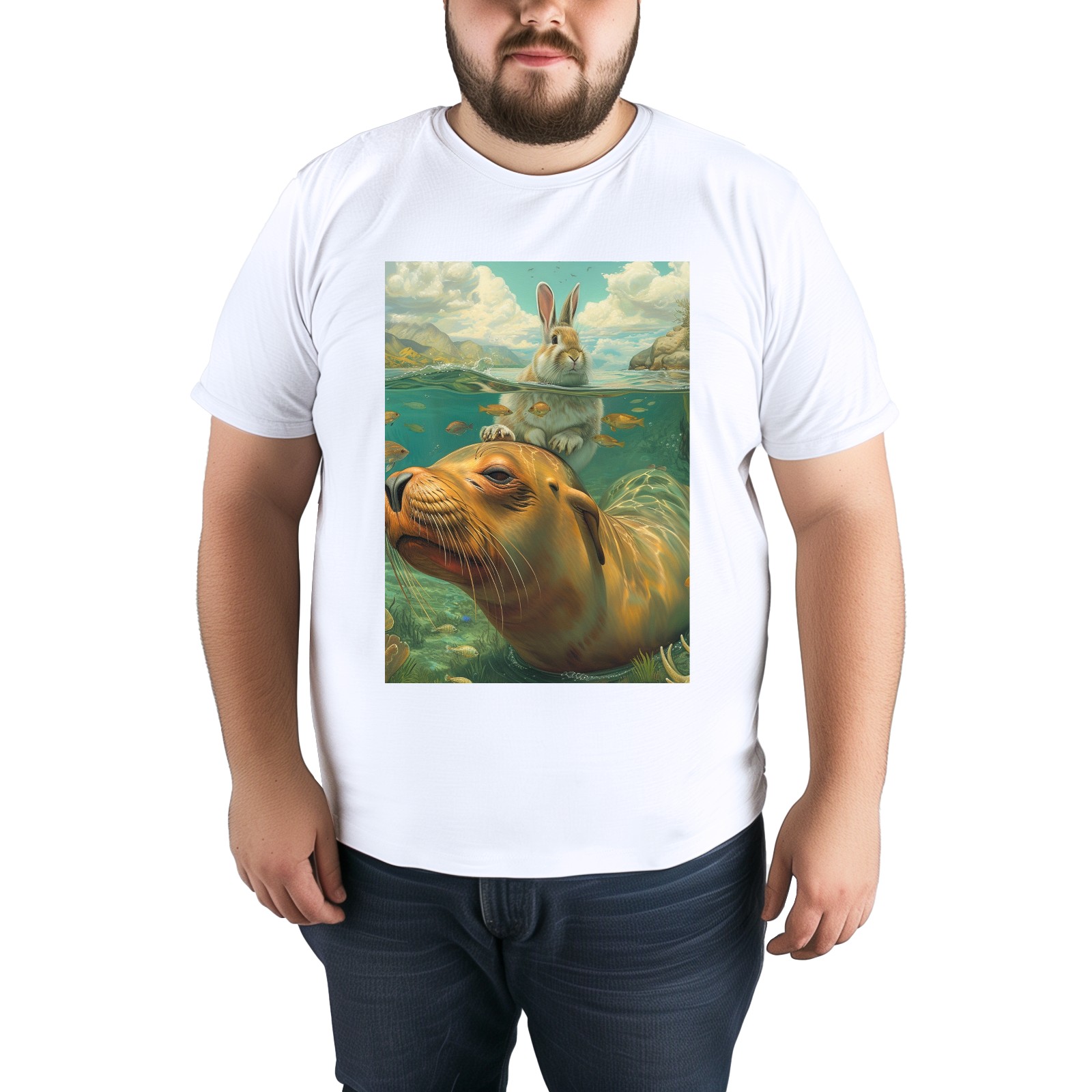Basic Oversize Tees For WomenSea Lion Loose Boyfriend Shirts Casual Blouse round neck