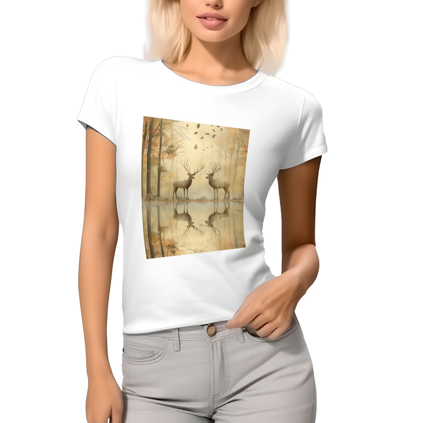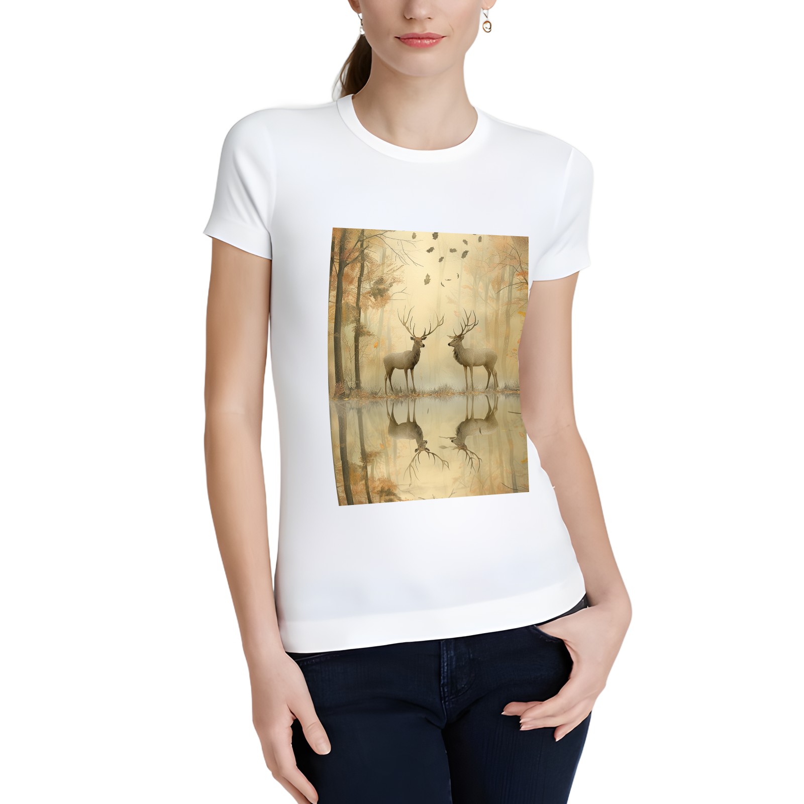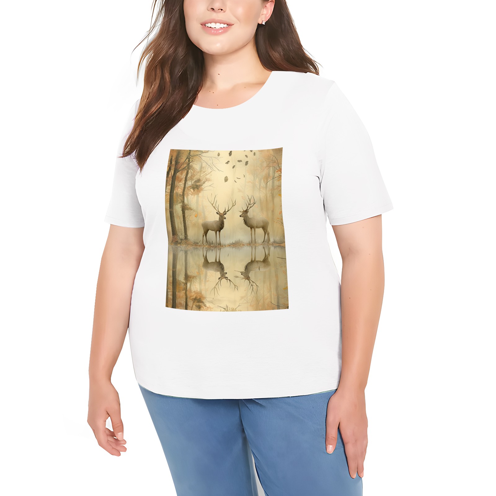 Basic Oversize Tees For WomenReindeer Loose Boyfriend Shirts Casual Blouse round neck
