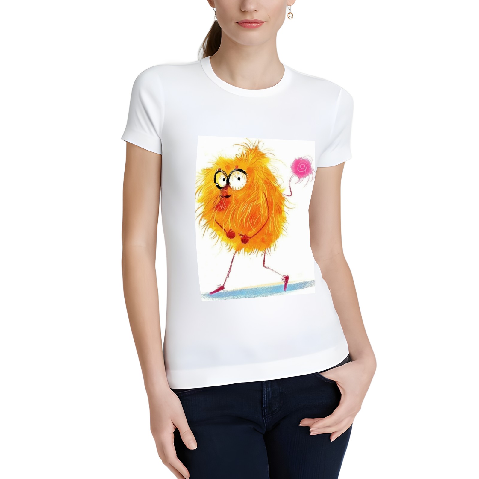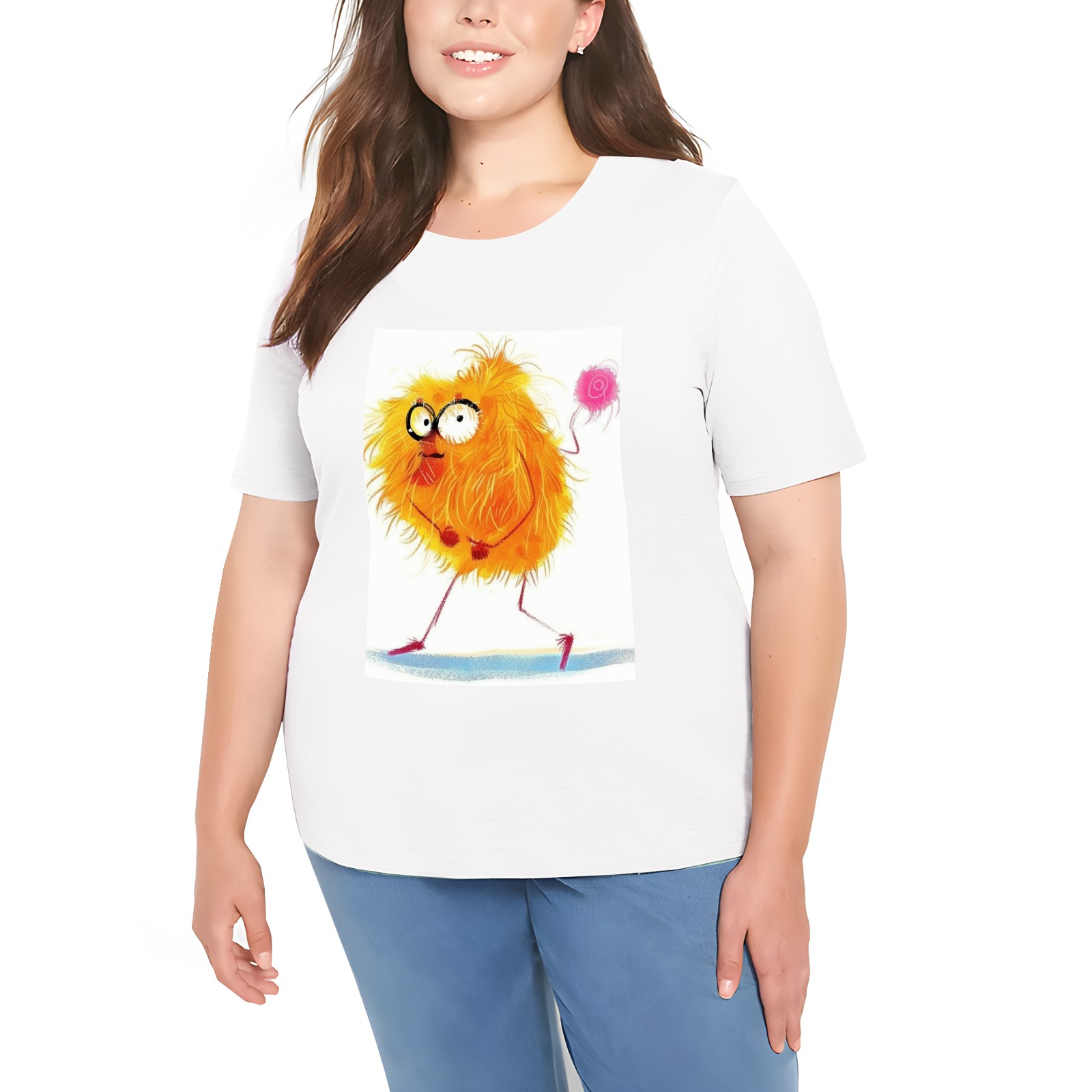 Basic Oversize Tees For WomenChicken Loose Boyfriend Shirts Casual Blouse round neck