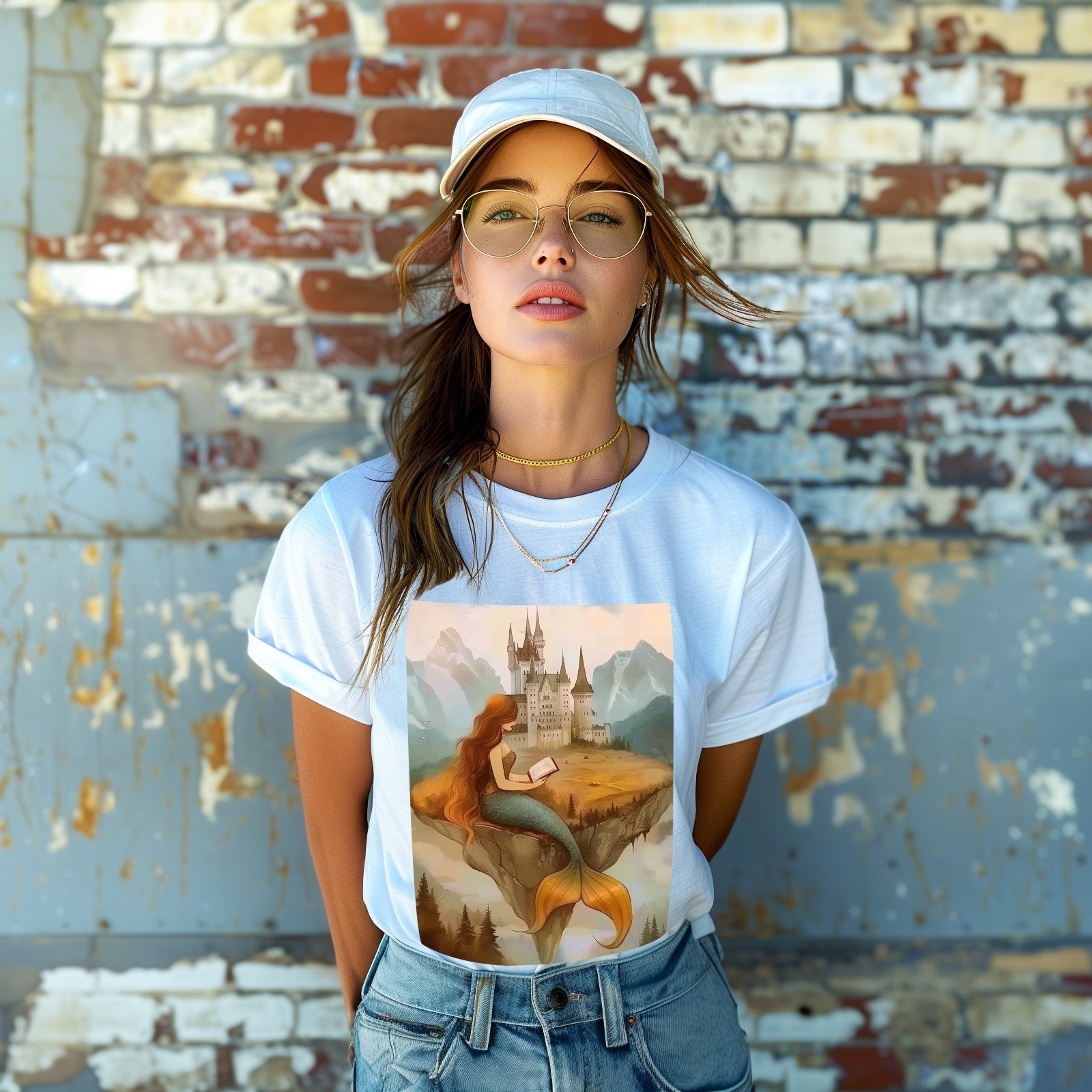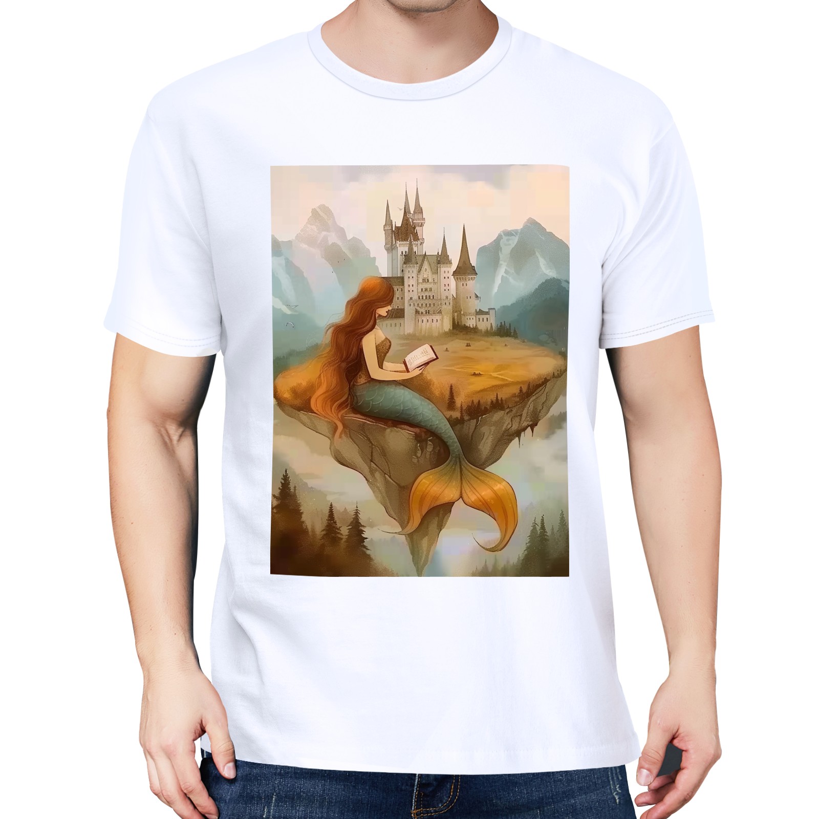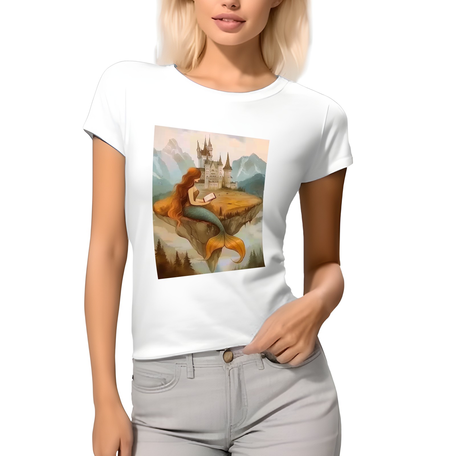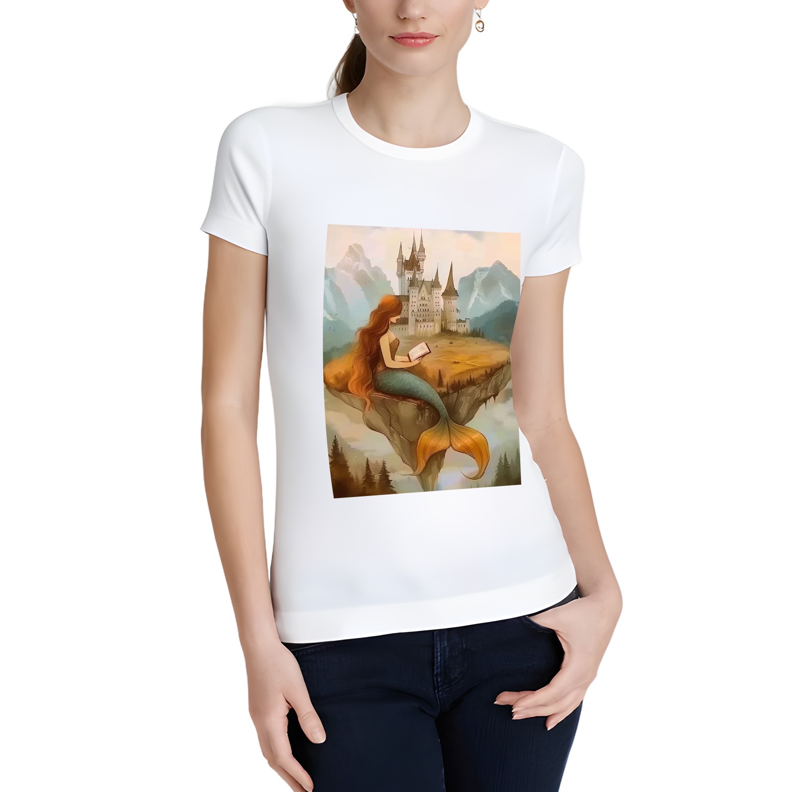Basic Oversize Tees For WomenMermaid Loose Boyfriend Shirts Casual Blouse round neck