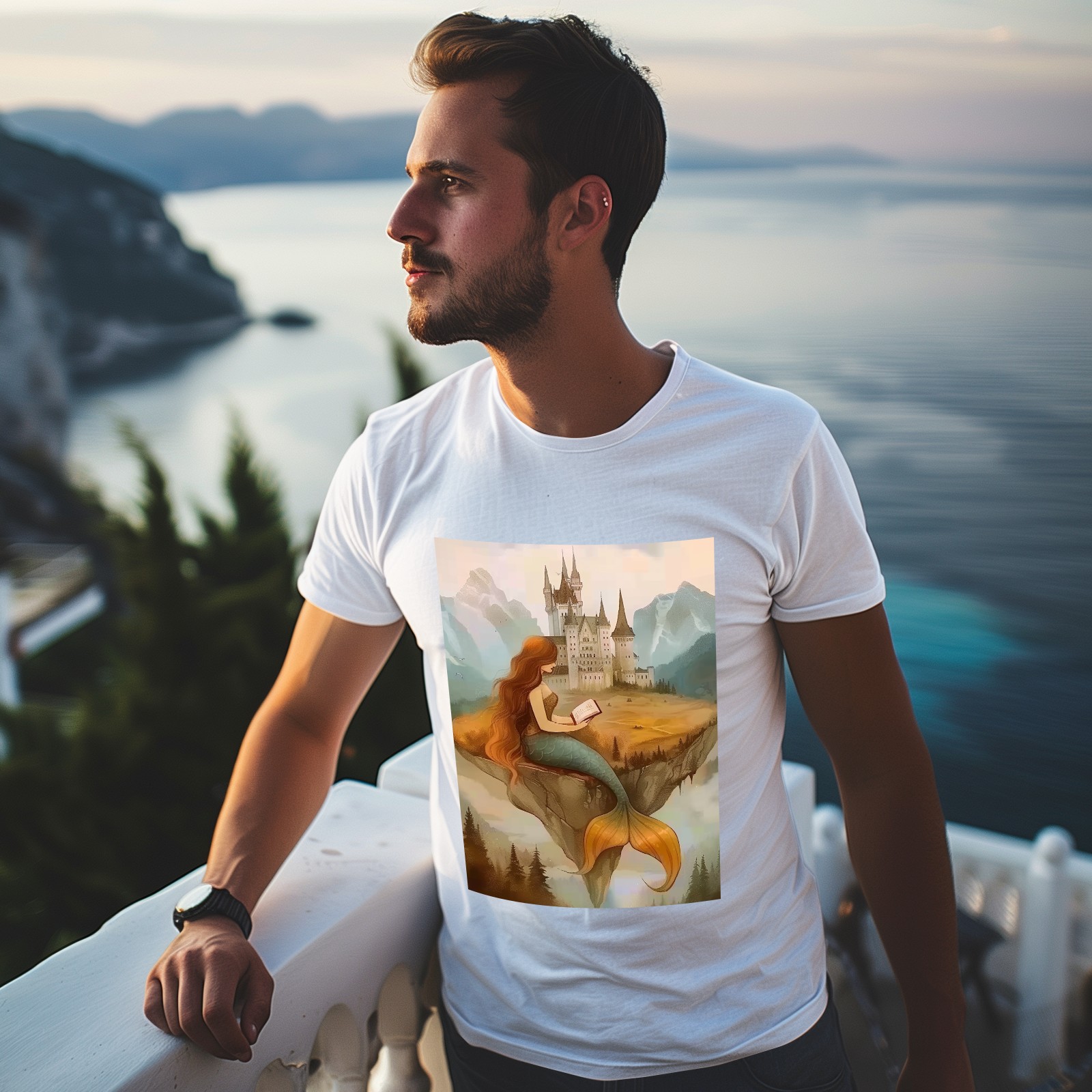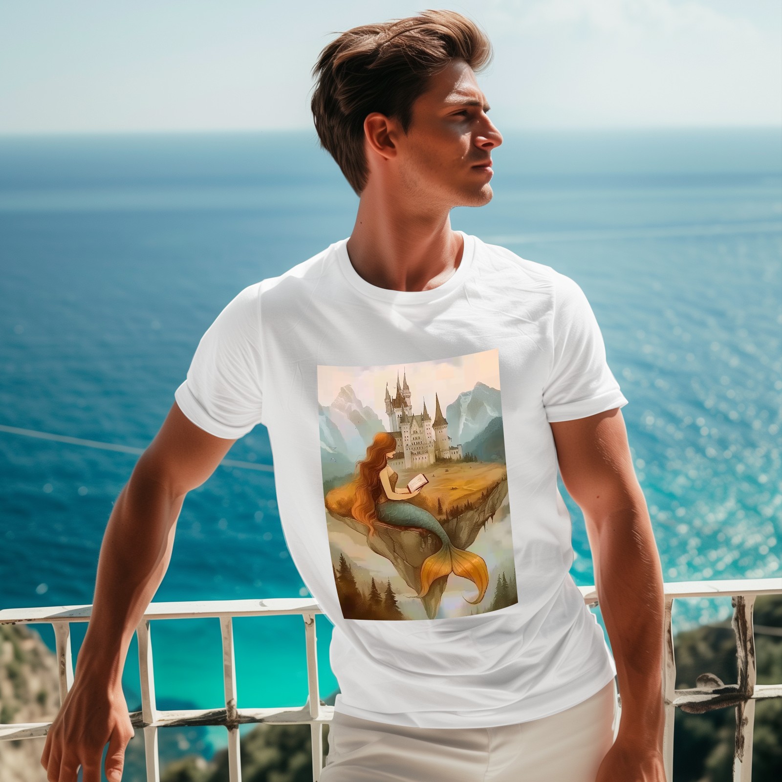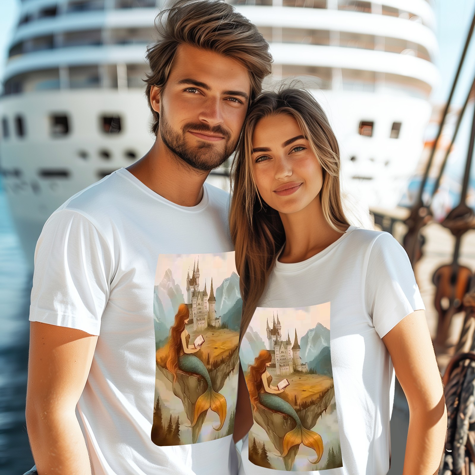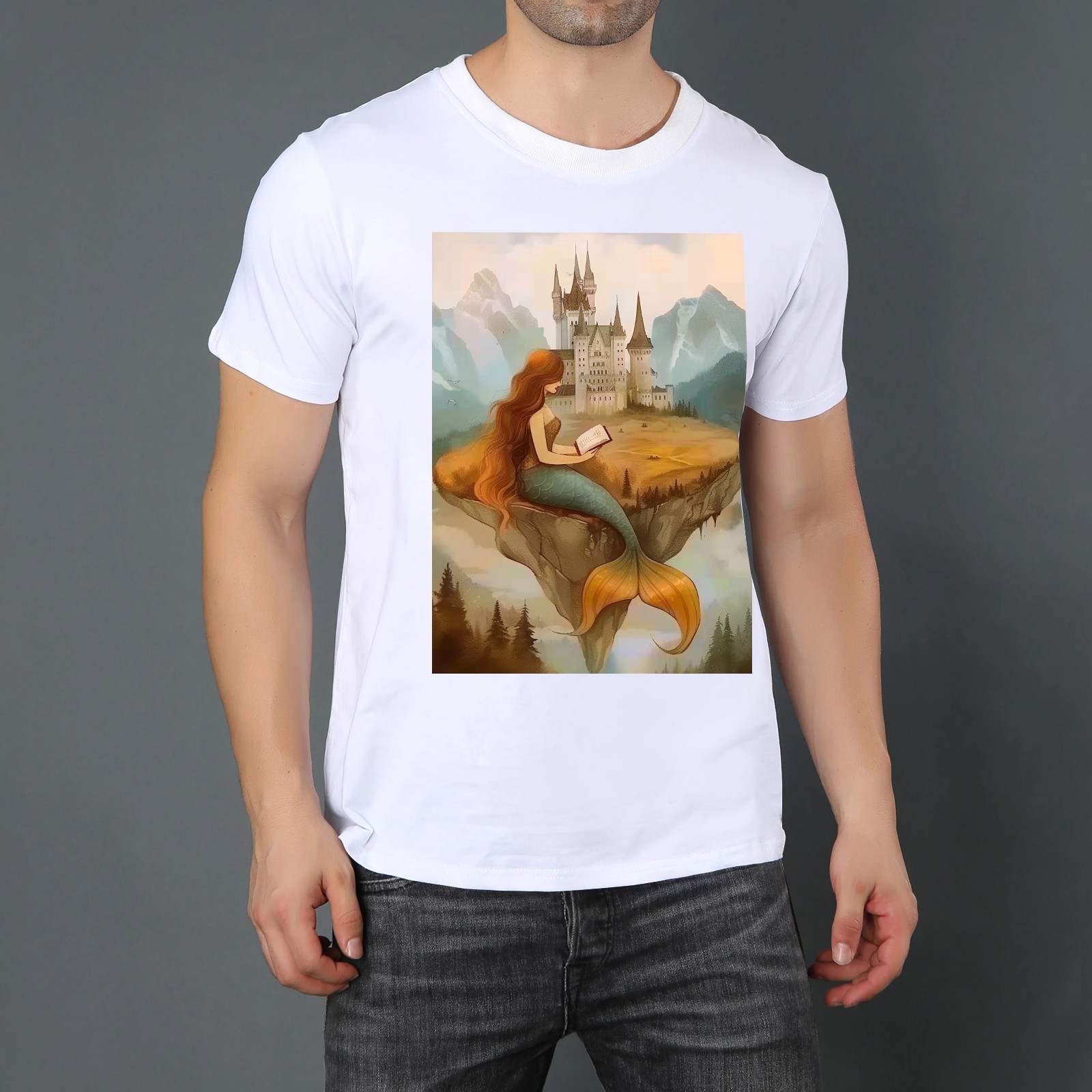 Basic Oversize Tees For WomenMermaid Loose Boyfriend Shirts Casual Blouse round neck