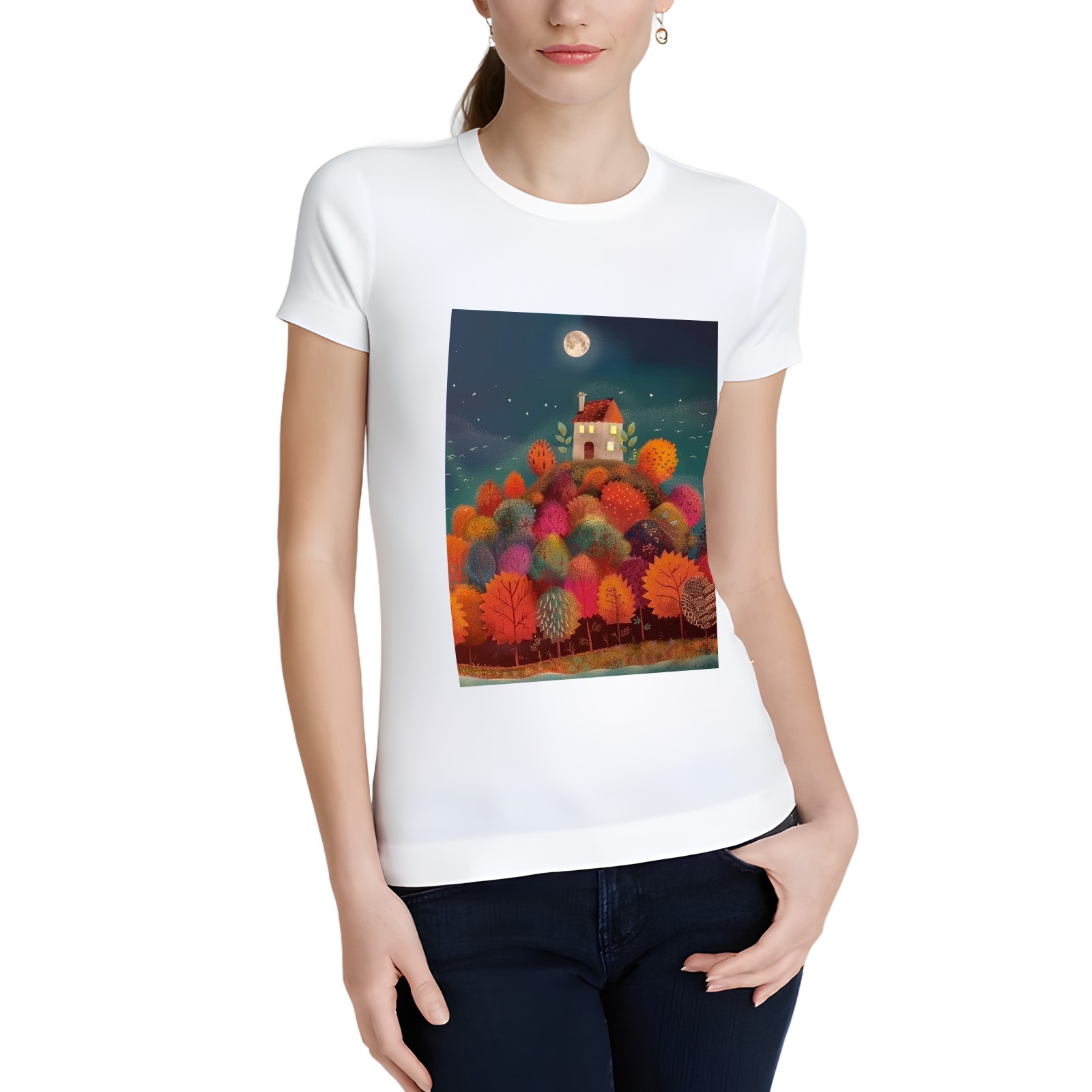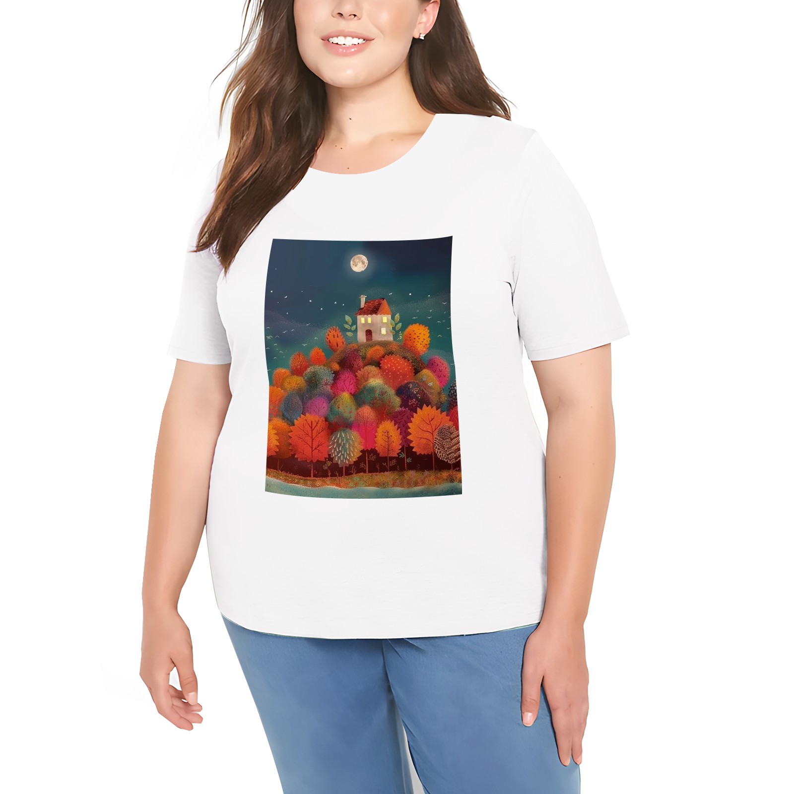 Basic Oversize Tees For WomenLeaves Loose Boyfriend Shirts Casual Blouse round neck