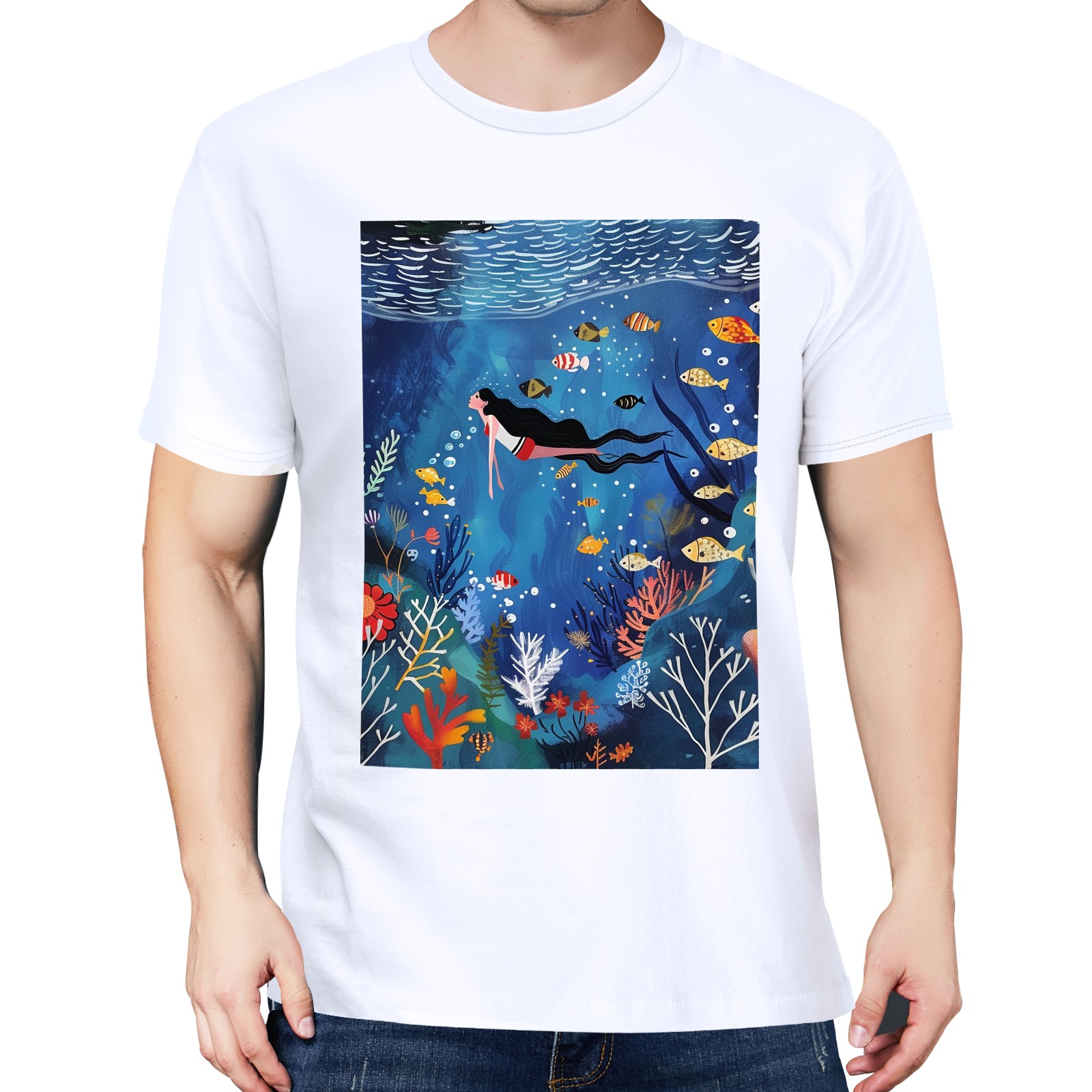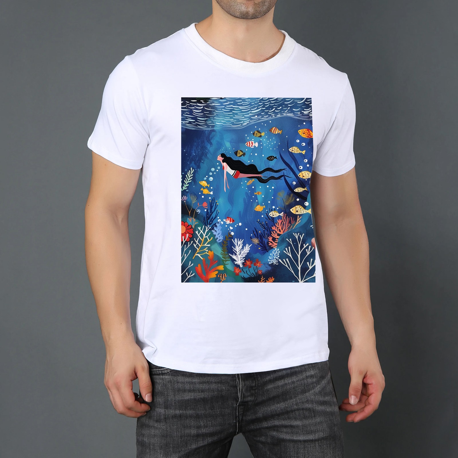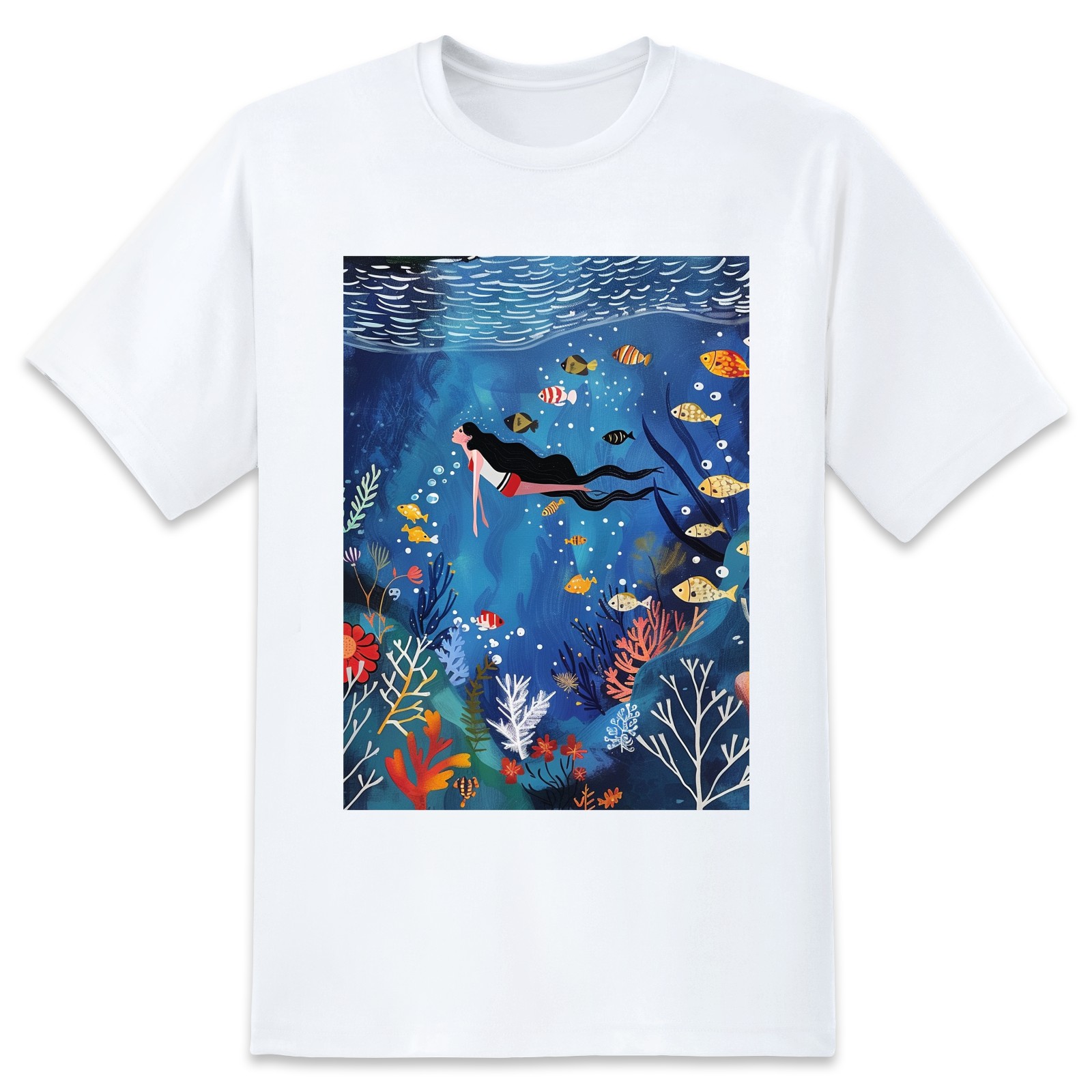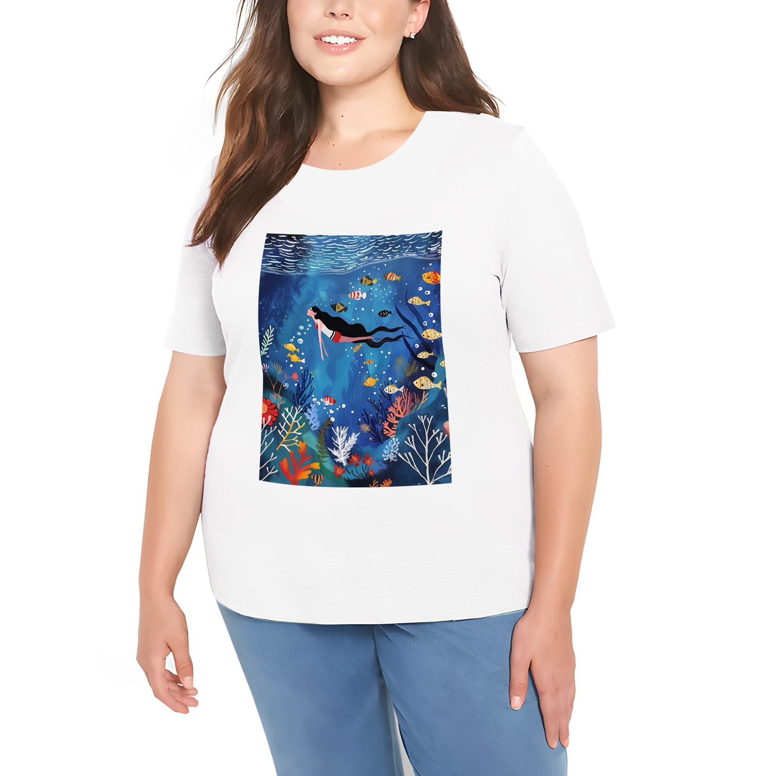 Basic Oversize Tees For WomenMermaid Loose Boyfriend Shirts Casual Blouse round neck