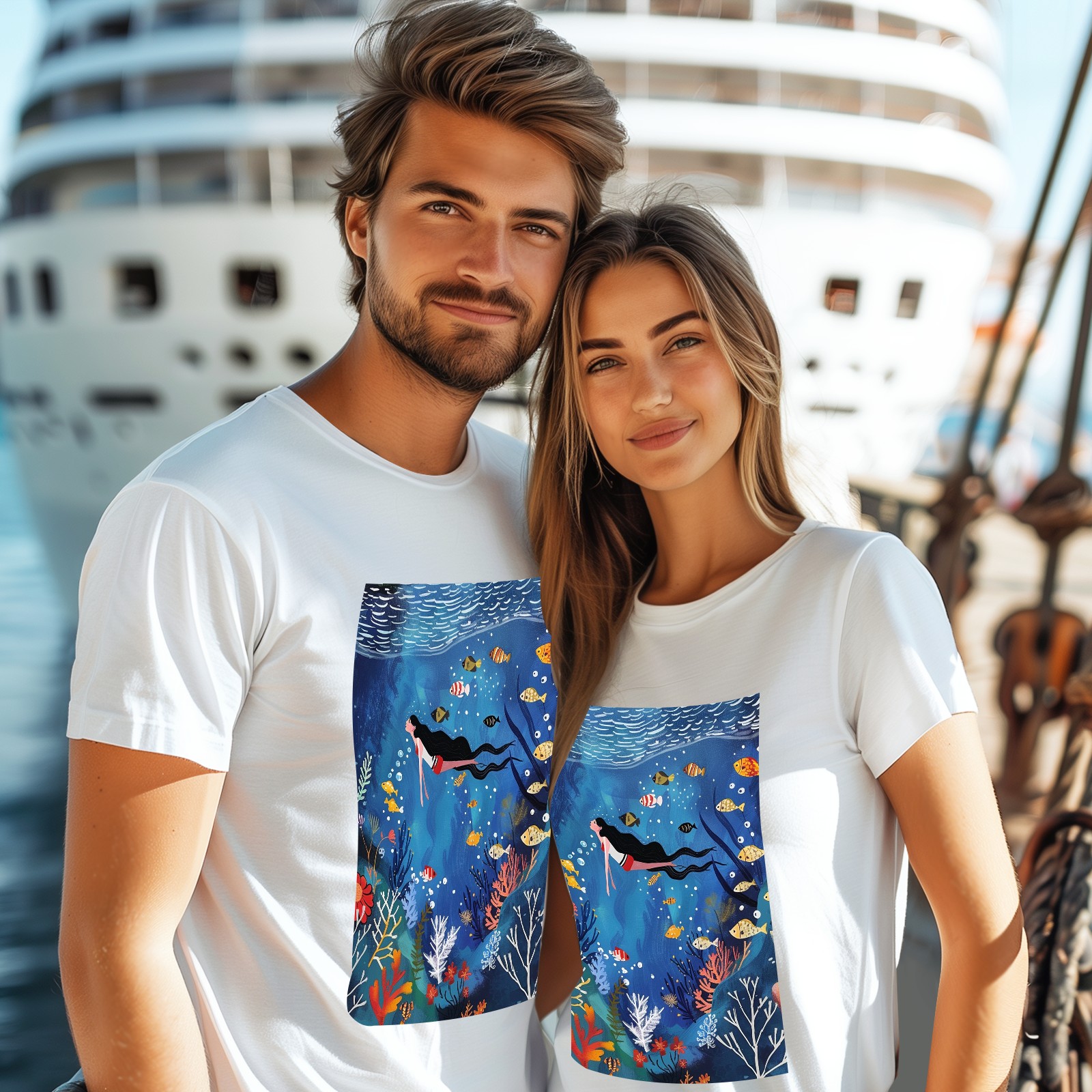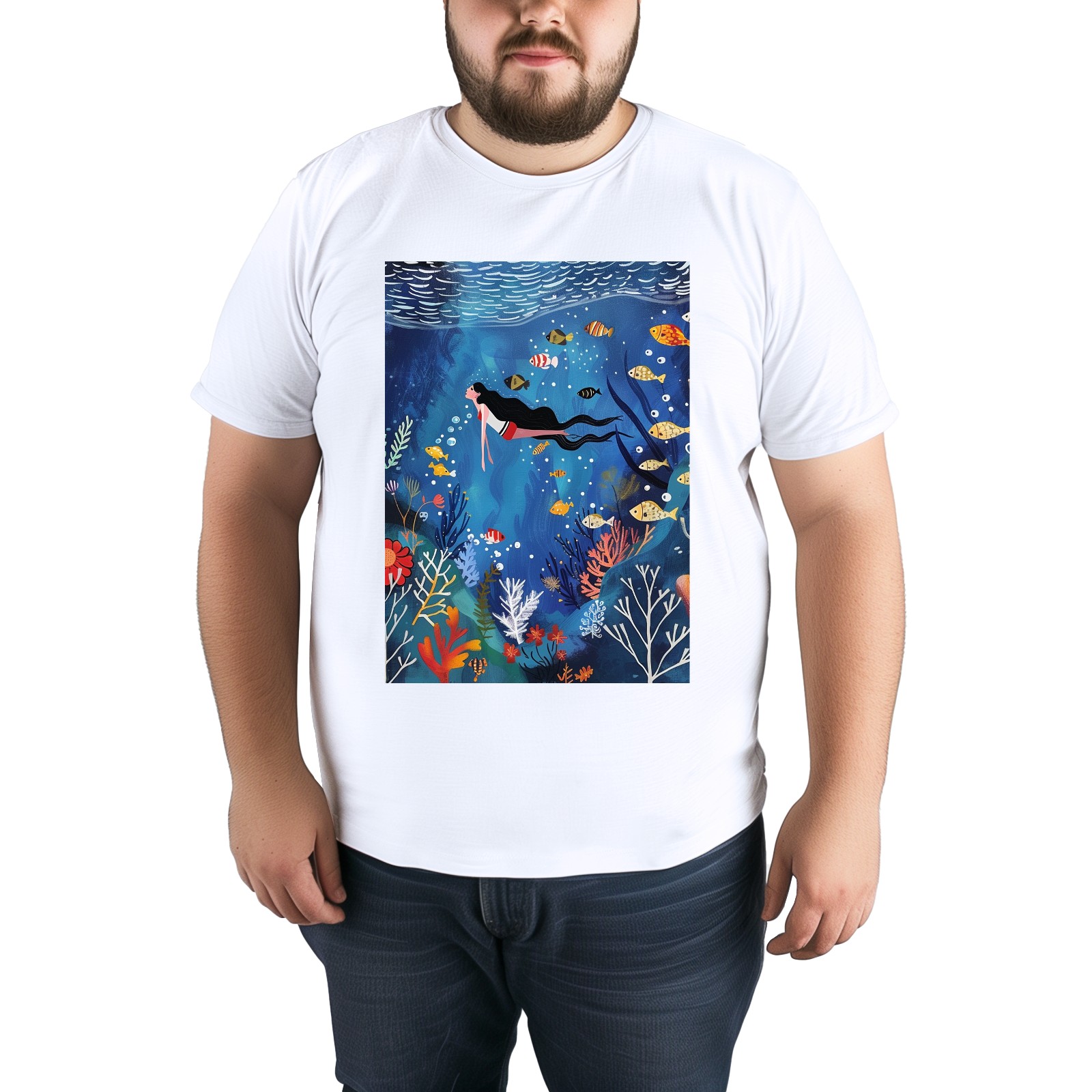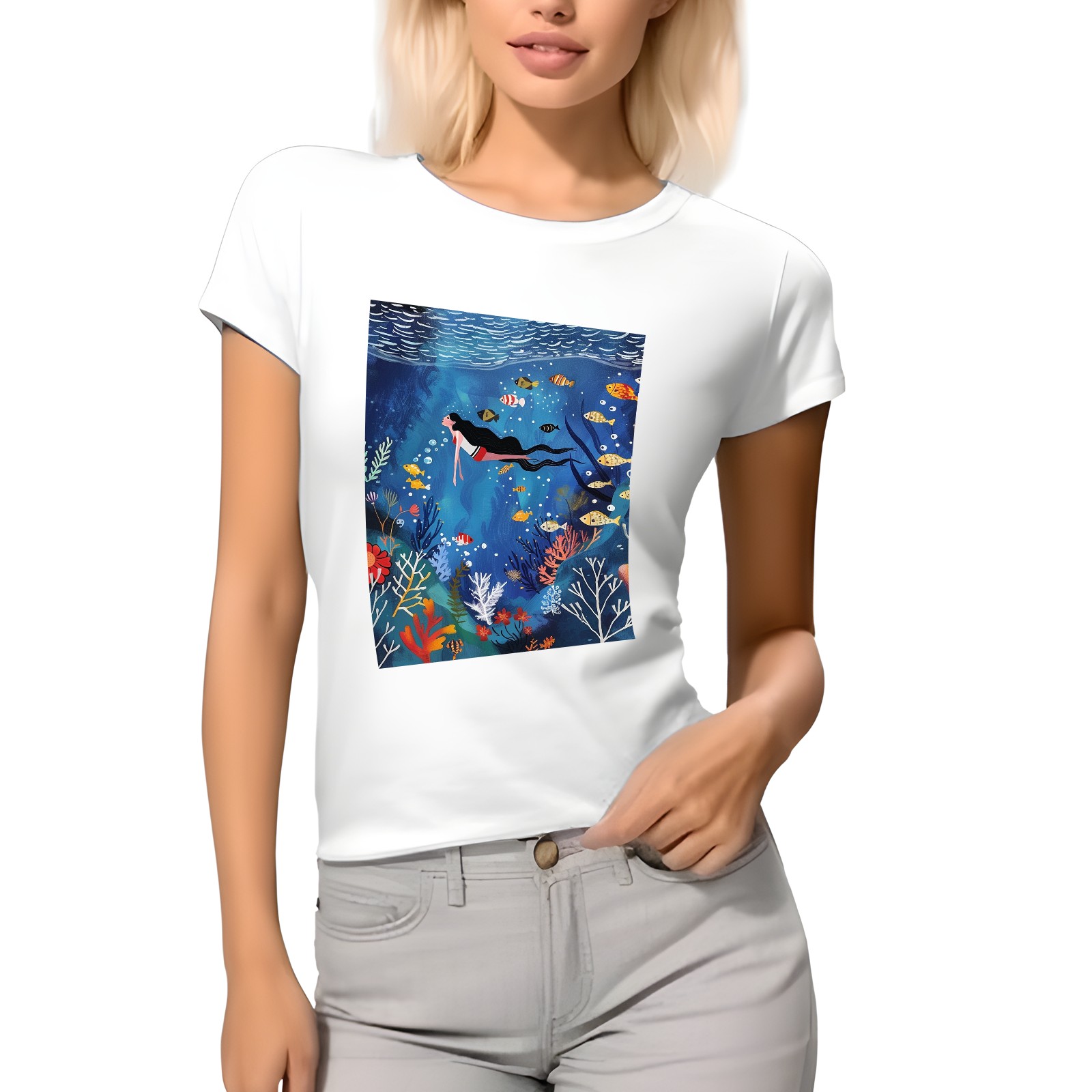 Basic Oversize Tees For WomenMermaid Loose Boyfriend Shirts Casual Blouse round neck
