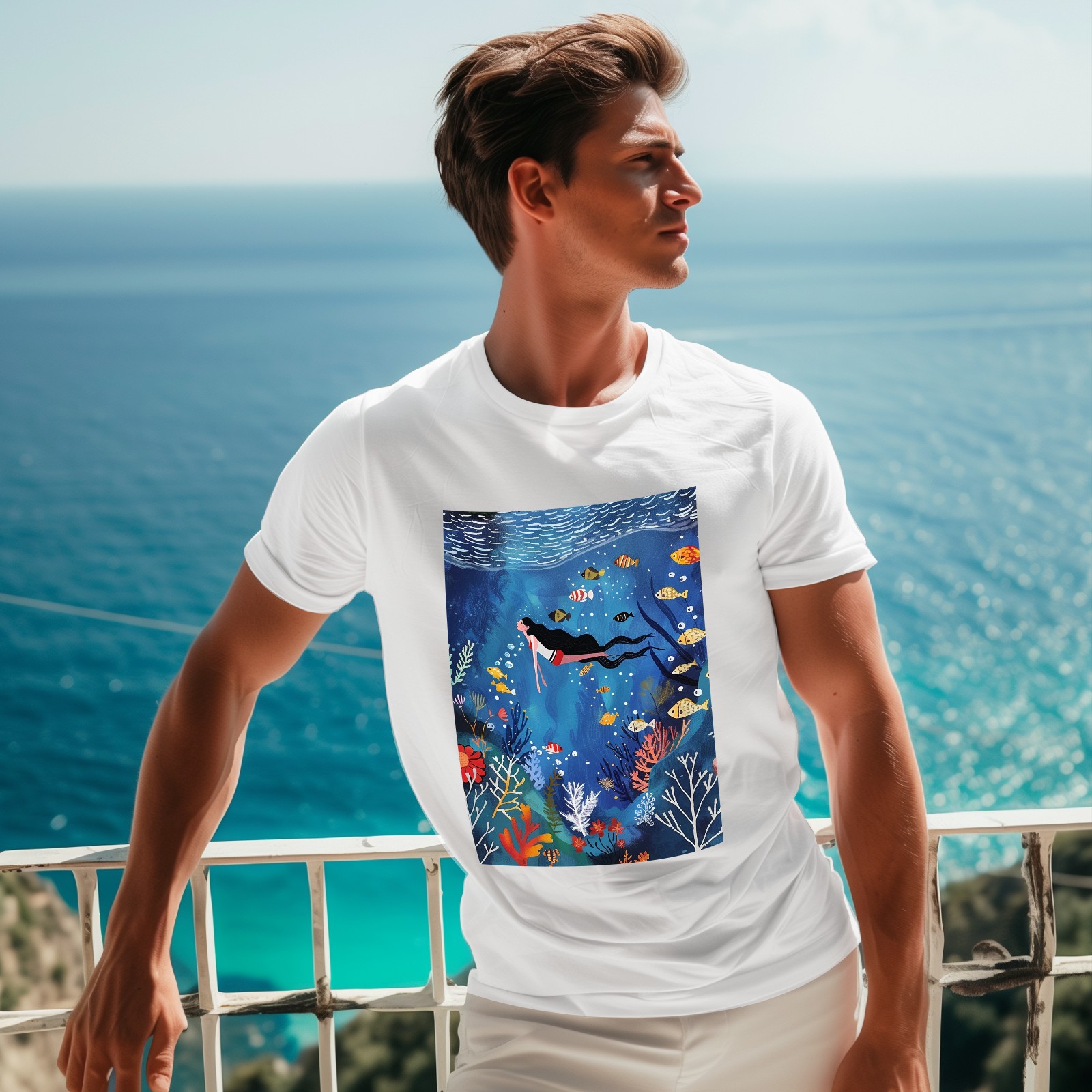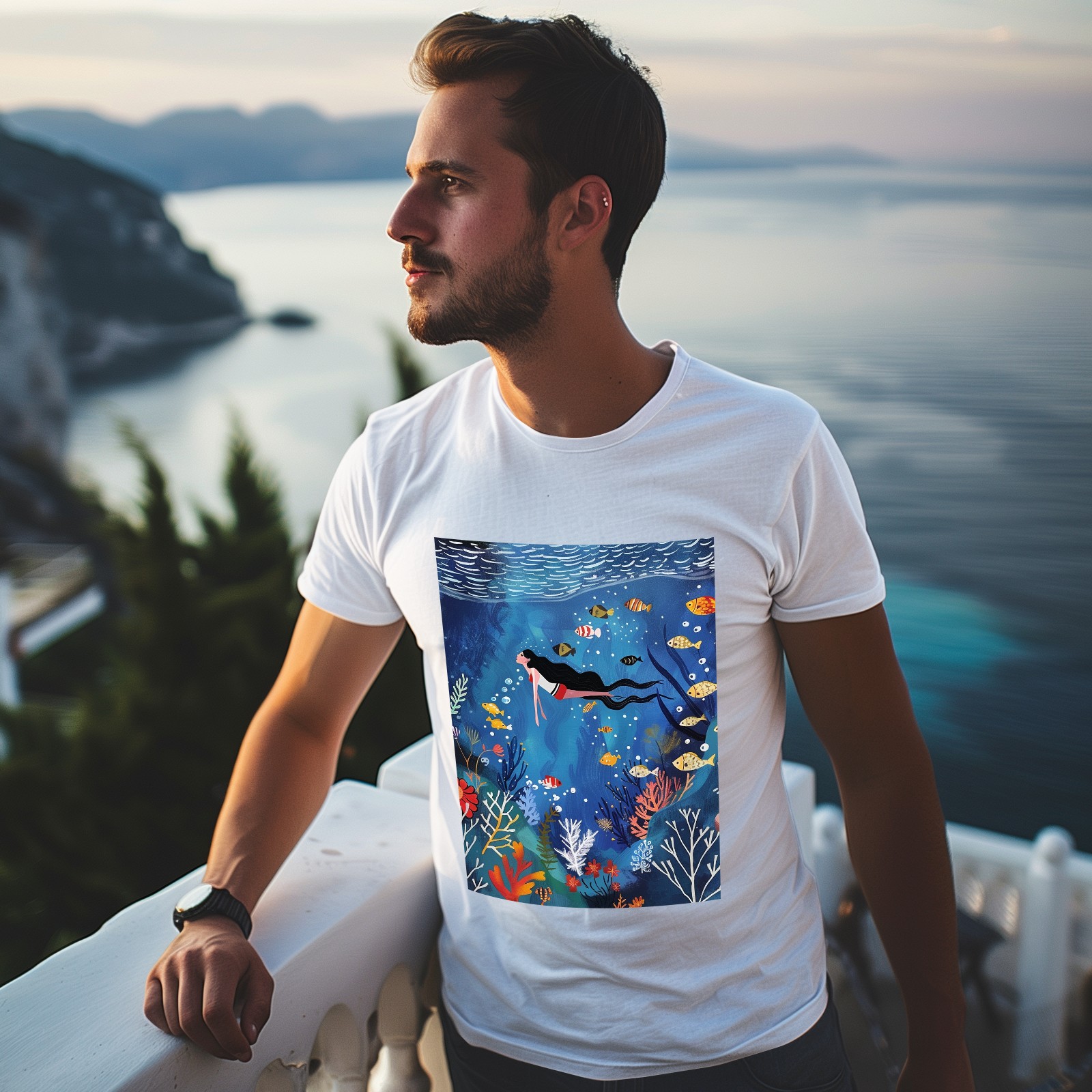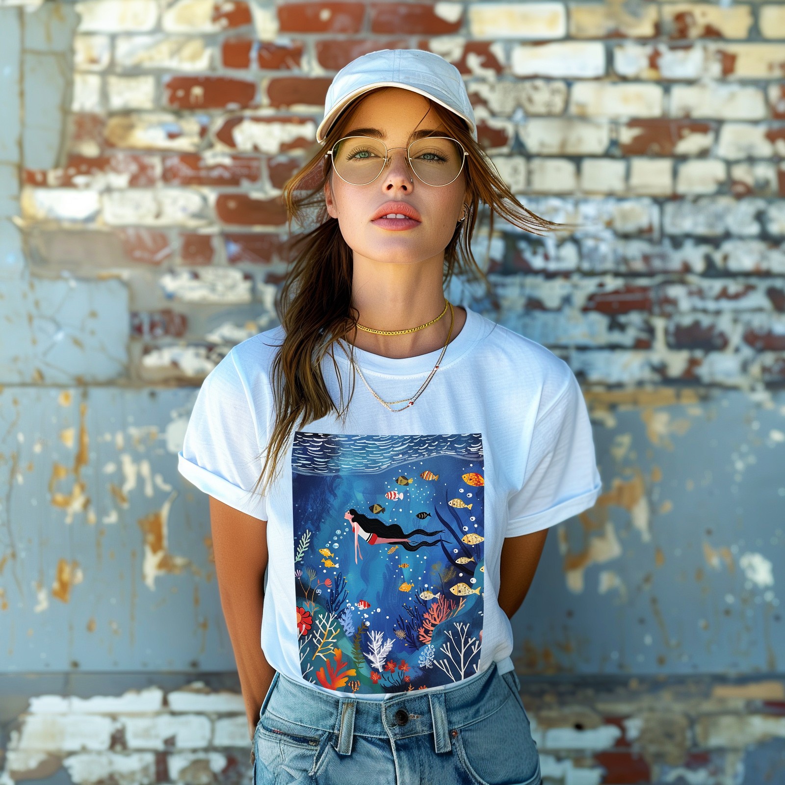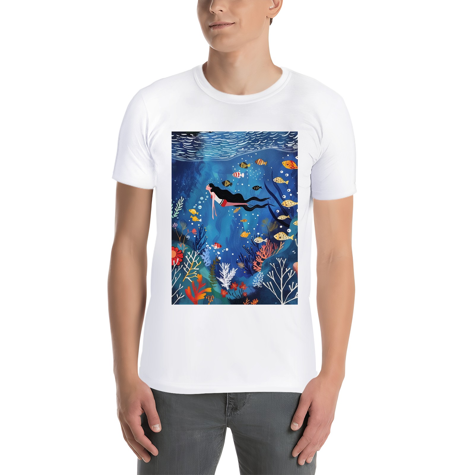 Basic Oversize Tees For WomenMermaid Loose Boyfriend Shirts Casual Blouse round neck