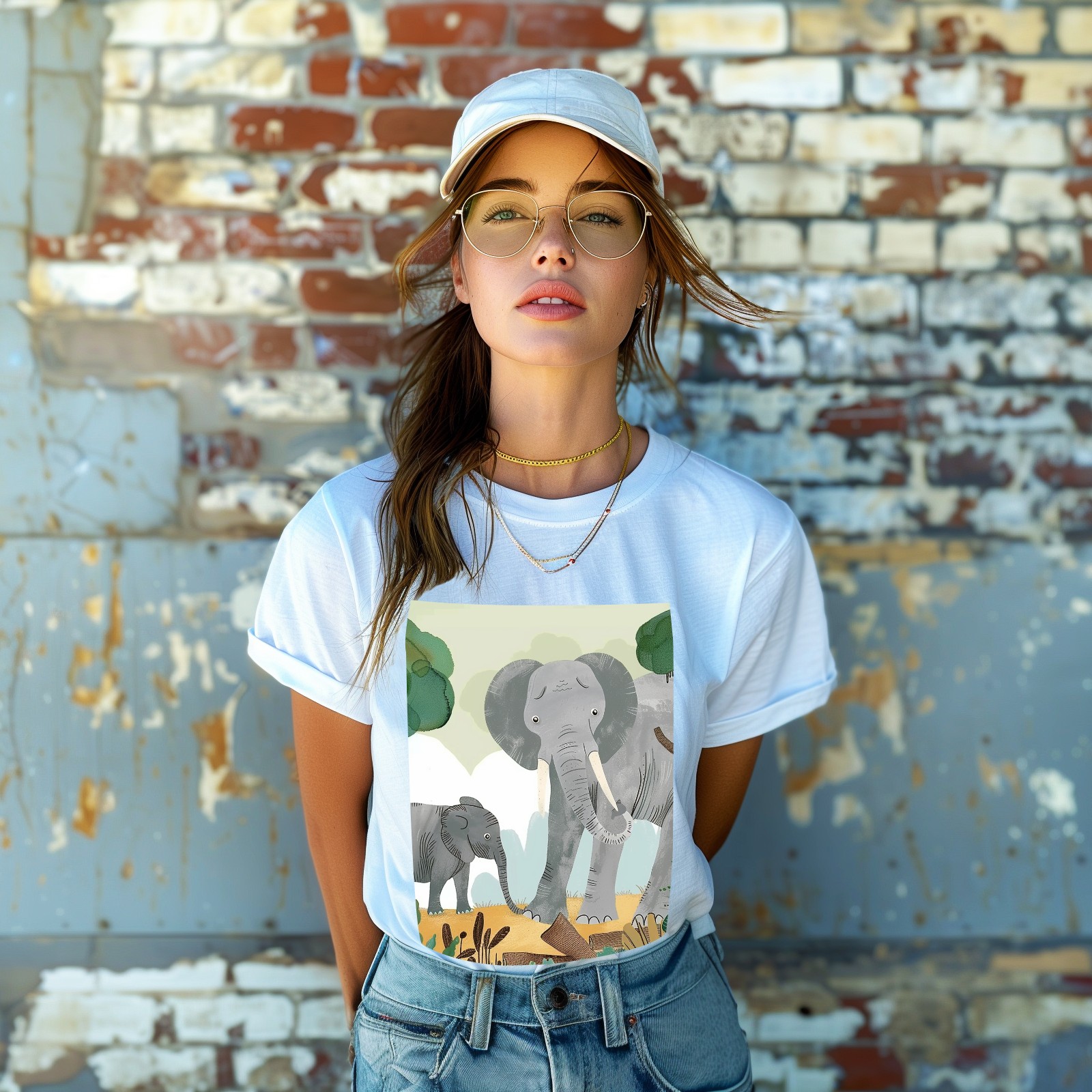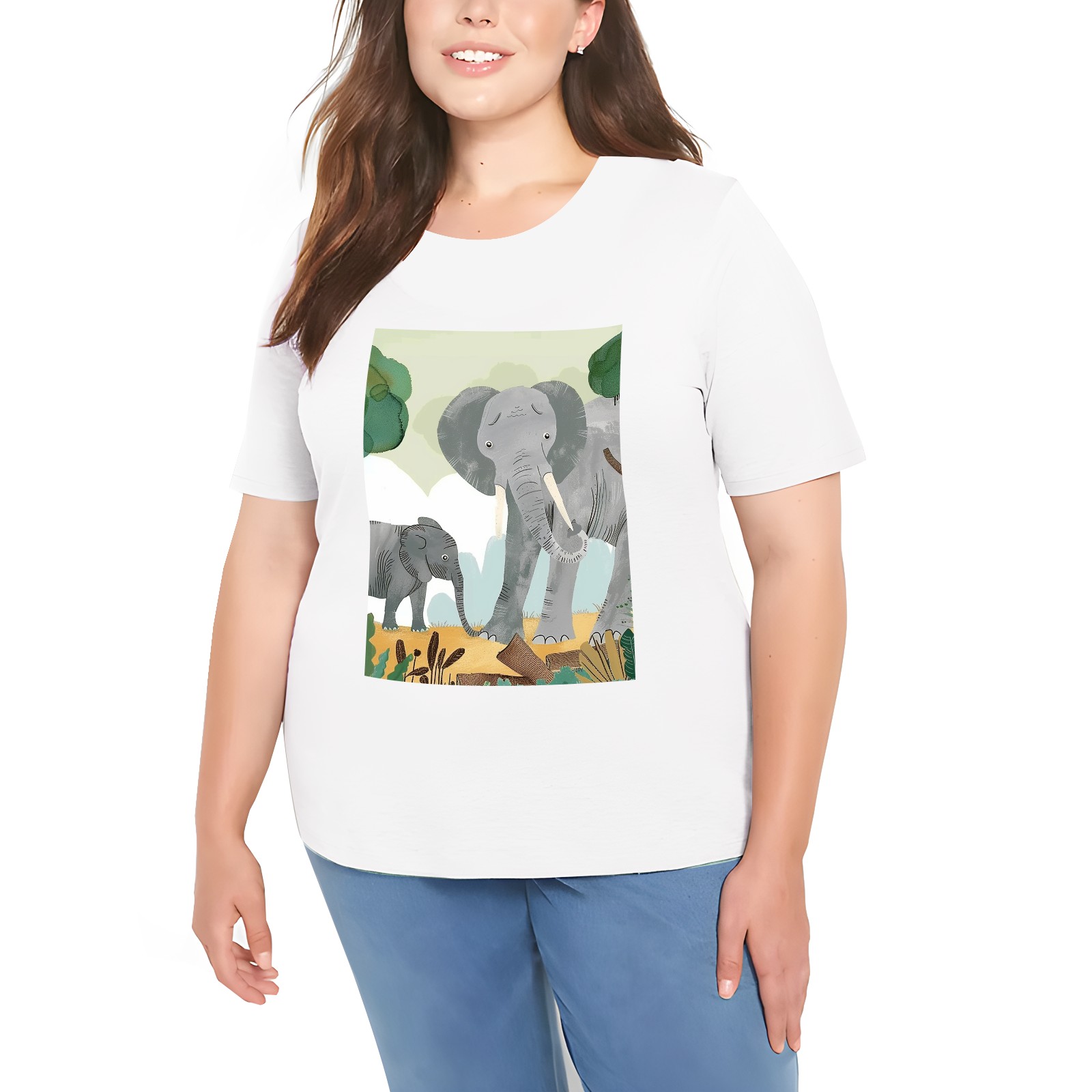 Basic Oversize Tees For WomenElephant Loose Boyfriend Shirts Casual Blouse round neck